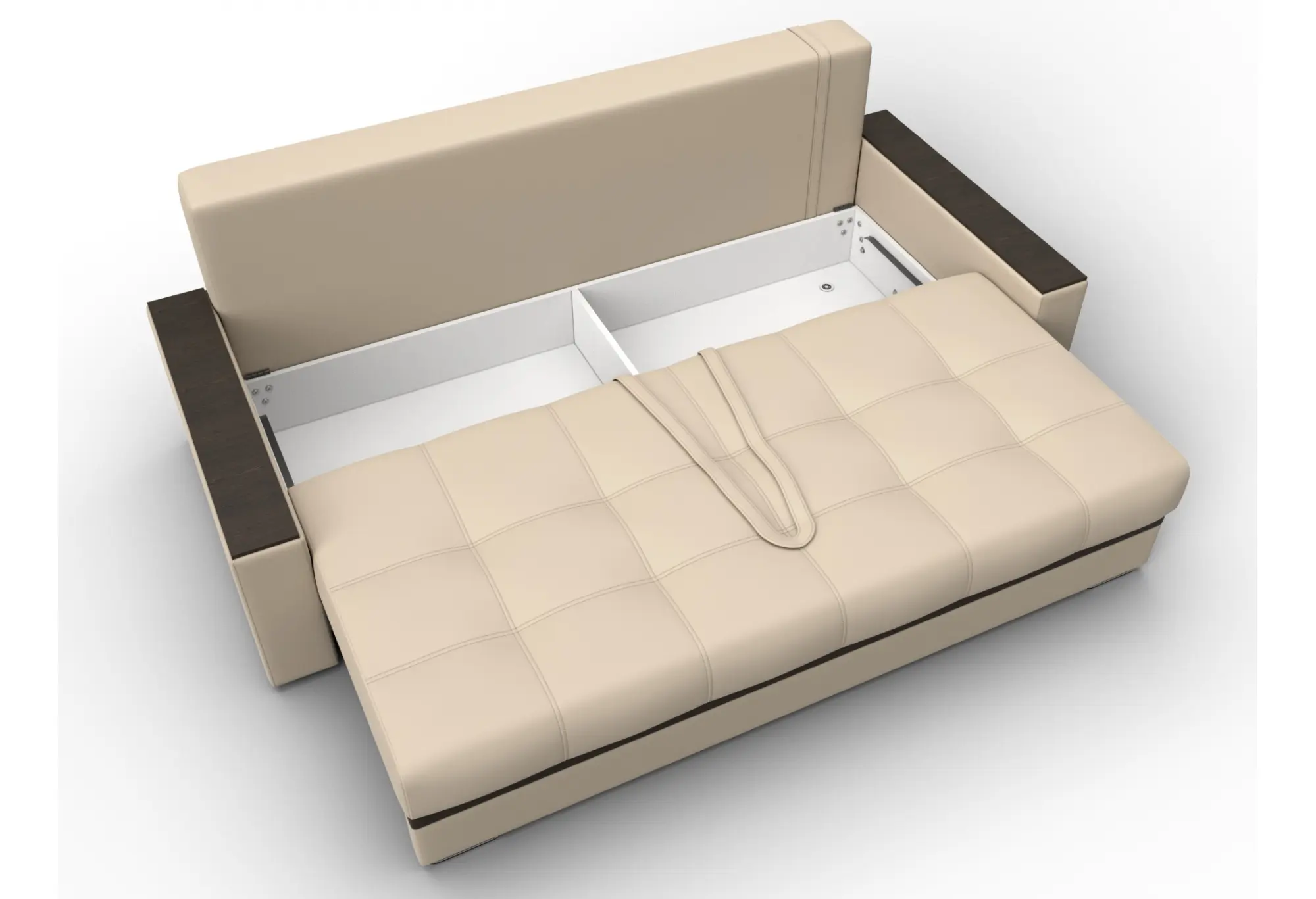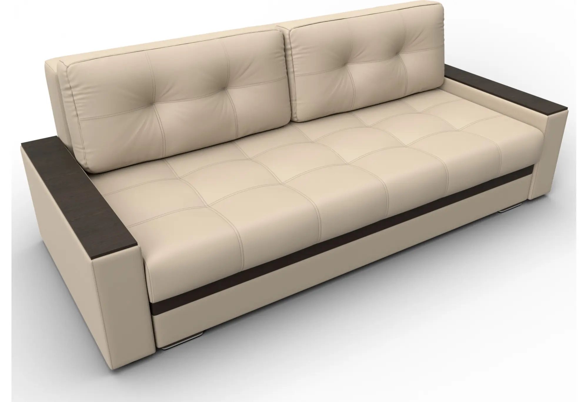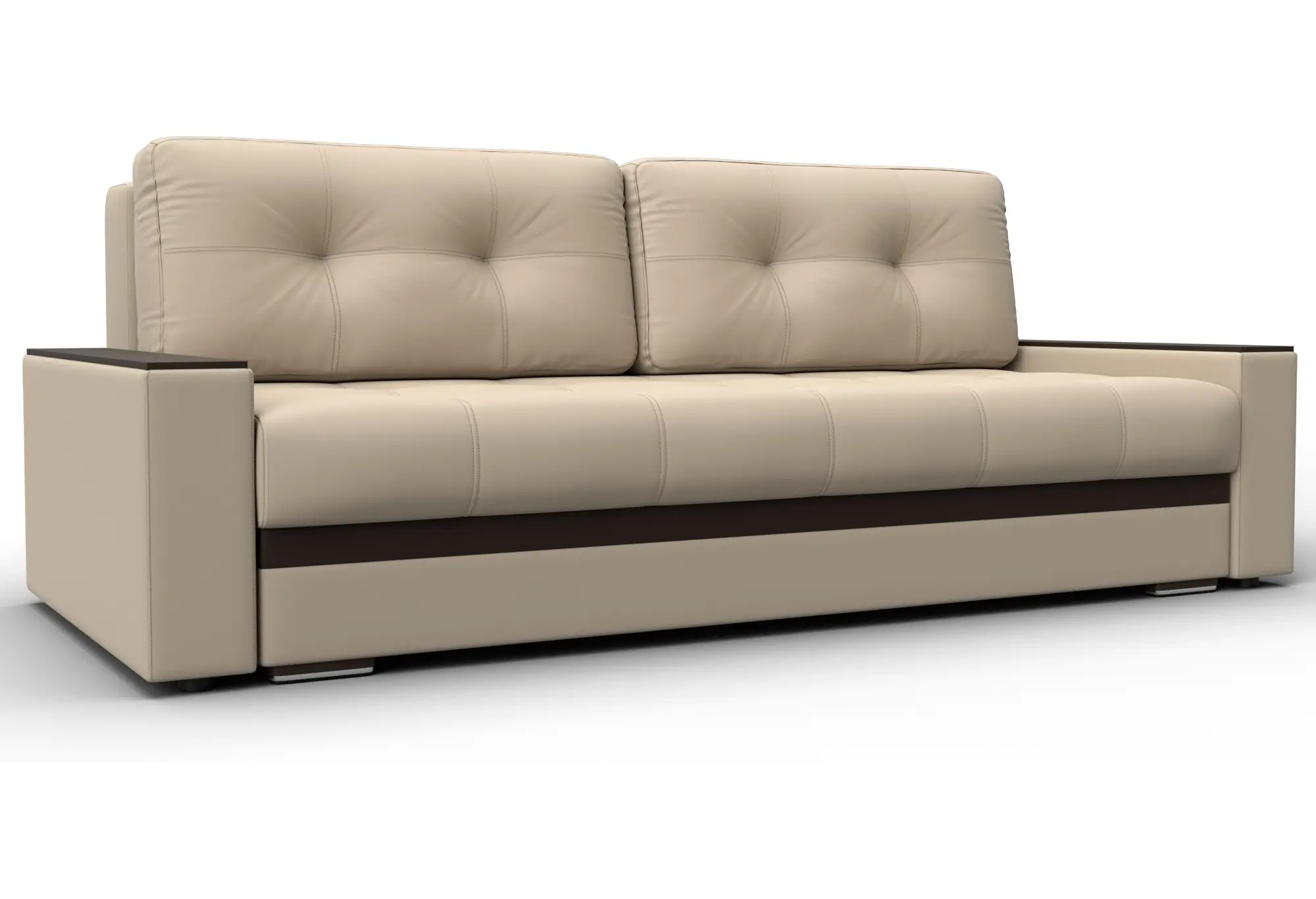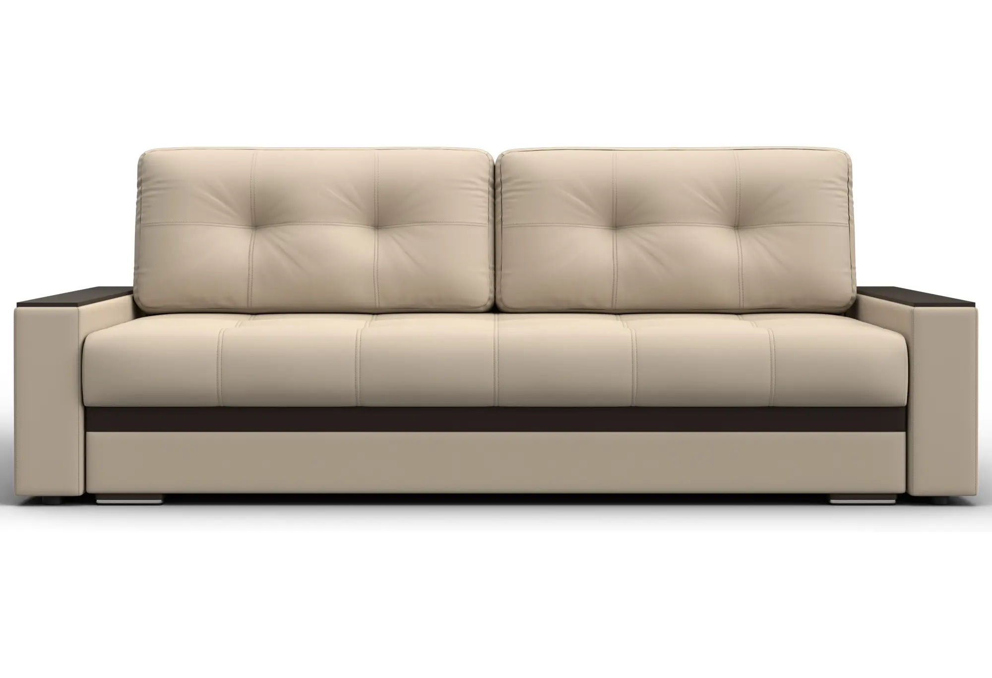 Диван прямой с декором Лига-096 НПБ Бежевый/Коричневый (Экокожа)