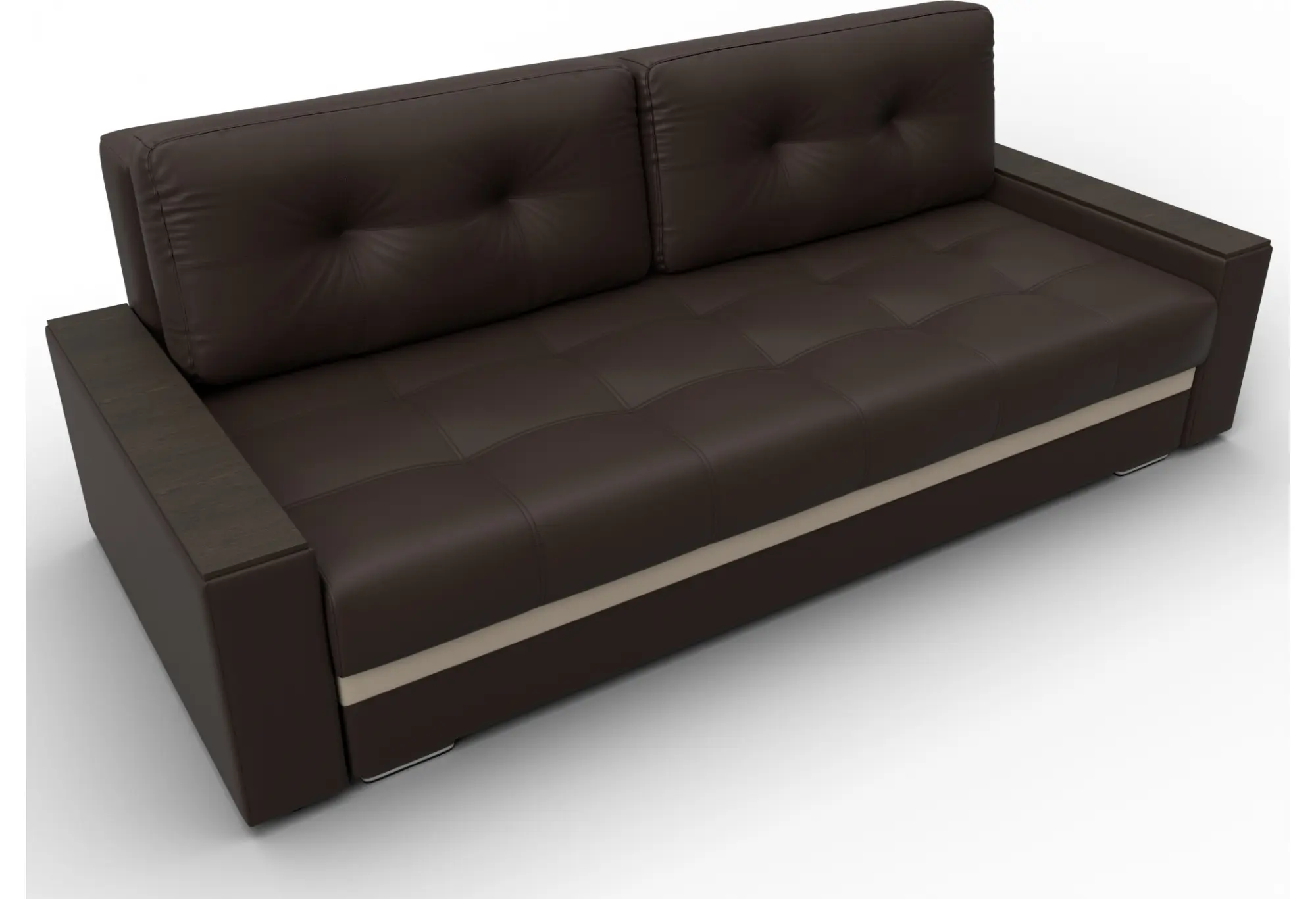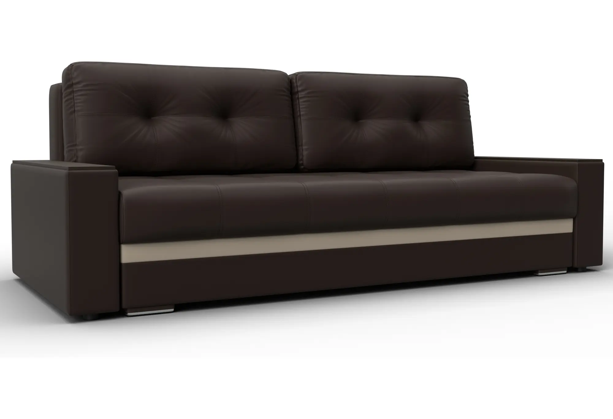 Диван прямой с декором Лига-096 НПБ Коричневый/Бежевый (Экокожа)