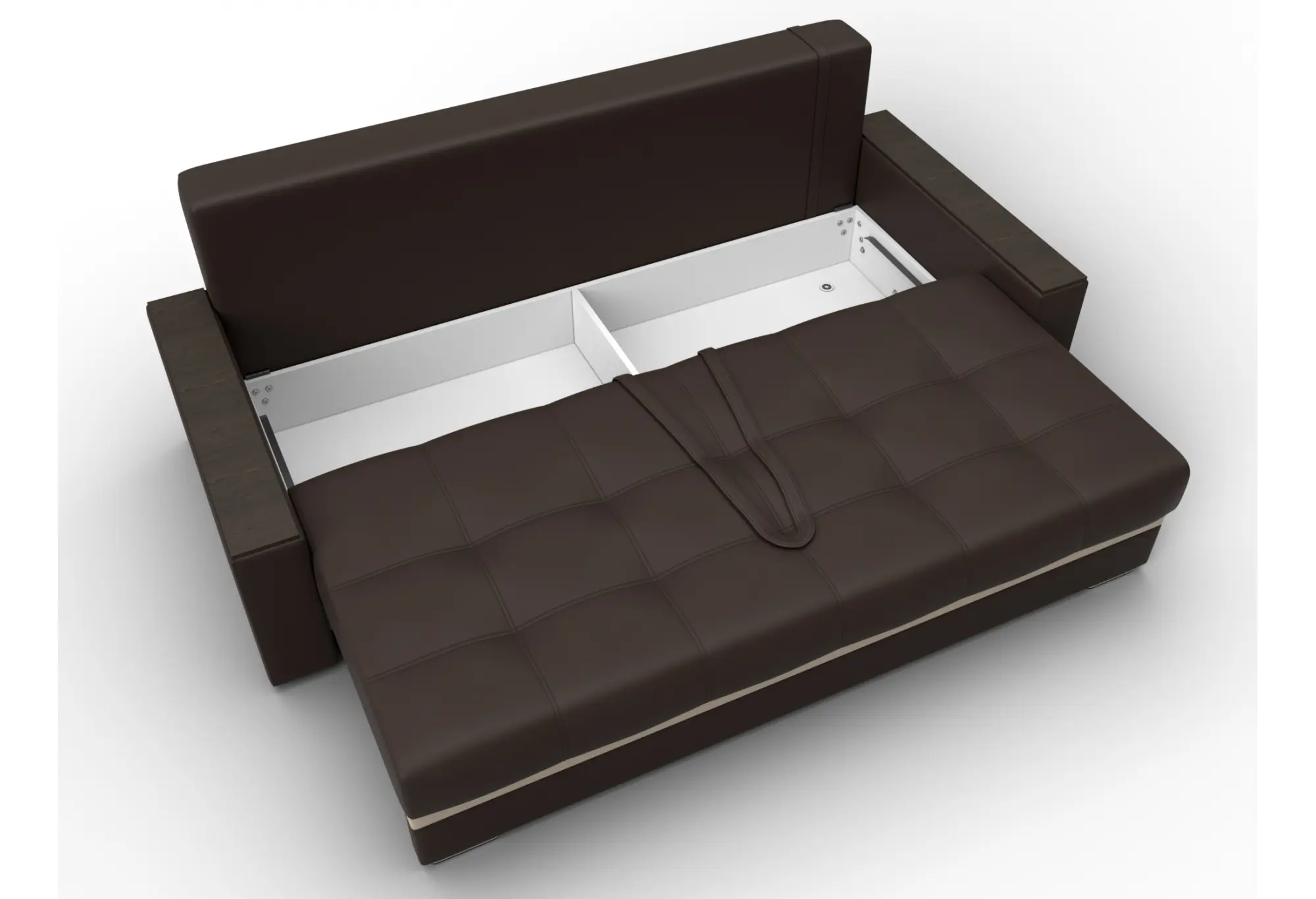 Если Вы ищите стильный, надежный, удобный и простой в эксплуатации диван со спальным местом, то Лига-096 НПБ — это Ваш вариант. Современная модель с механизмом раскладки еврокнижка гармонично впишется в интерьер как жилых комнат, так и строгих офисов. Твердая широкая плоская поверхность позволяет использовать подлокотники как мини-столики для напитков, гаджетов или декора, а две приспинные подушки обеспечат удобство и комфорт. Под сиденьем расположены две вместительные ниши для белья размером 97х20х60 см каждая. Конструкция функциональна, легко трансформируется в кровать. Лига-096 станет выгодным приобретением для вашего дома и неотделимым элементом интерьера.