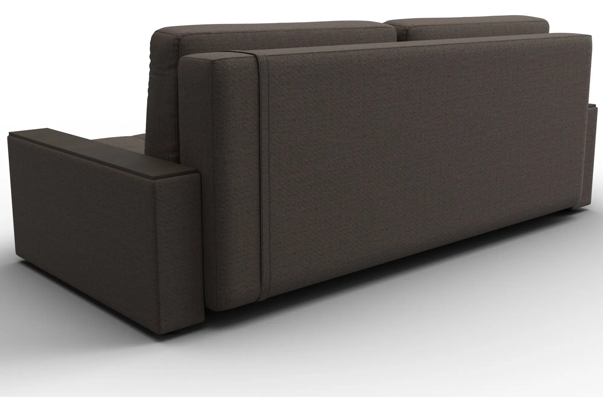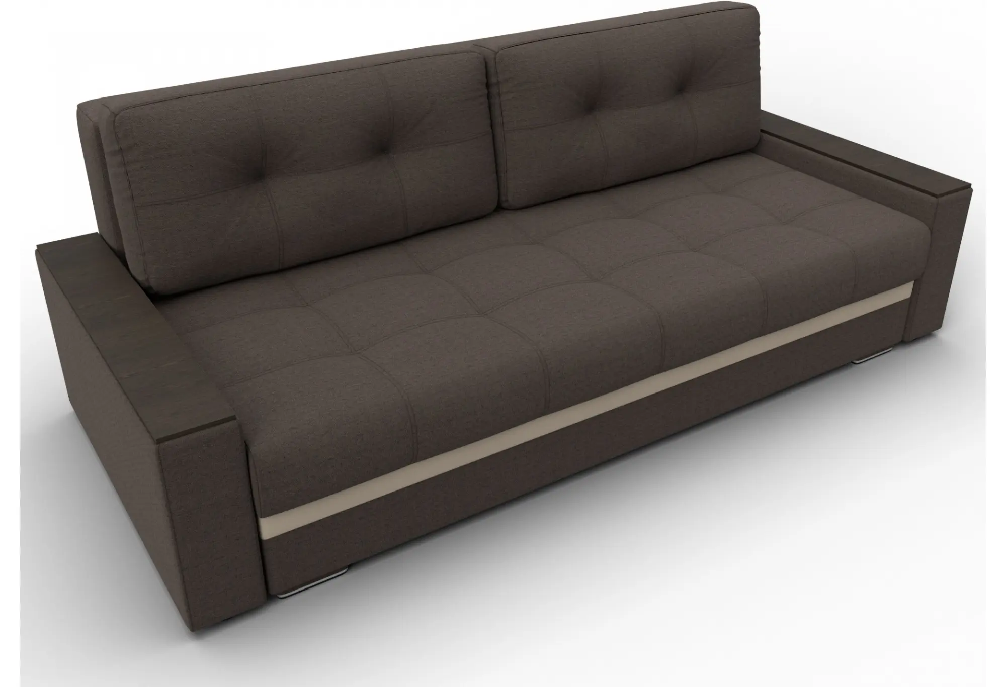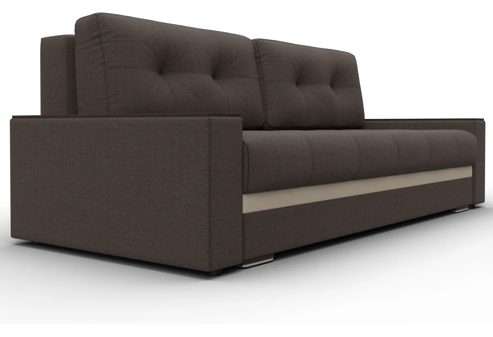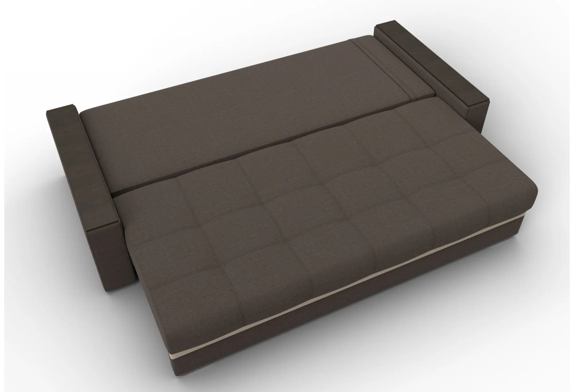 Удобный механизм «еврокнижка» превращает диван в просторную кровать, обеспечивая комфортный сон для двоих. Под сиденьем расположены две большие ниши для хранения белья, что делает его еще более практичным. Благодаря наличию широких подлокотников и двух спинных подушек, диван идеально подходит как для отдыха, так и для работы.