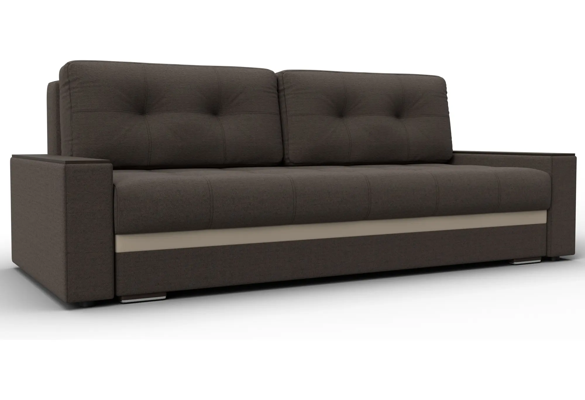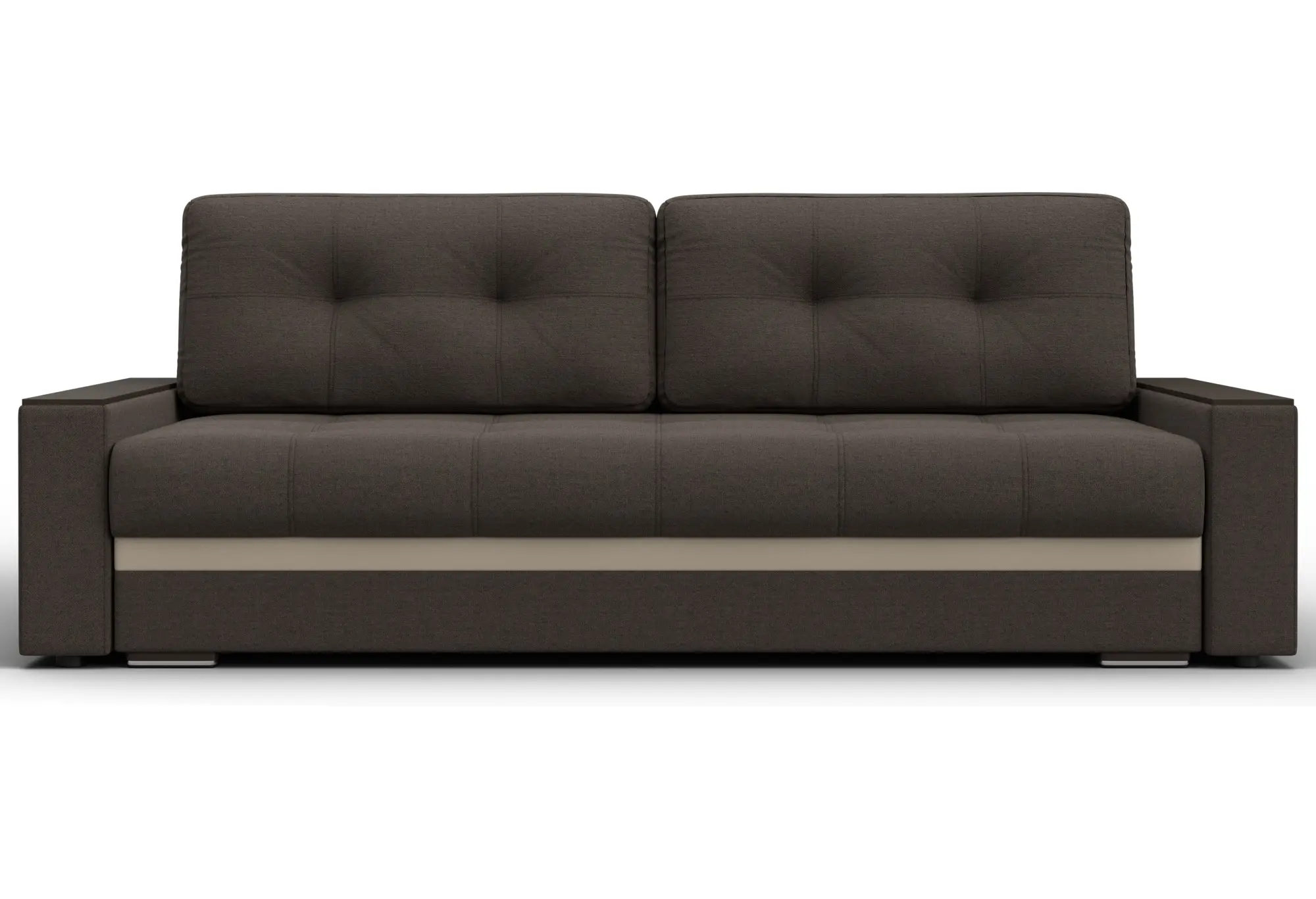 Диван прямой с декором Лига-096 НПБ Коричневый/Бежевый (Рогожка;Экокожа)