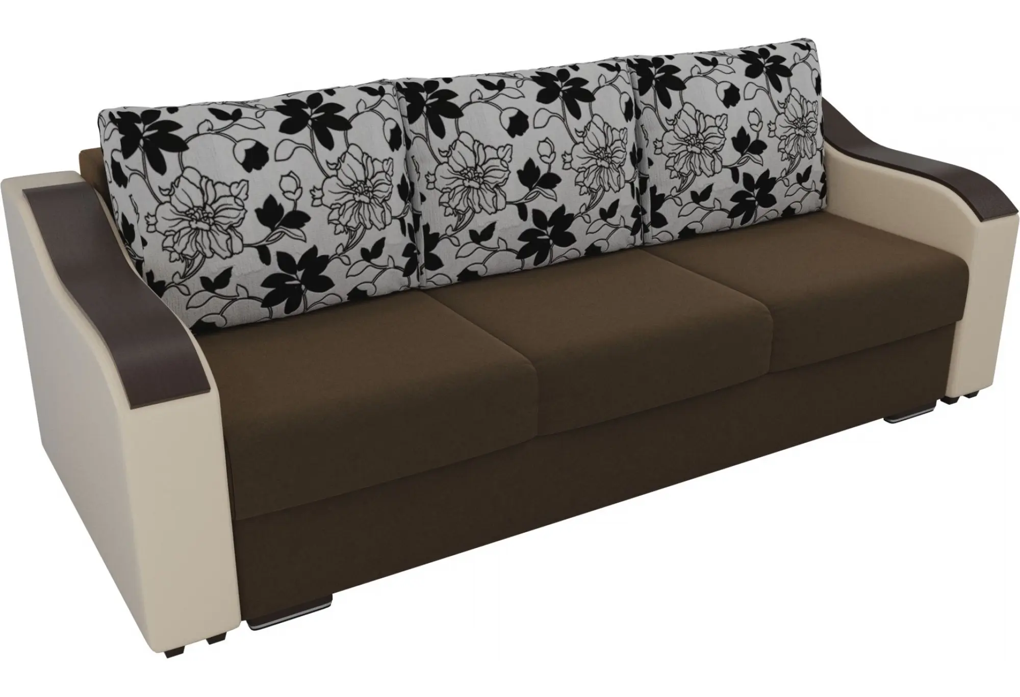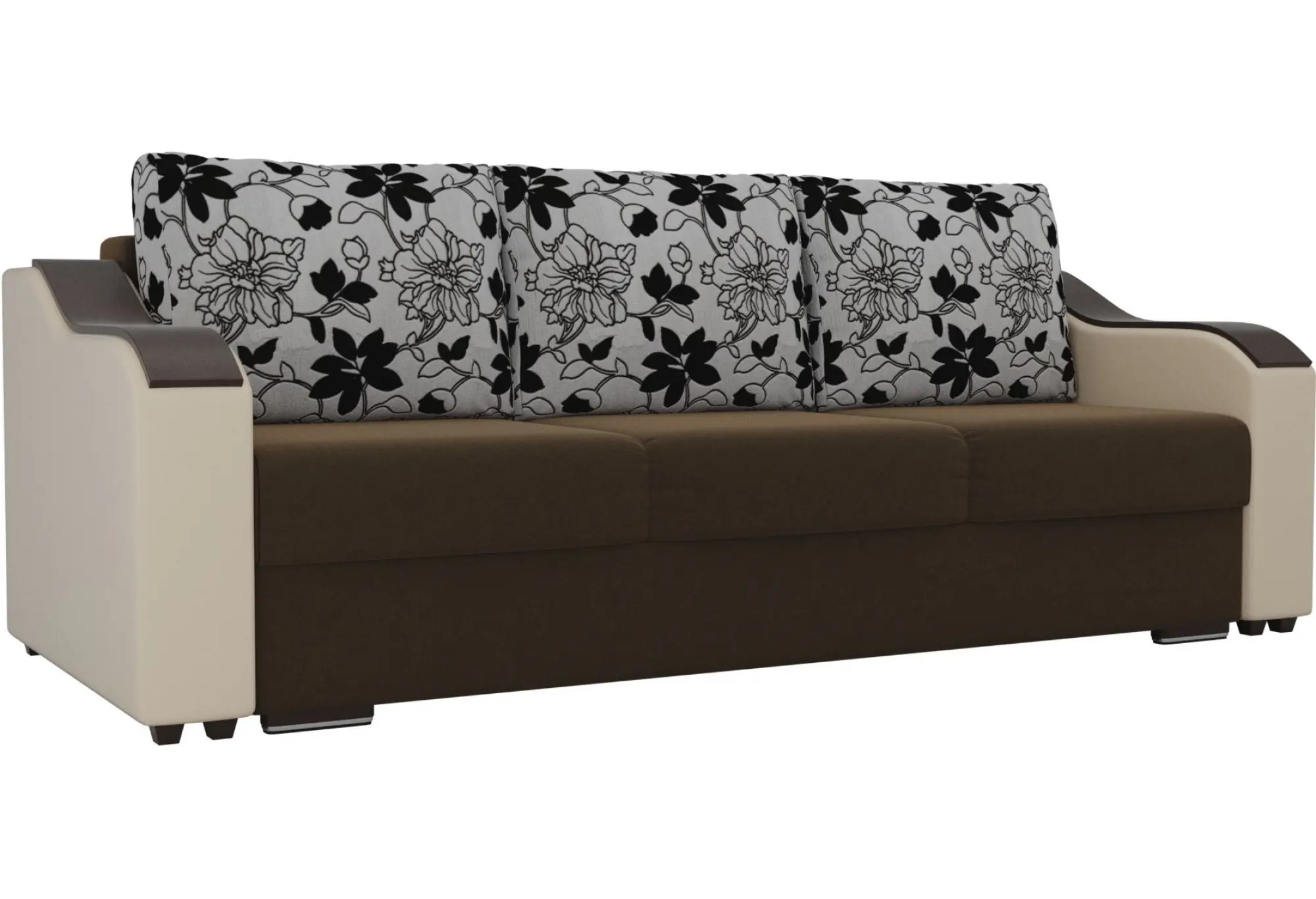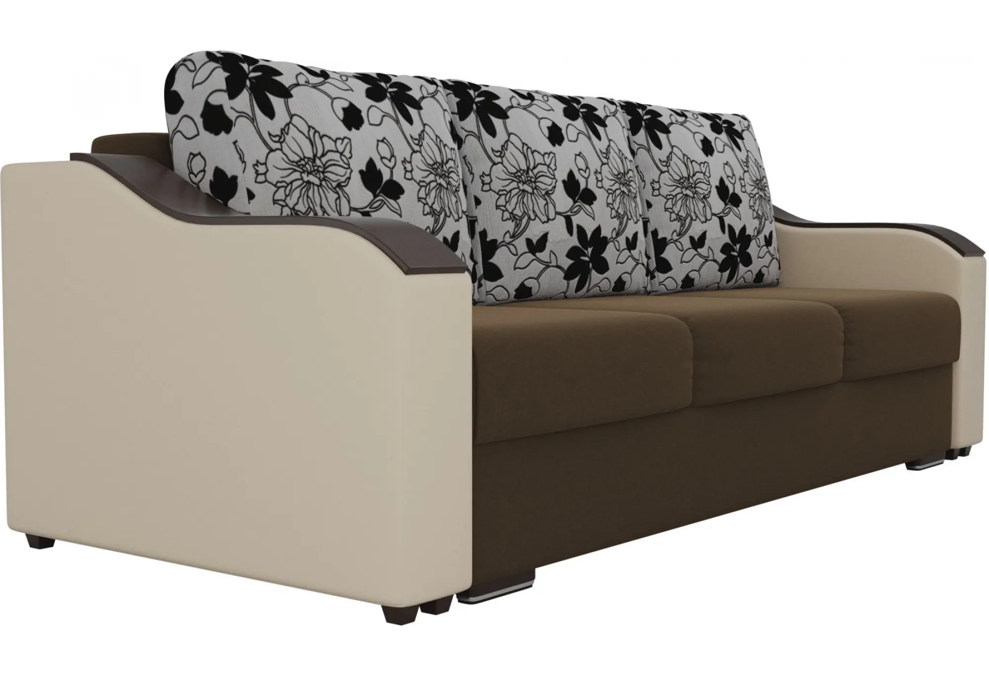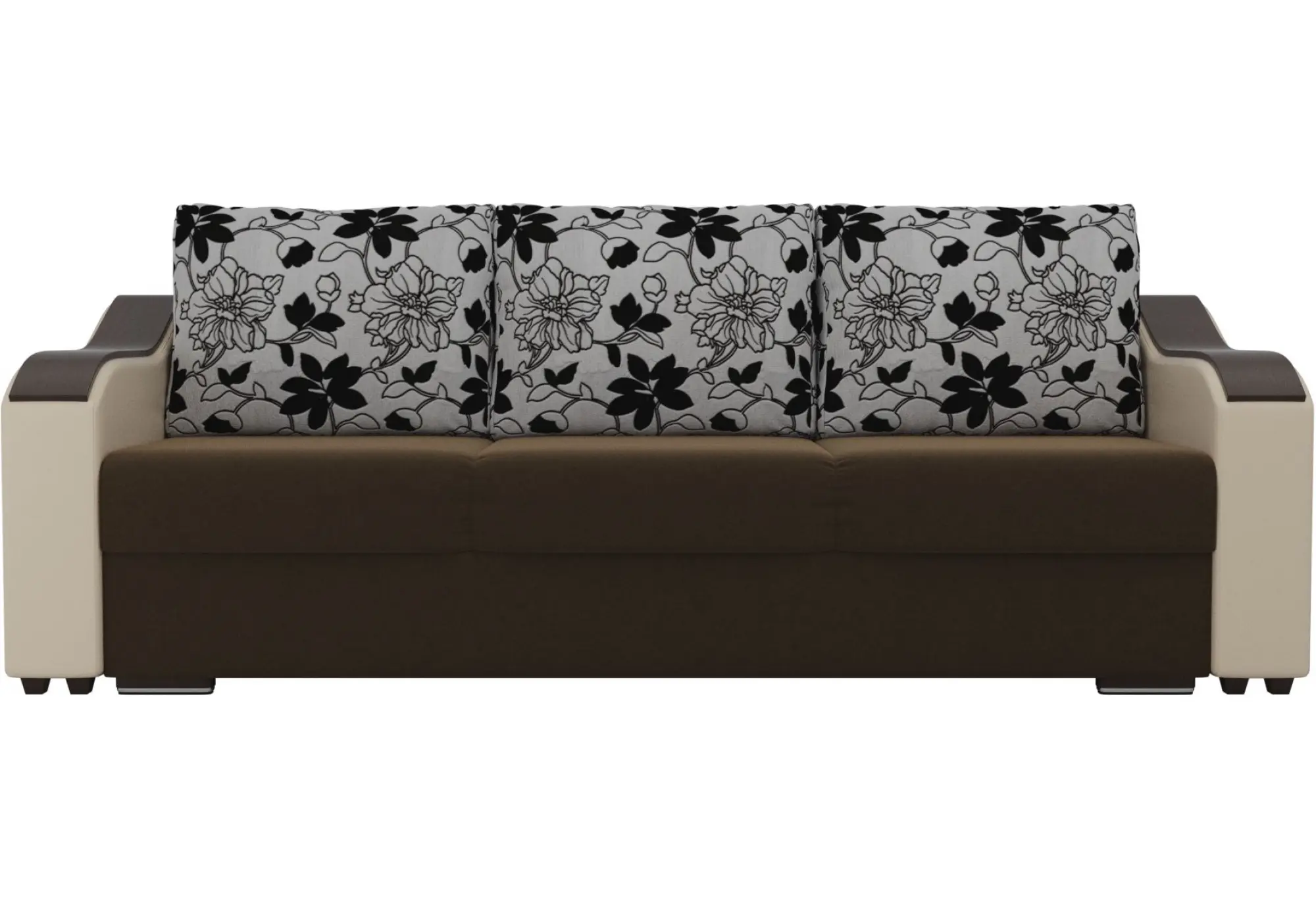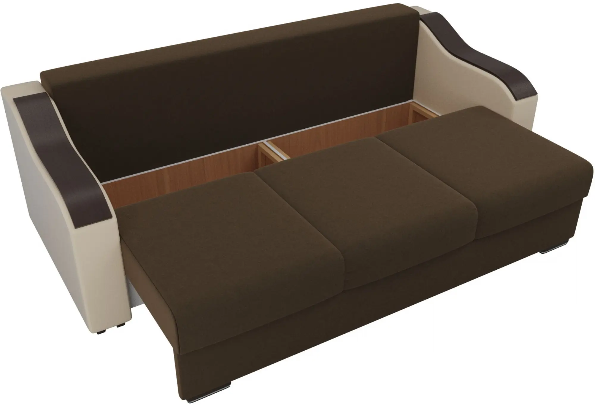 Прямой диван Монако Коричневый/Бежевый (Микровельвет/Экокожа/флок на рогожке)