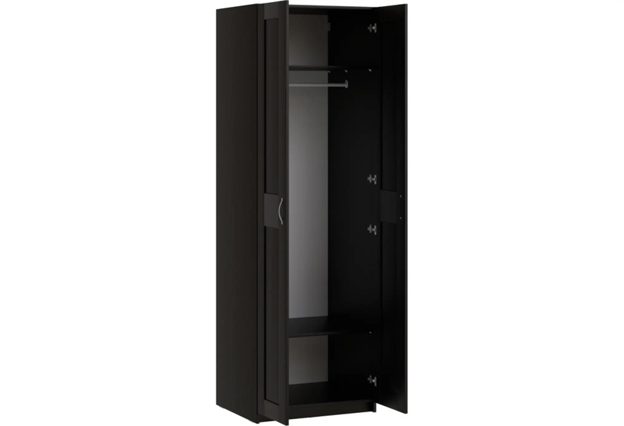Шкаф МАКС для одежды двухдверный, 750х610х2330, цвет Дуб Венге. Укомлектован двумя полками и штангой для вешалок. Изготовлен из кашированного ДСП толщиной 18 мм. Крепится к стене. Гарантийный срок для жилых помещений 24 месяца, для общественных помещений - 18 месяцев.