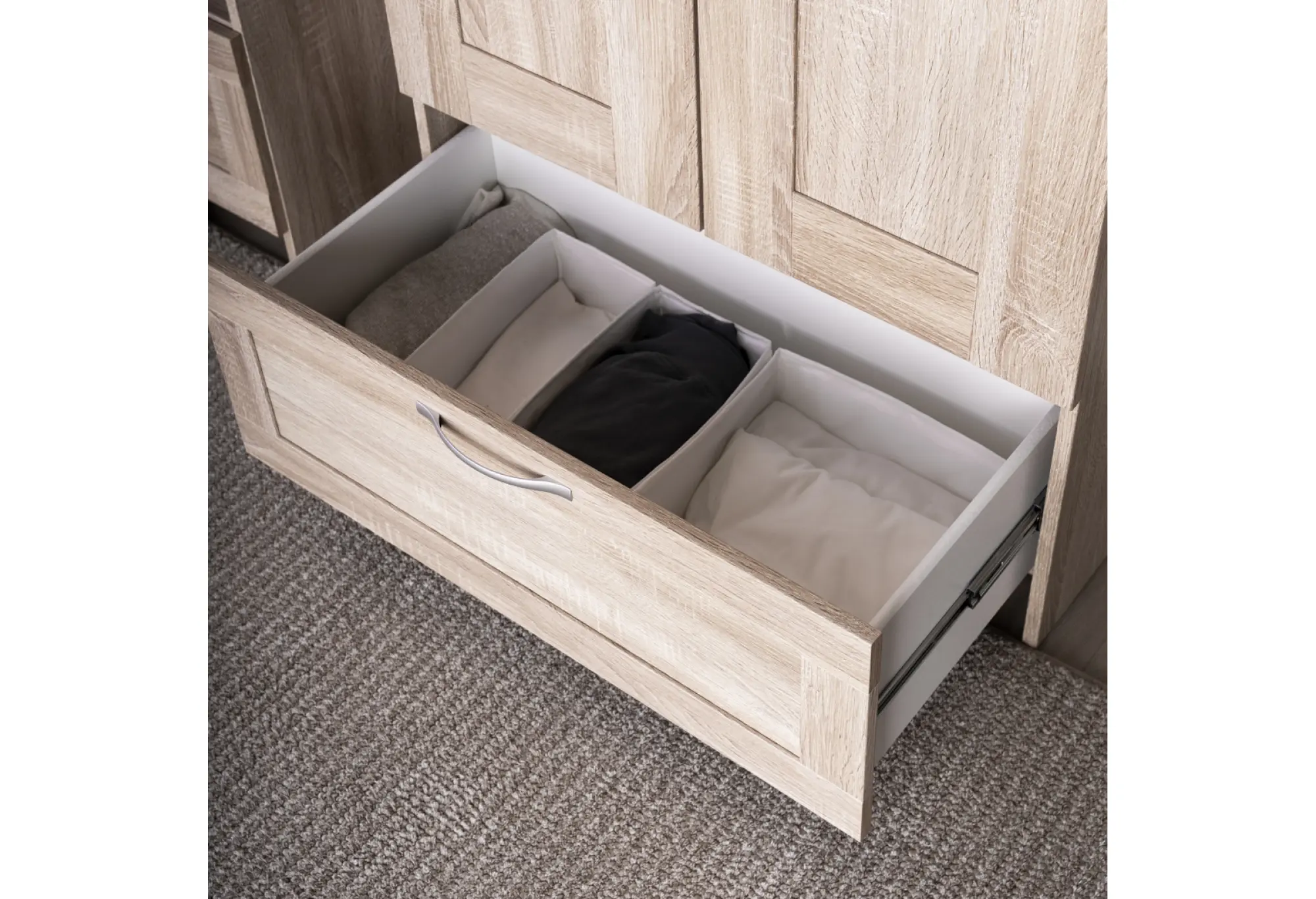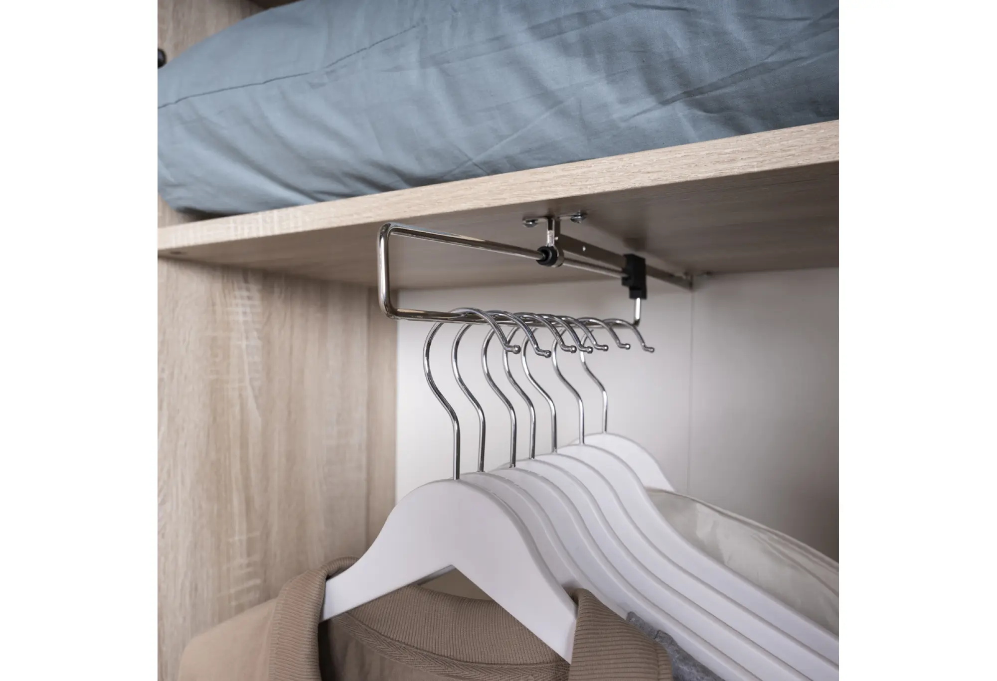 Этот шкаф хорошо подойдёт тем, кто хочет навести порядок в вещах без переплаты за лишний функционал и при этом сохранить спокойный, аккуратный вид комнаты.