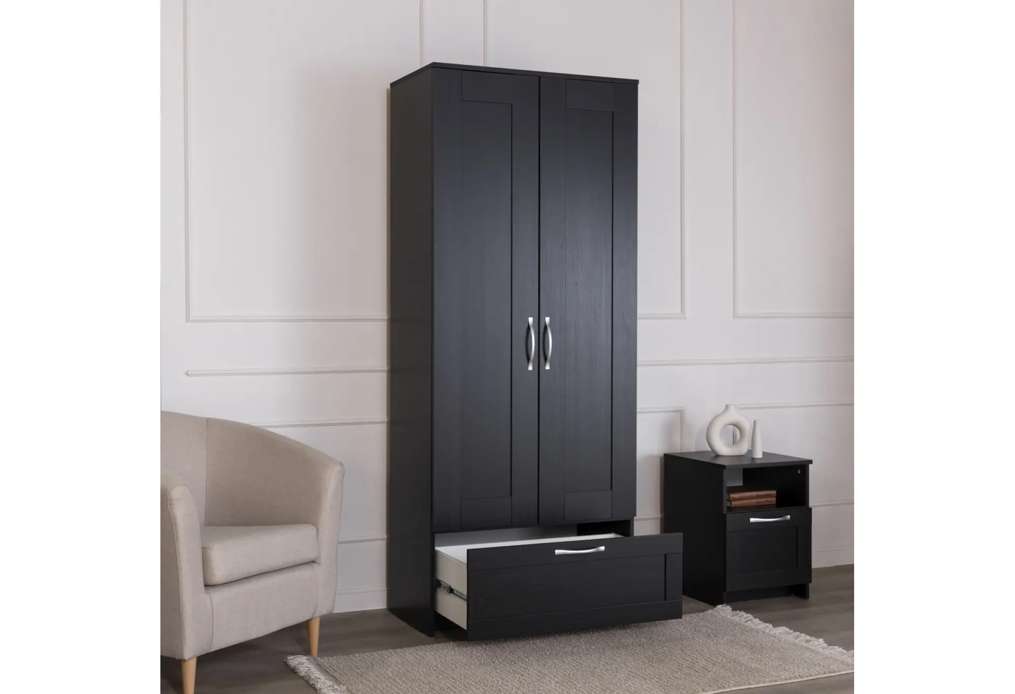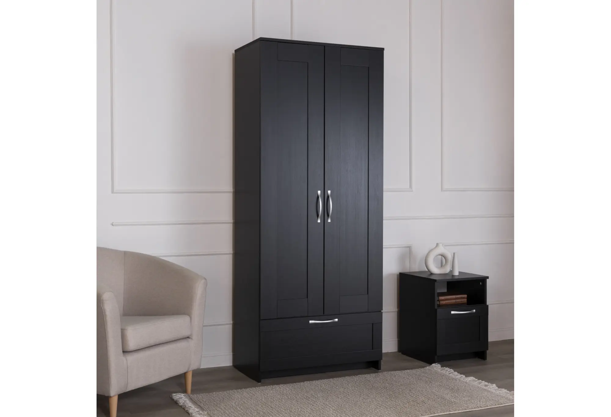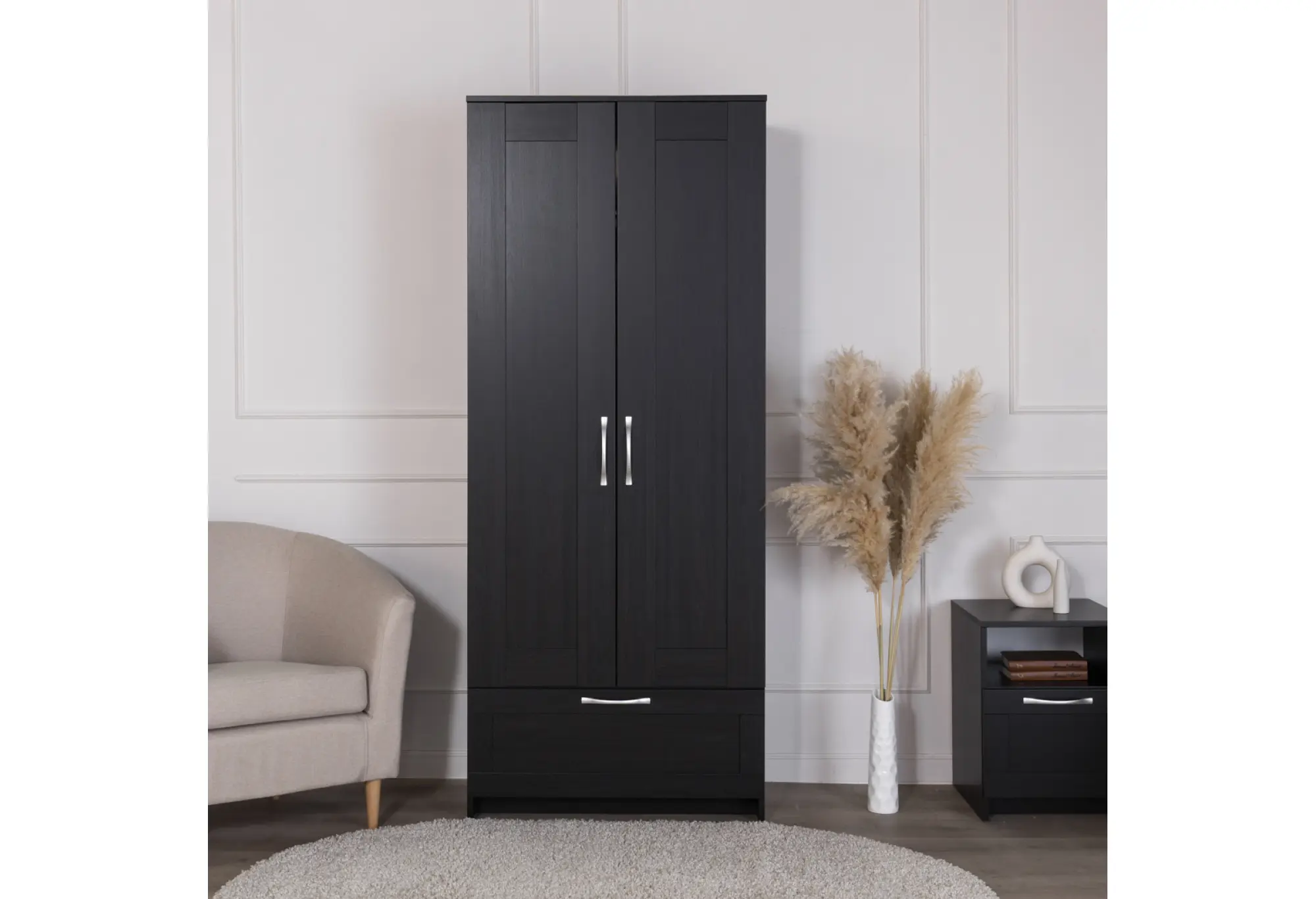 Двухстворчатый шкаф СИРИУС в цвете Дуб Венге — практичное решение для хранения одежды в спальне, прихожей или офисе. Корпус выполнен из кашированного ДСП толщиной 16 мм, что обеспечивает устойчивость конструкции и сохранение геометрии при ежедневной эксплуатации.