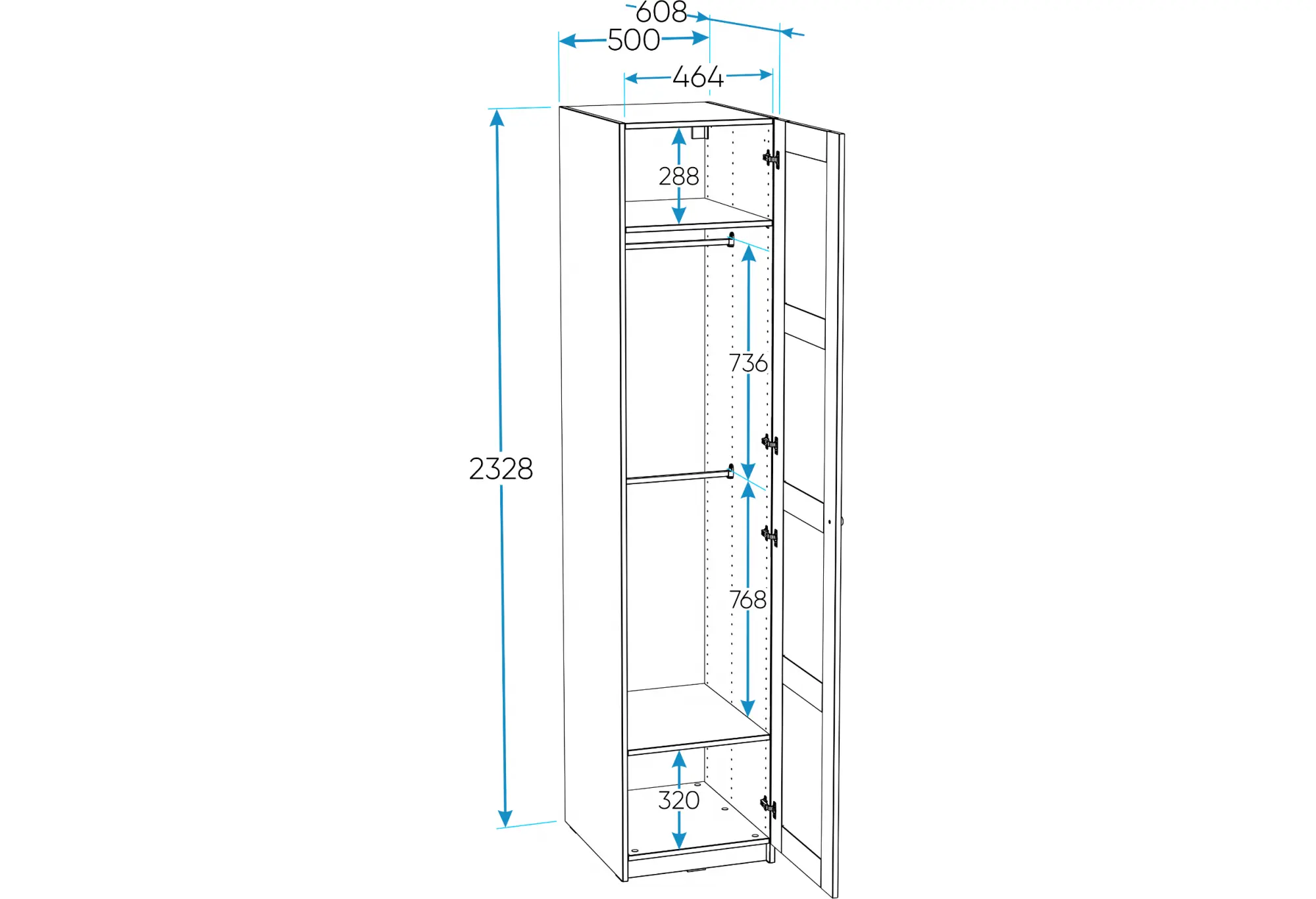 Дверь может быть установлена как с правым, так и с левым открыванием, что особенно удобно при планировании мебели в ограниченных по площади помещениях или при нестандартной расстановке. Конструкция предусматривает крепление шкафа к стене, что повышает безопасность эксплуатации и устойчивость, особенно в общественных пространствах или в домах с детьми.