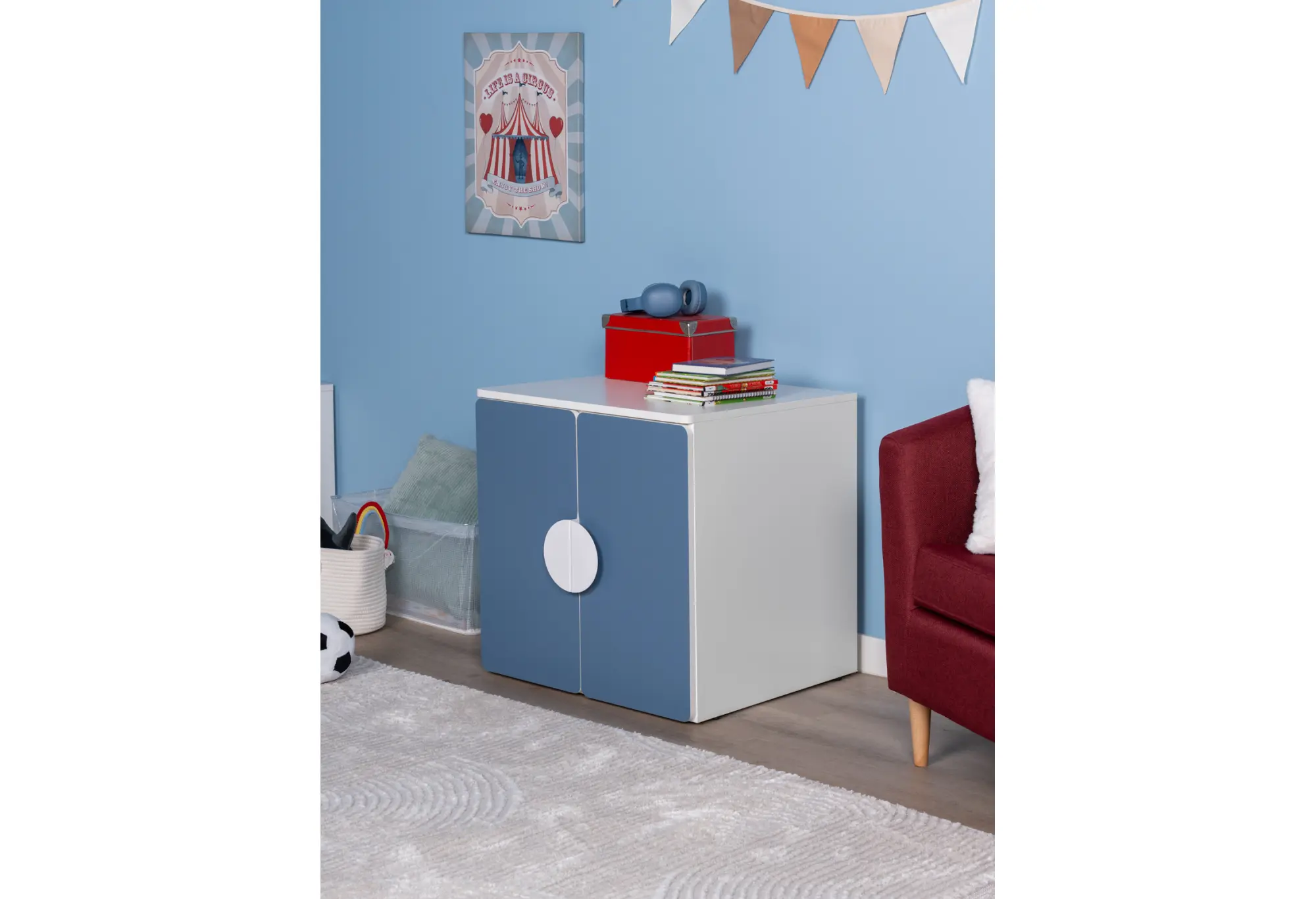 Благодаря кубической форме шкаф удобно ставить на пол, размещать на другой модуль или использовать как часть стеллажной композиции. Гладкие поверхности легко протирать, что особенно важно в детских и активно используемых зонах.