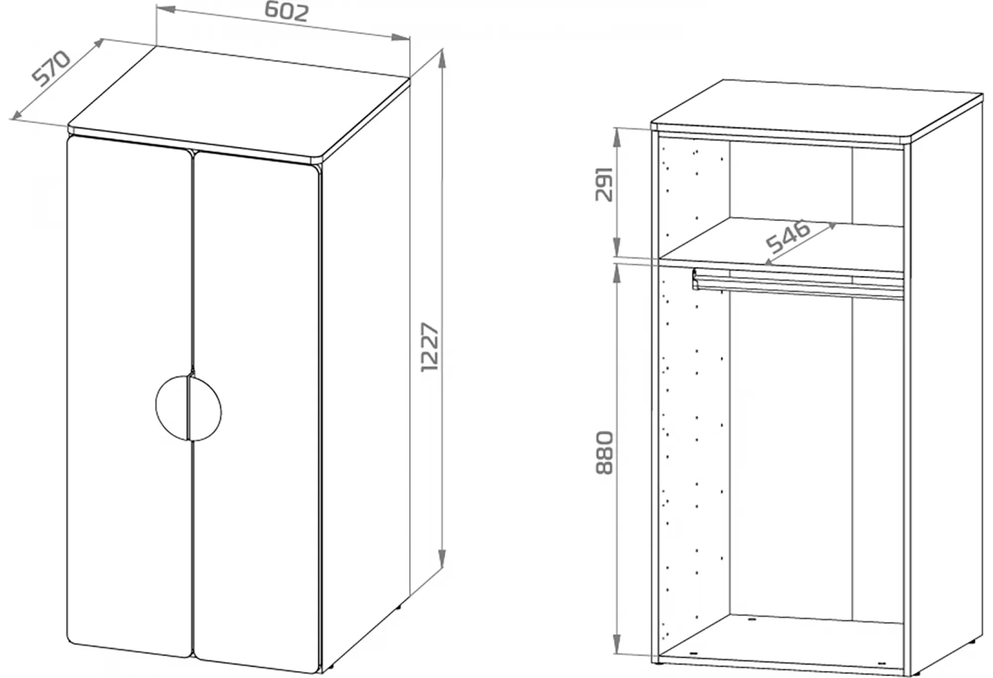 S02467 ПИКСИ шкаф распашной с 2 дверьми и полкой 60х57х123, озорной василек
