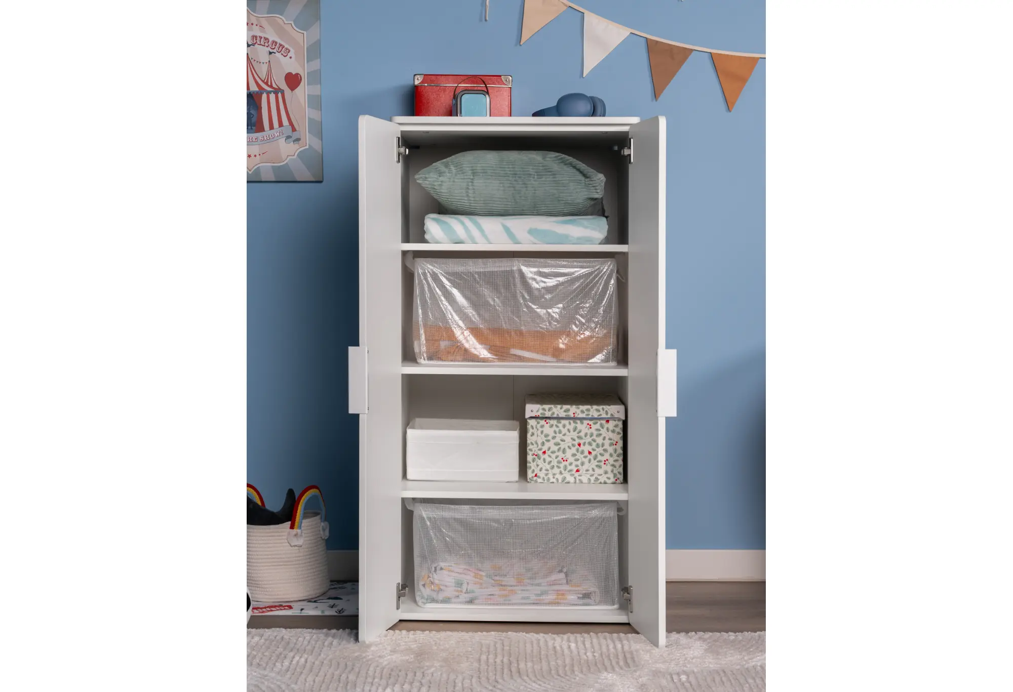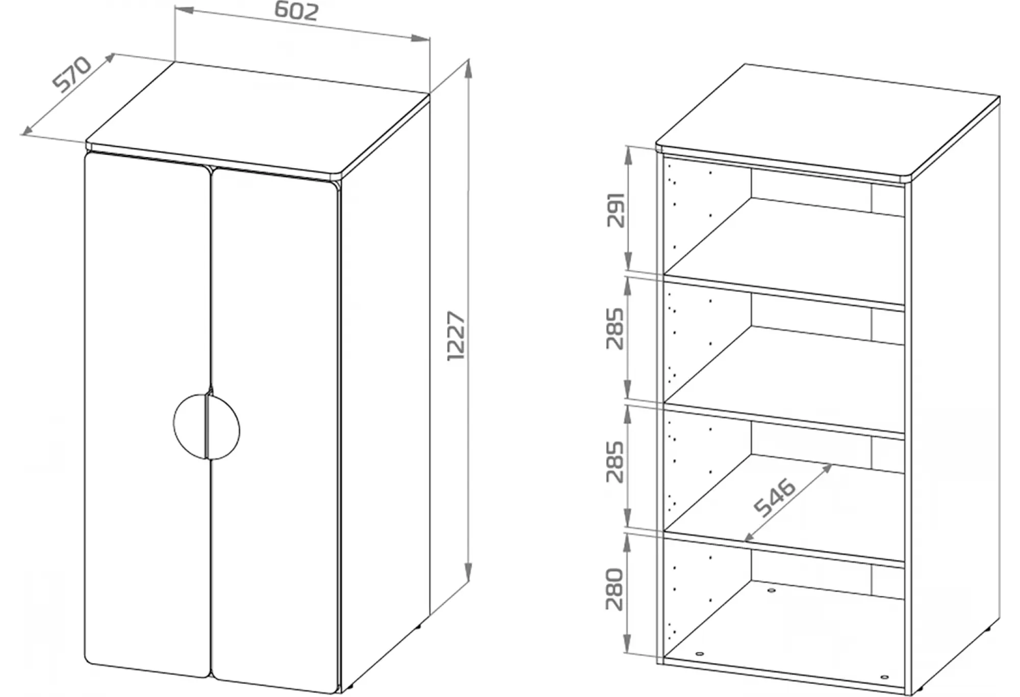 S02474 ПИКСИ шкаф распашной с 2 дверьми и 3 полками 60х57х123, озорной василек