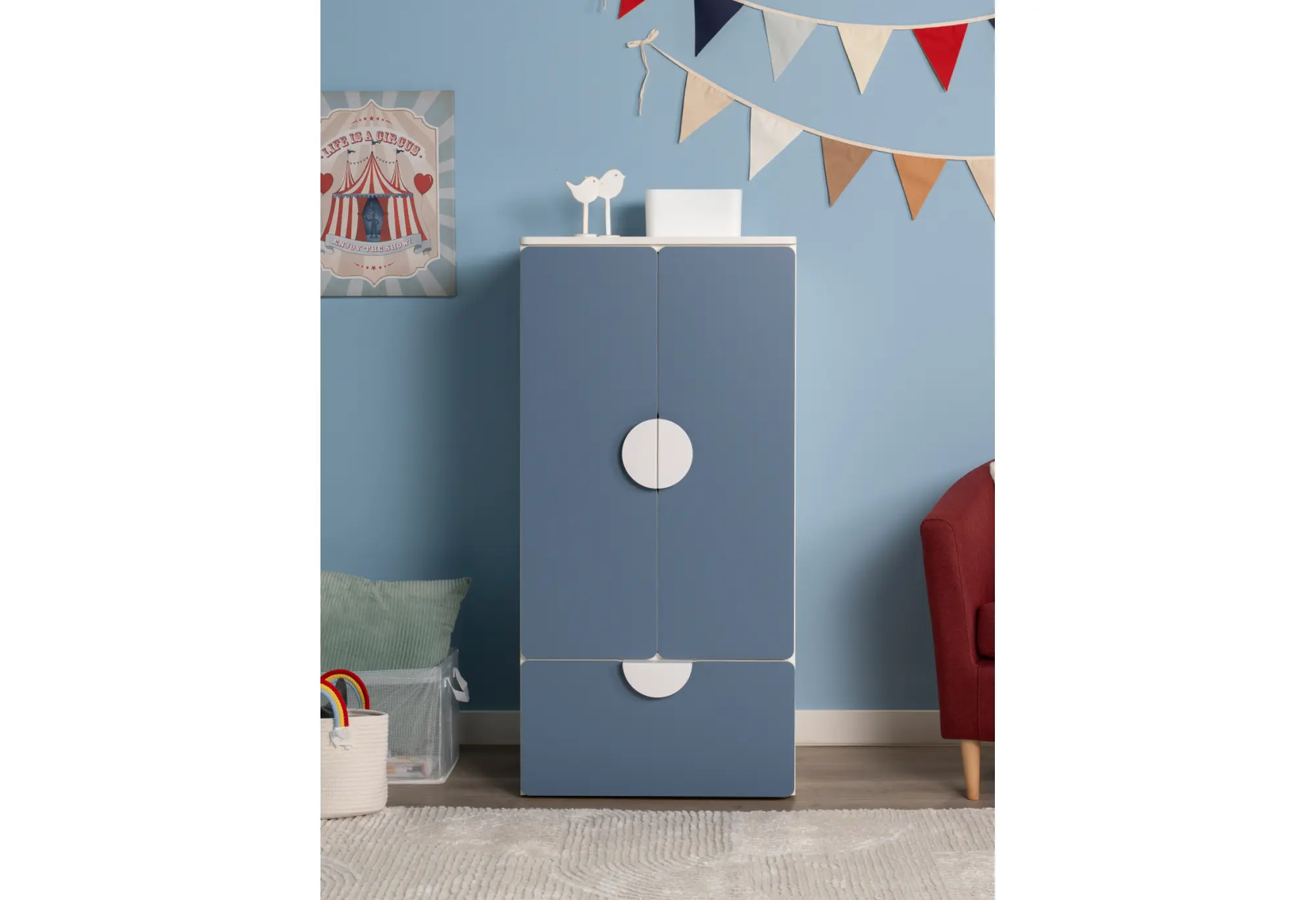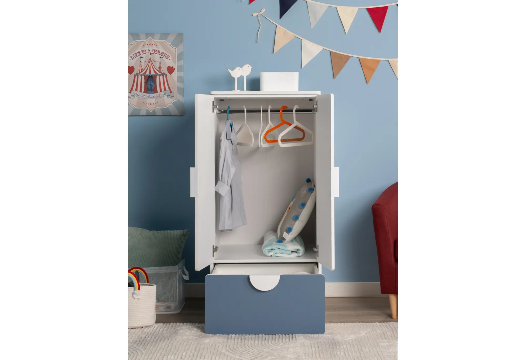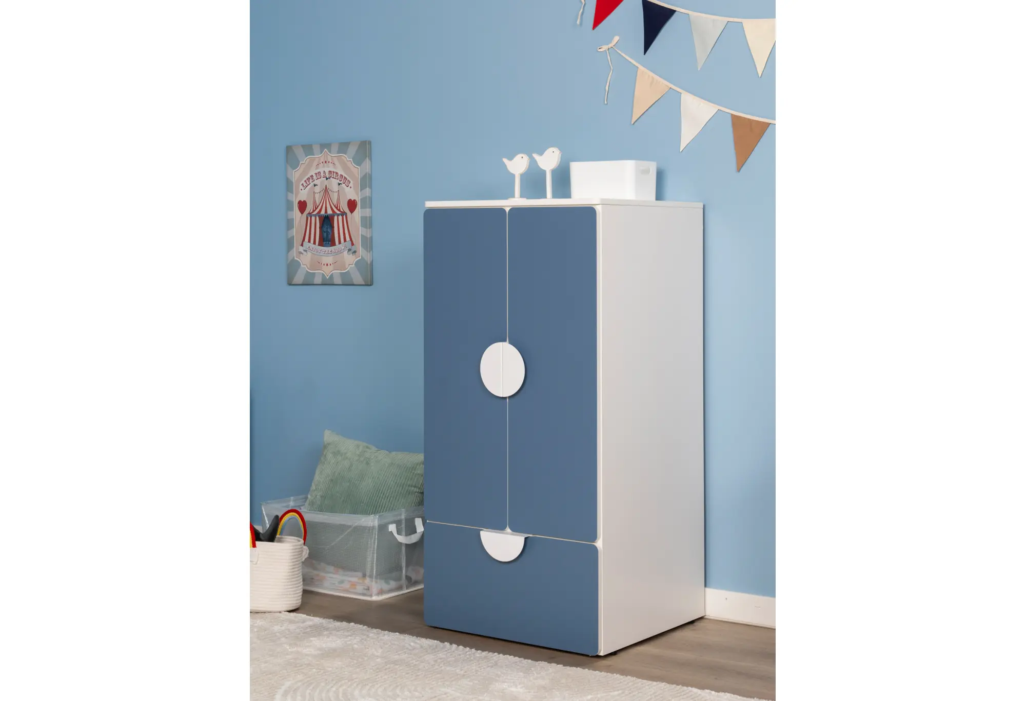 S02481 ПИКСИ шкаф распашной с 2 дверьми, полкой и ящиком 60х57х123, озорной василек