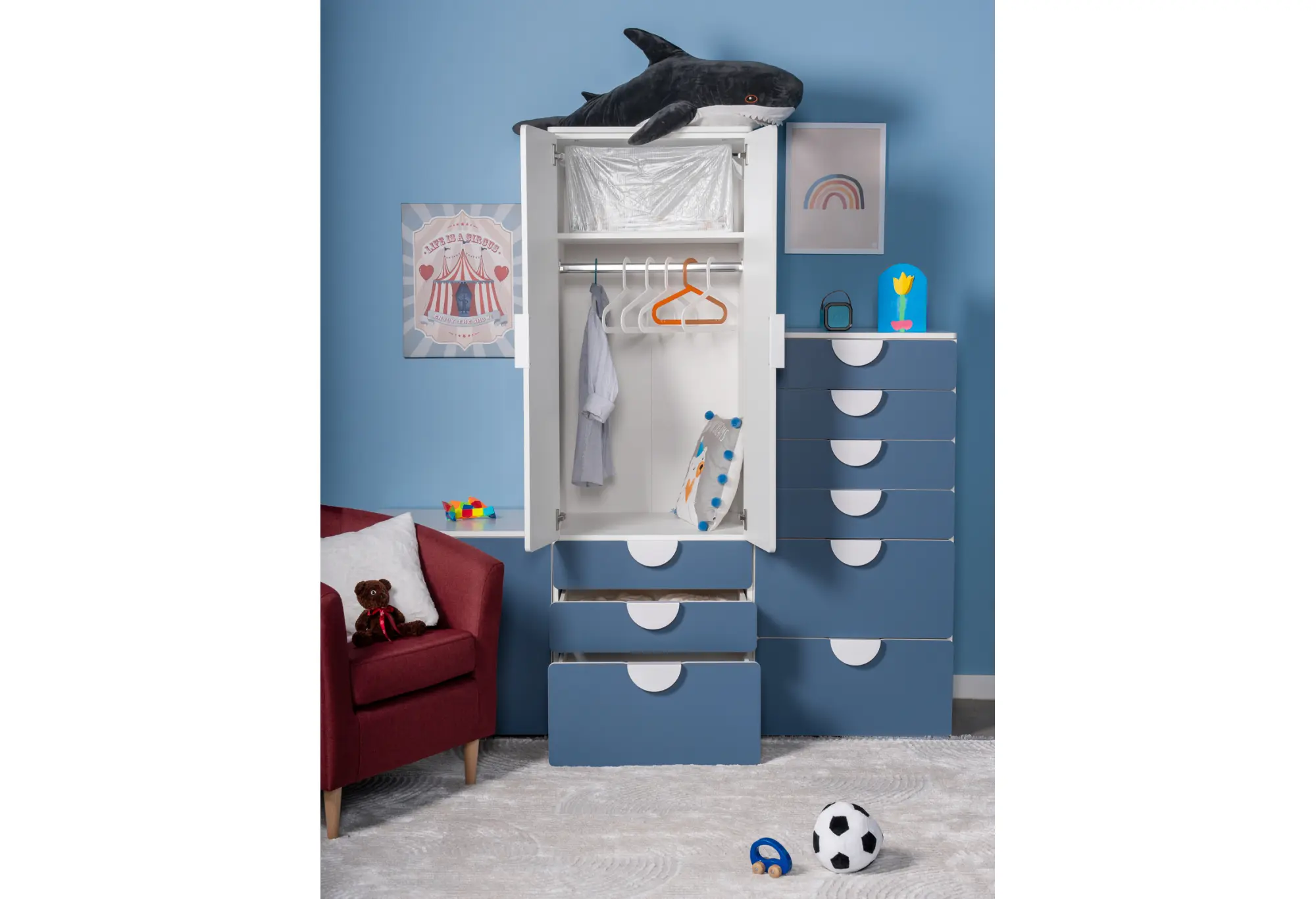 S02504 ПИКСИ шкаф распашной с 2 дверьми, 3 ящиками и полкой 60x57x183, озорной василек