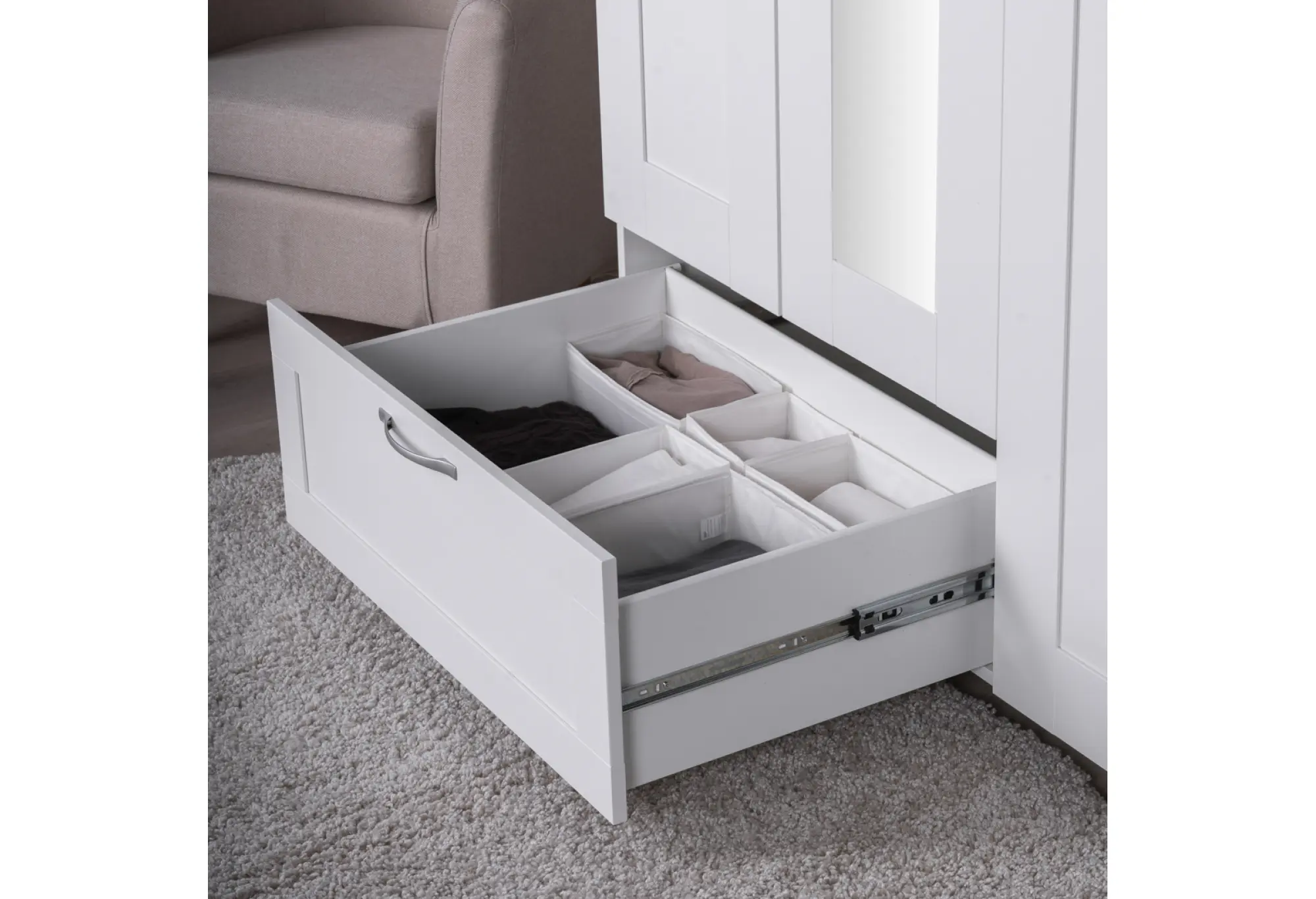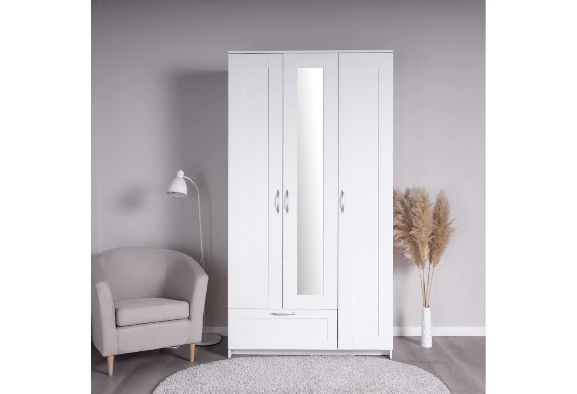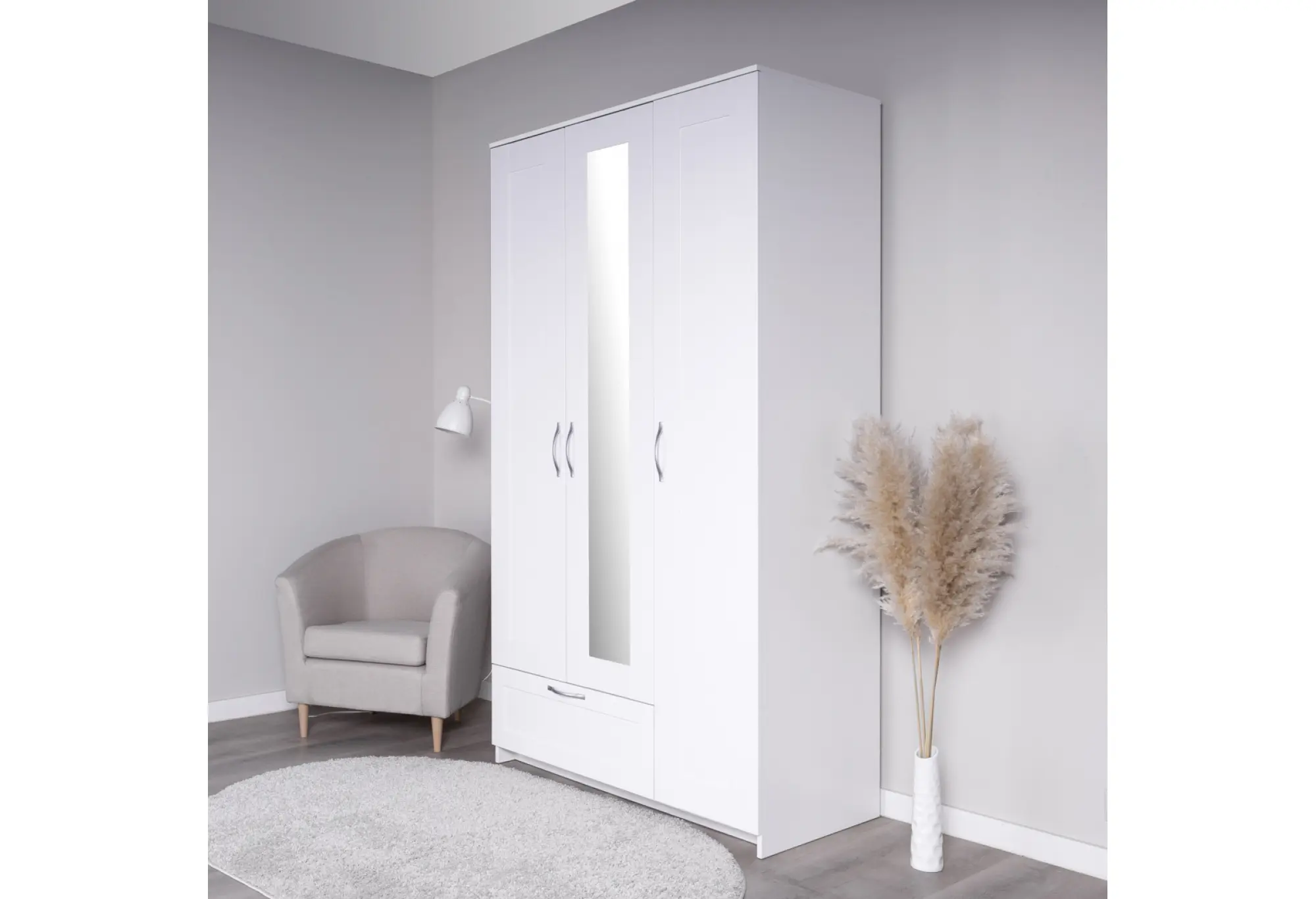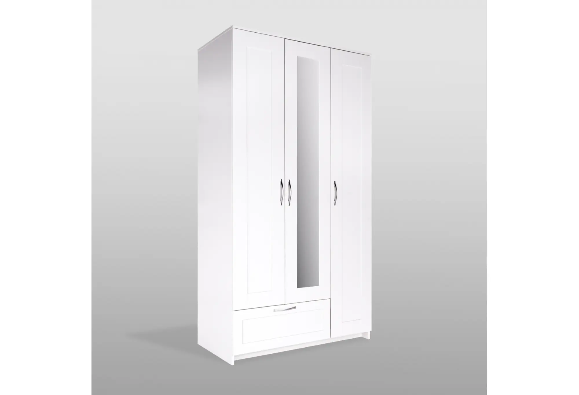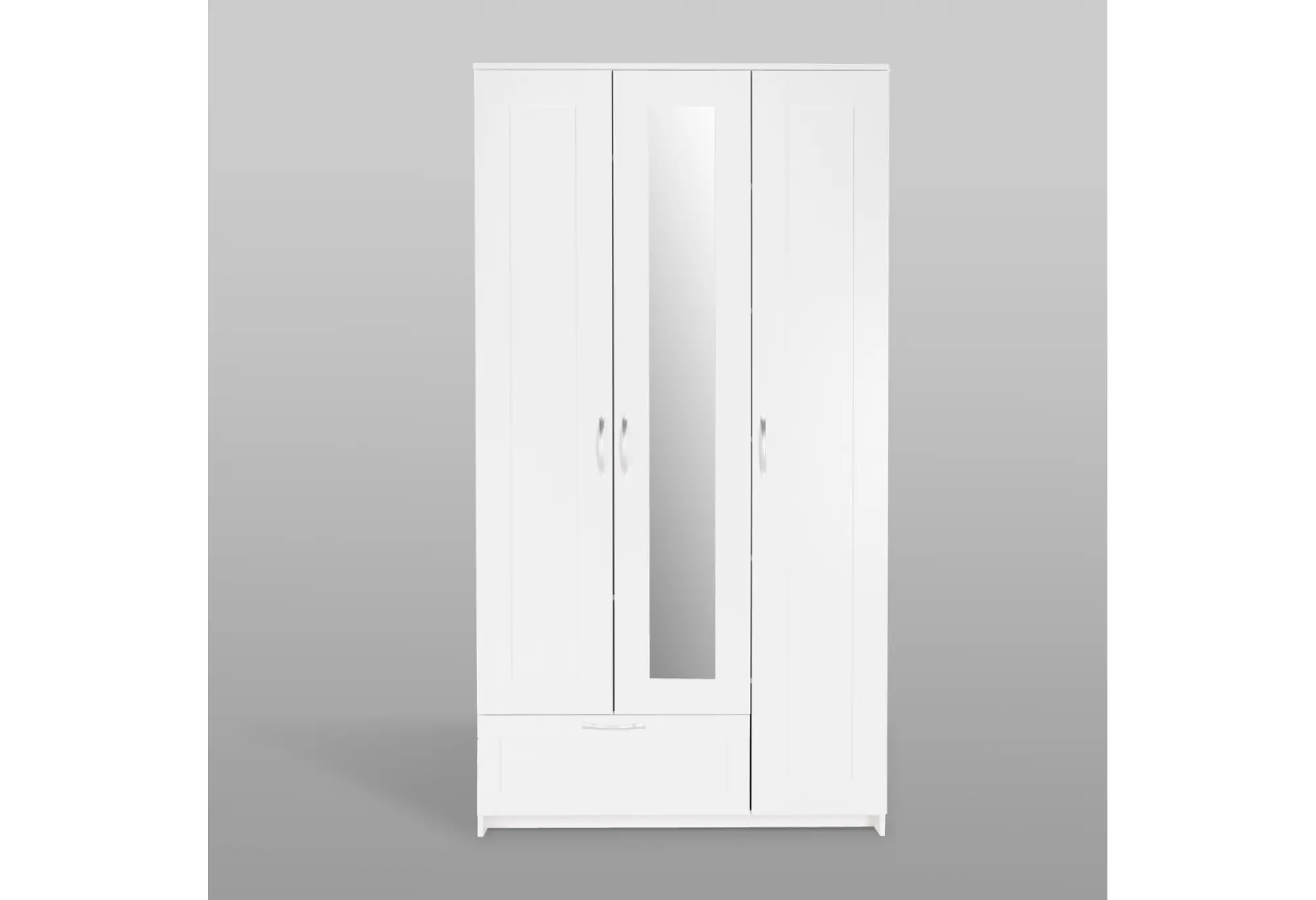 Шкаф СИРИУС трёхдверный белый с одним выдвижным ящиком и зеркалом