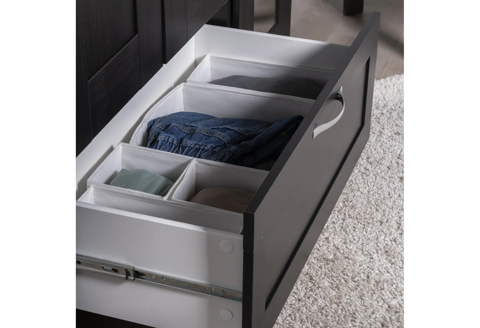 Один выдвижной ящик на шариковых направляющих рассчитан на нагрузку до 8 кг и подходит для аккуратного хранения мелких вещей - белья, аксессуаров, документов. Шариковые направляющие обеспечивают плавное и тихое выдвижение даже при регулярном использовании.