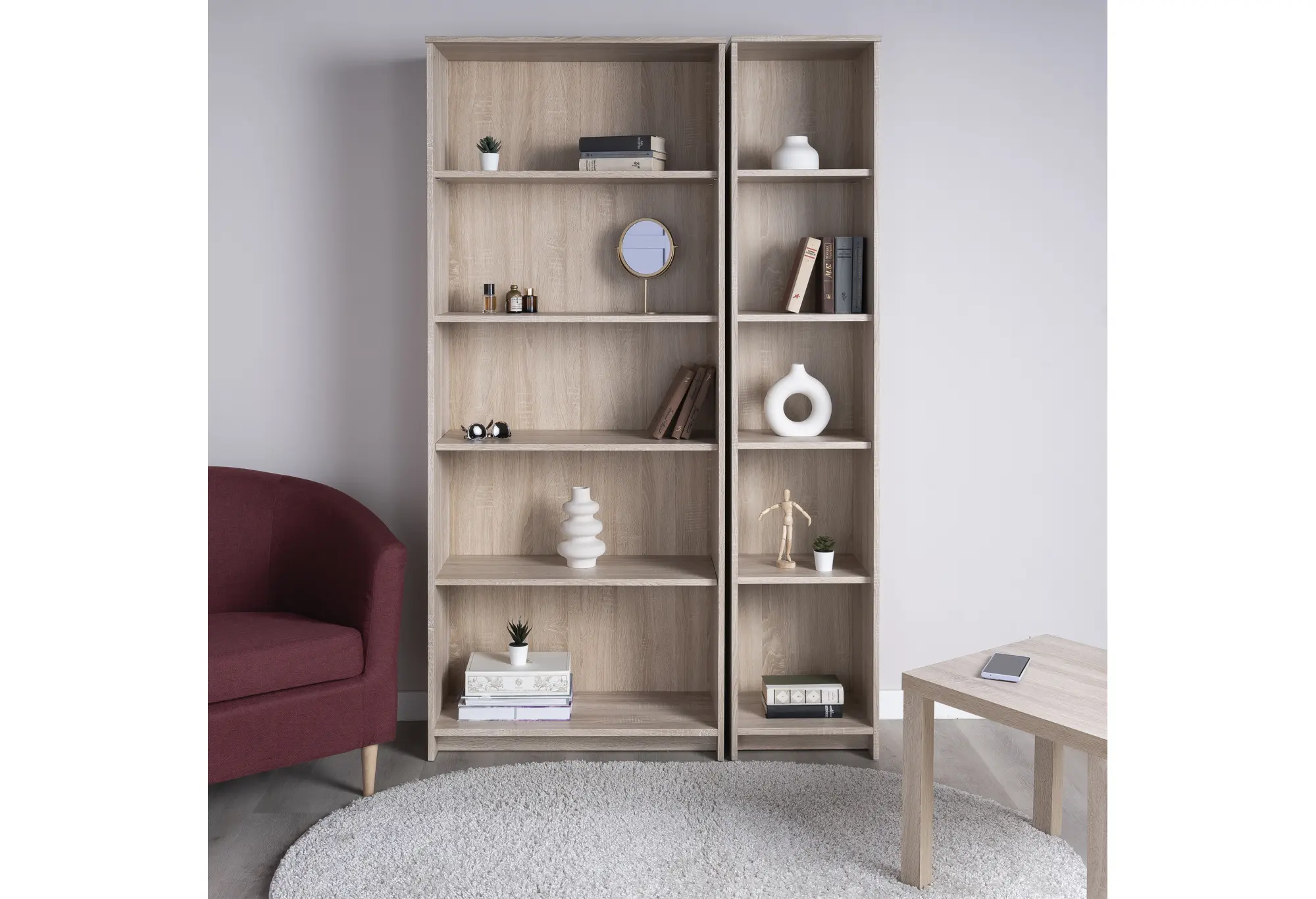 Широкий стеллаж «СИРИУС» в цвете Дуб Сонома выполнен из кашированного ДСП толщиной 16 мм и рассчитан на повседневную эксплуатацию как в жилых, так и в общественных помещениях. Корпус имеет прямые, лаконичные формы, благодаря чему стеллаж легко вписывается в современные интерьеры и не перегружает пространство. Высота 1900 мм и ширина 782 мм обеспечивают хорошую вместимость - пять открытых полок образуют удобные ярусы для размещения книг, папок, коробок и декоративных предметов. Глубина 348 мм позволяет разместить на полках как стандартные форматы документов, так и более объемные предметы. Поверхность в оттенке Дуб Сонома визуально подчеркивает структуру древесины и делает внешний вид стеллажа более спокойным и нейтральным, что удобно при сочетании с другой мебелью. Конструкция предусматривает крепление к стене, что повышает устойчивость и снижает риск опрокидывания при нагрузке на полки.