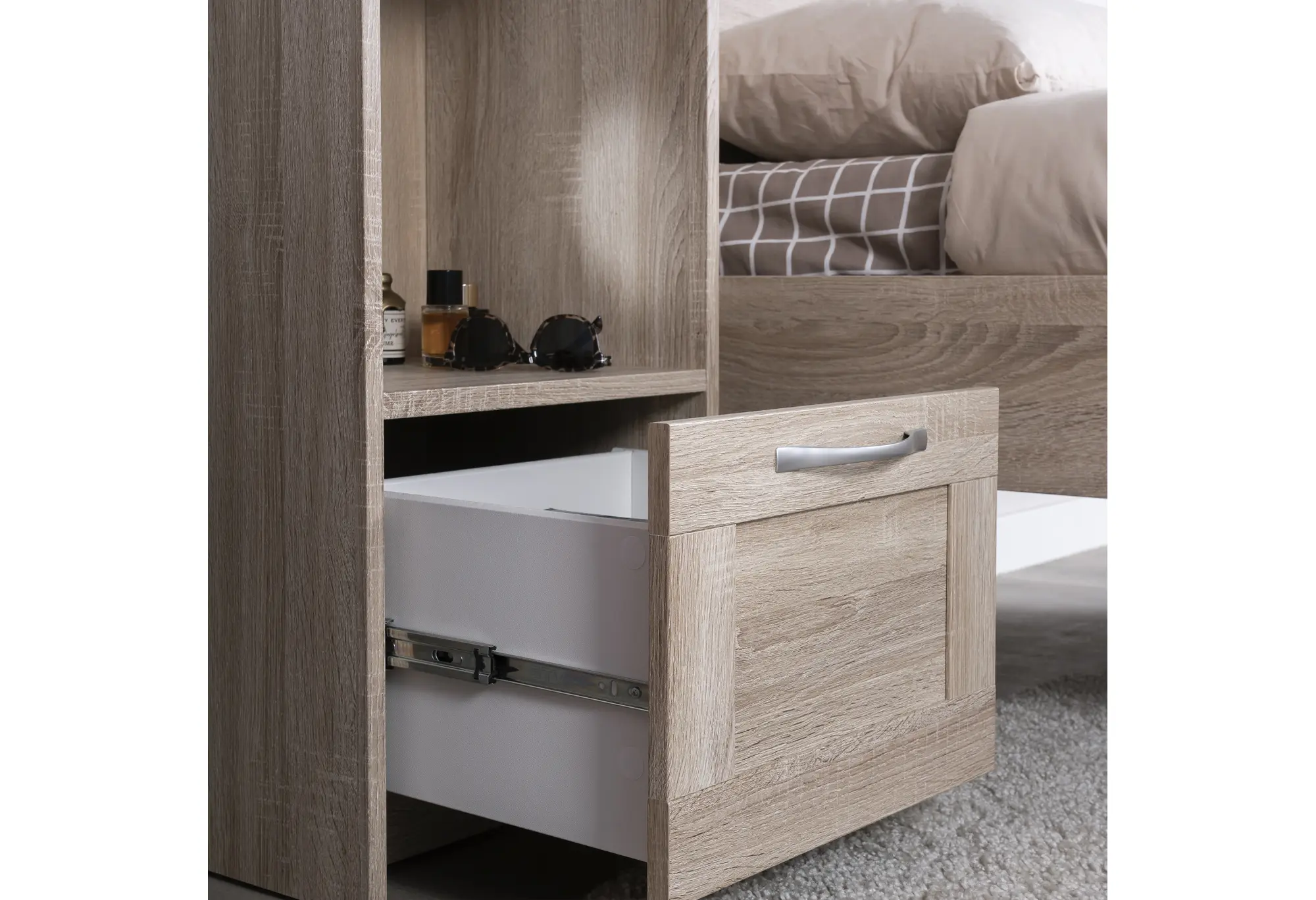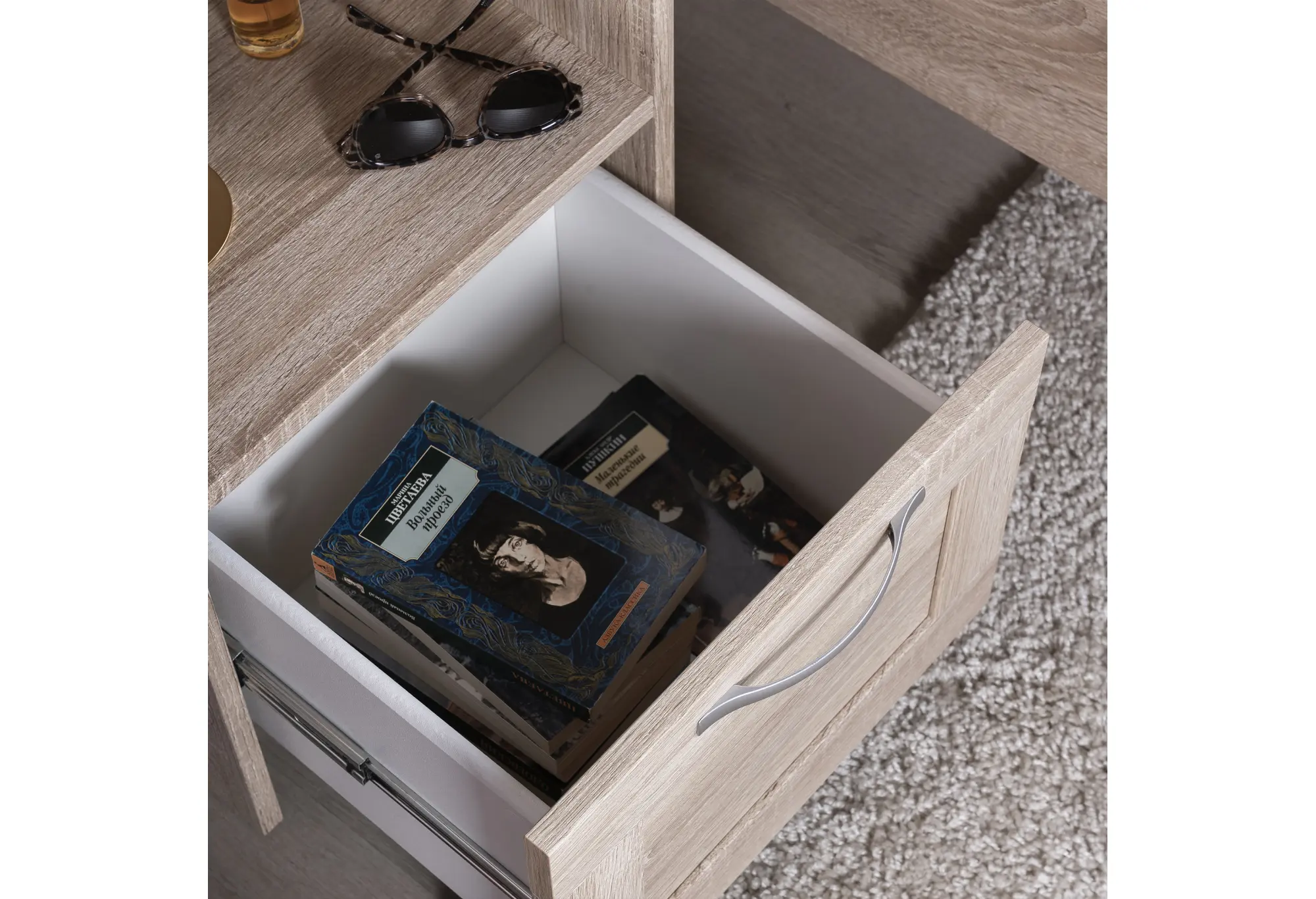 - Внешний выдвижной ящик для закрытого хранения мелких вещей