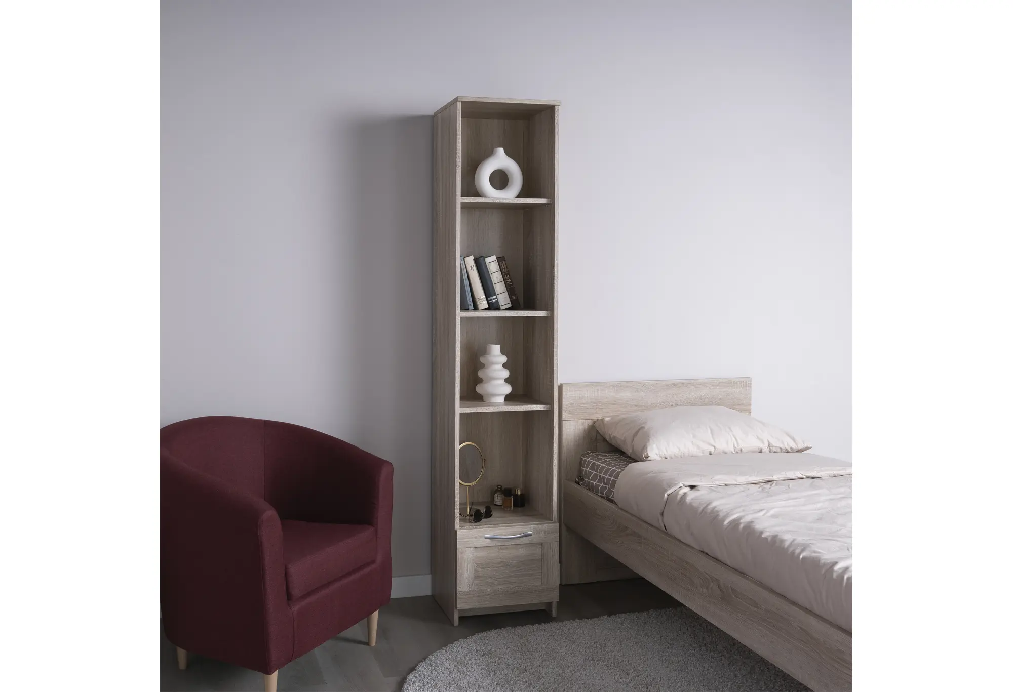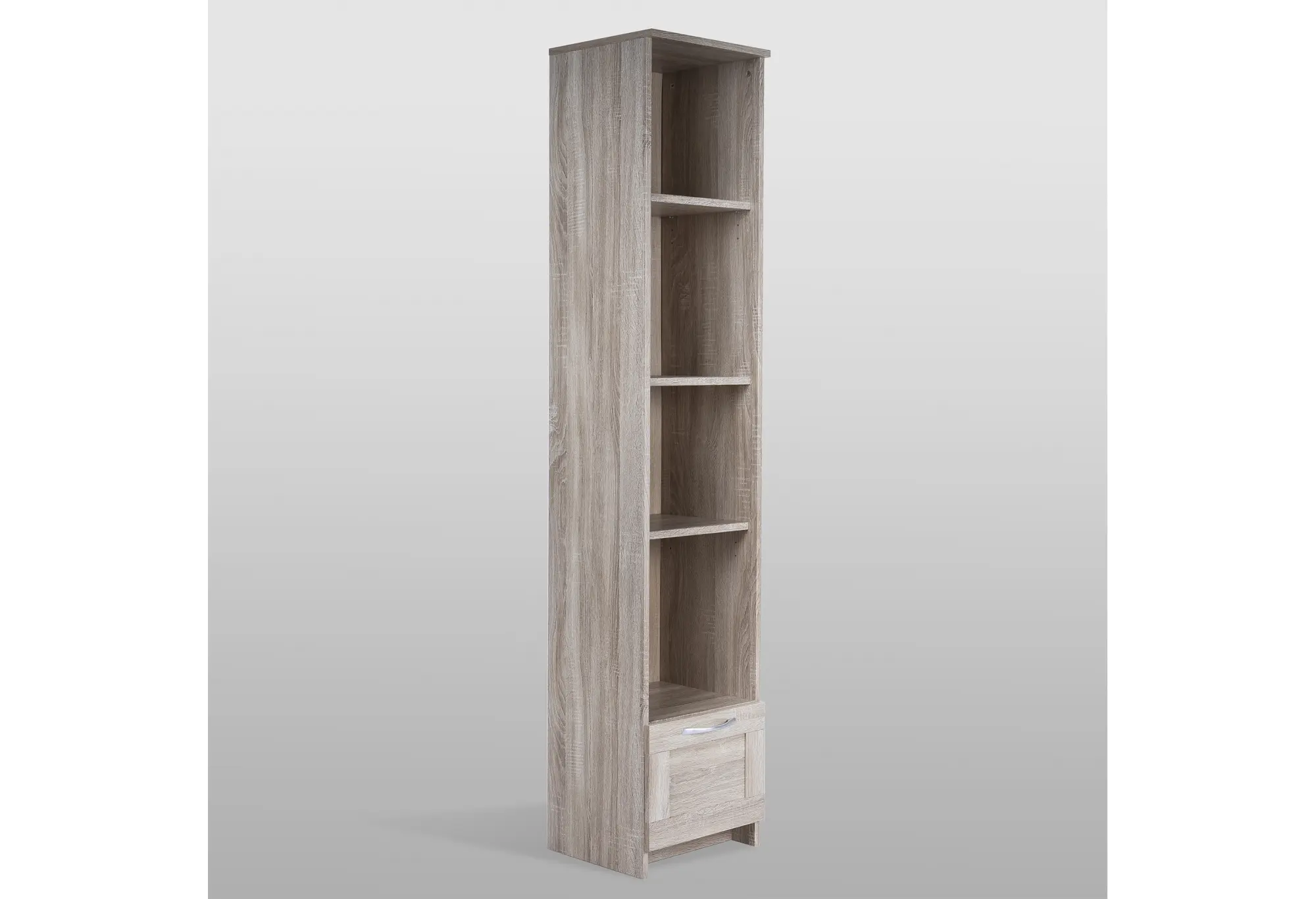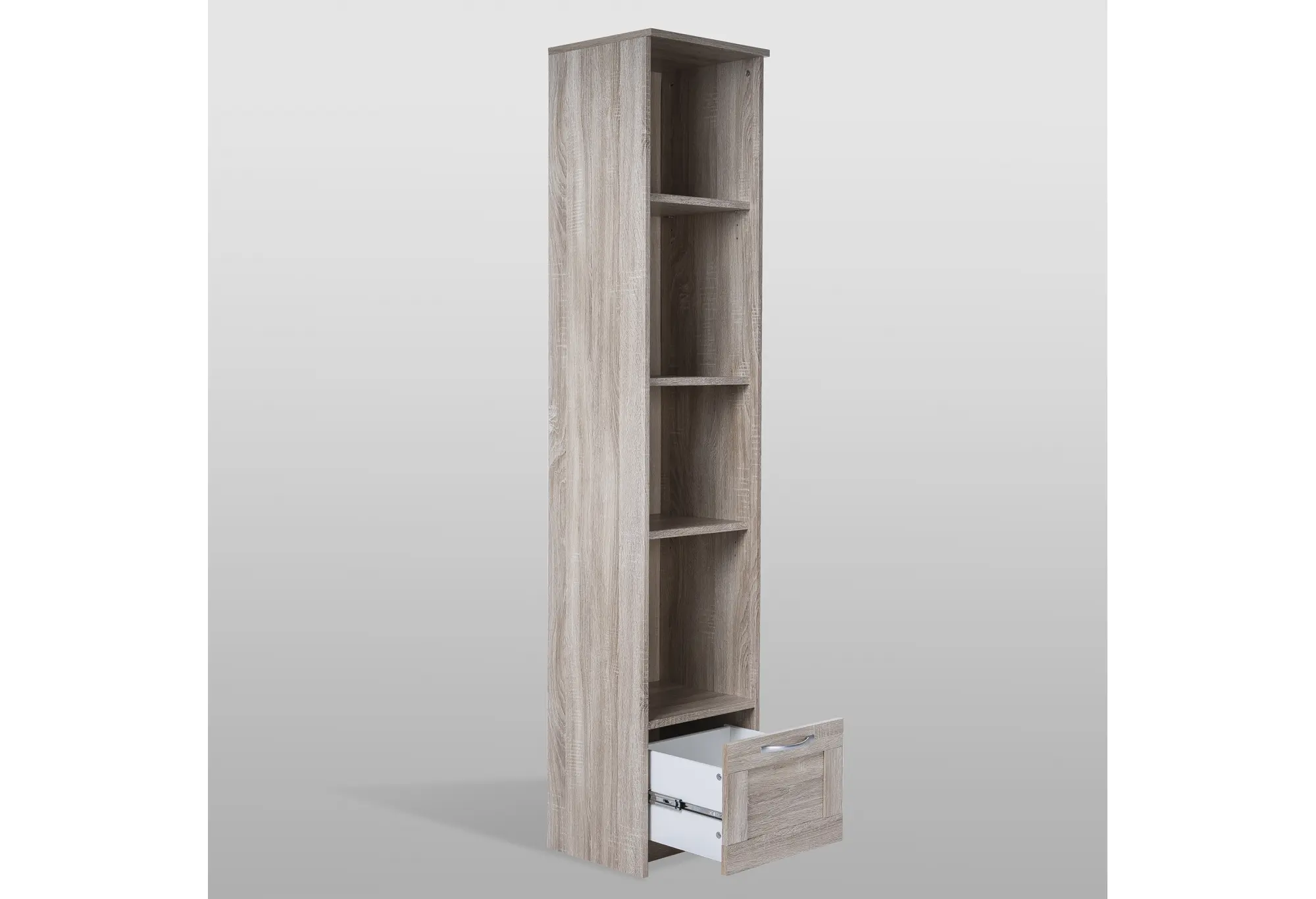 Стеллаж СИРИУС узкий, с ящиком и четырьмя полками, цвет Дуб Сонома