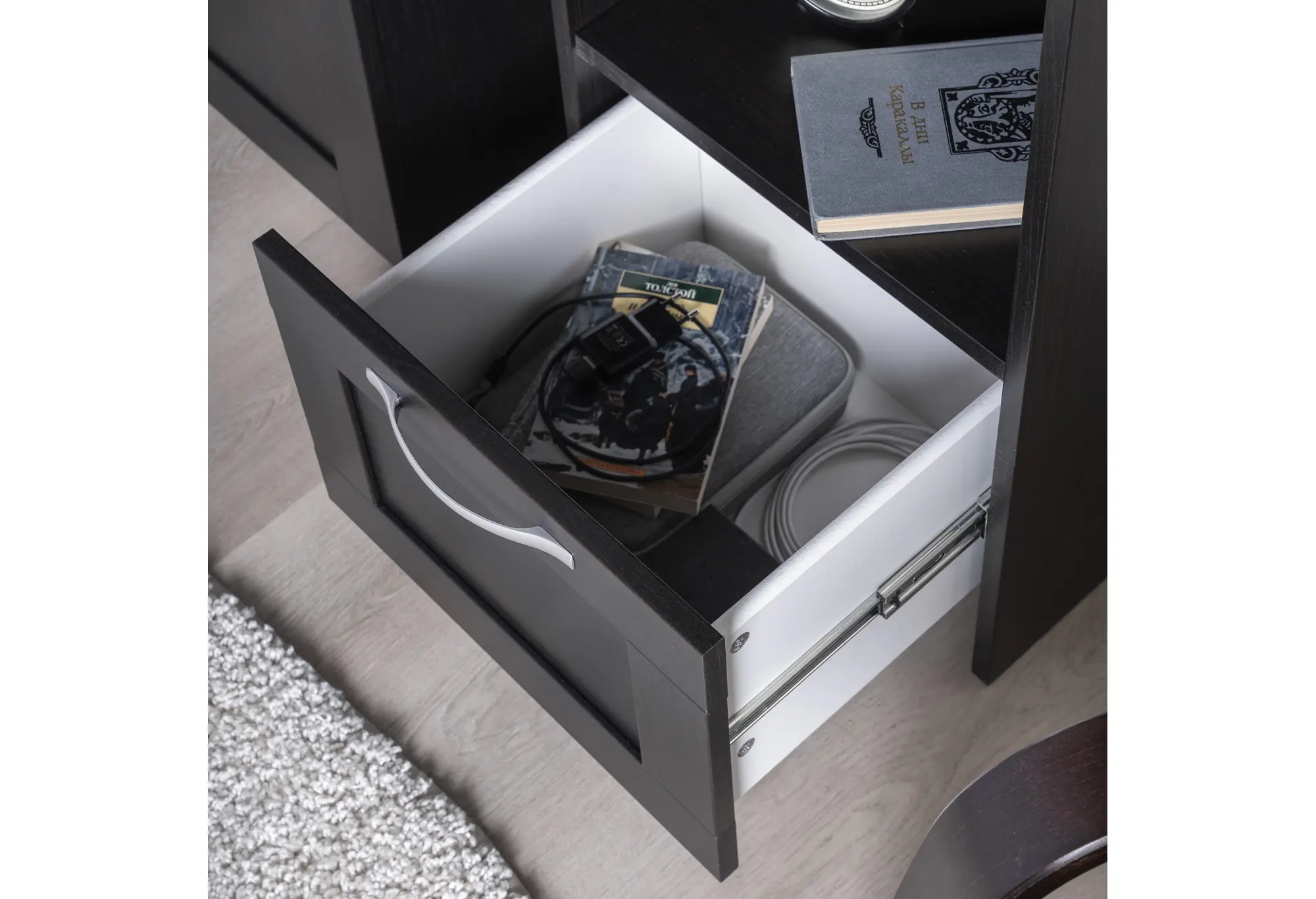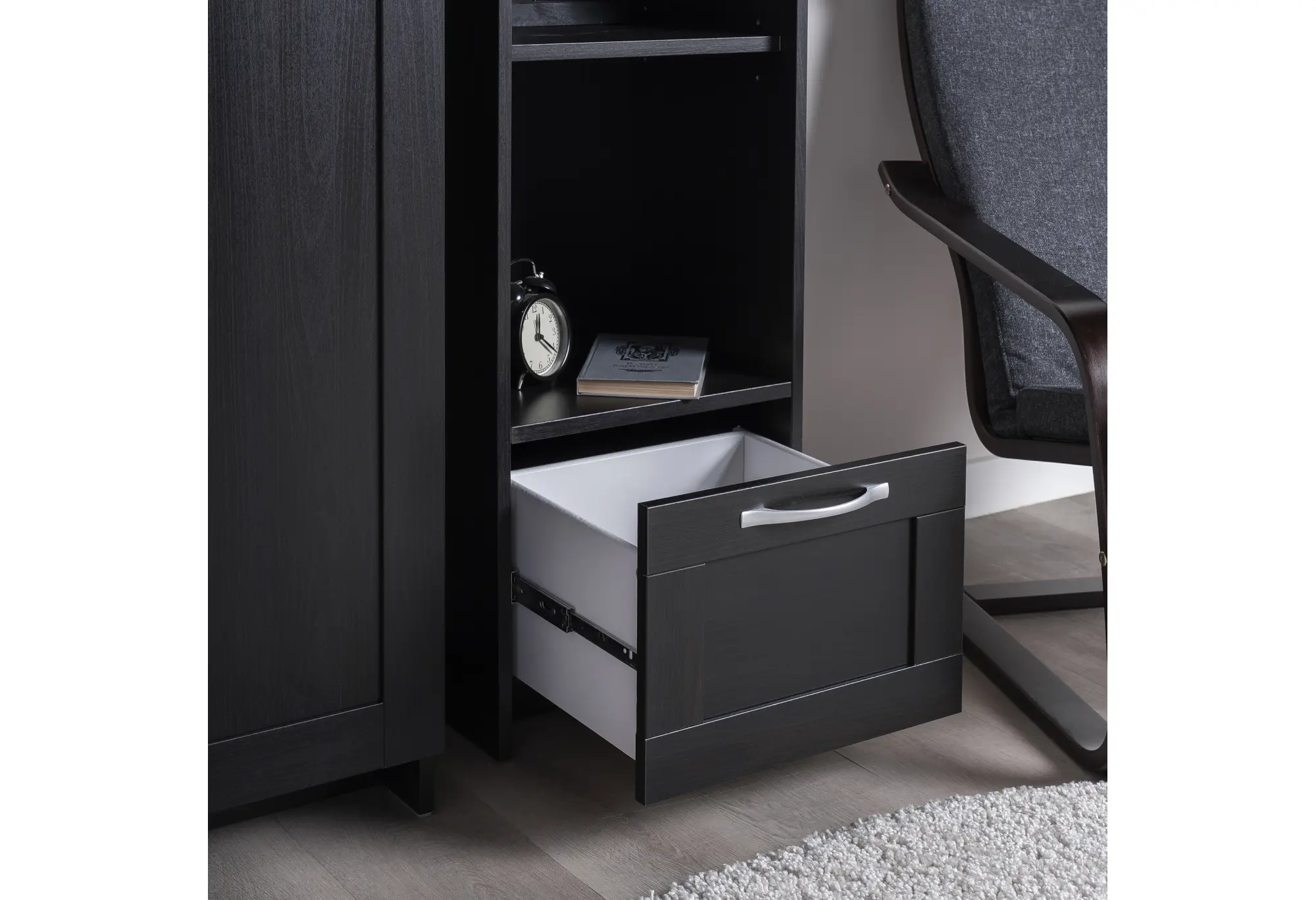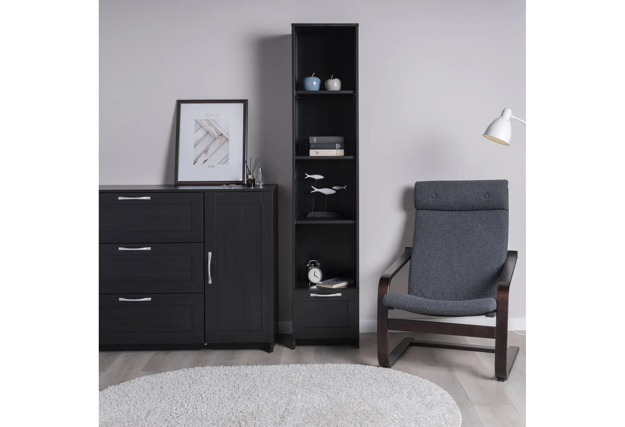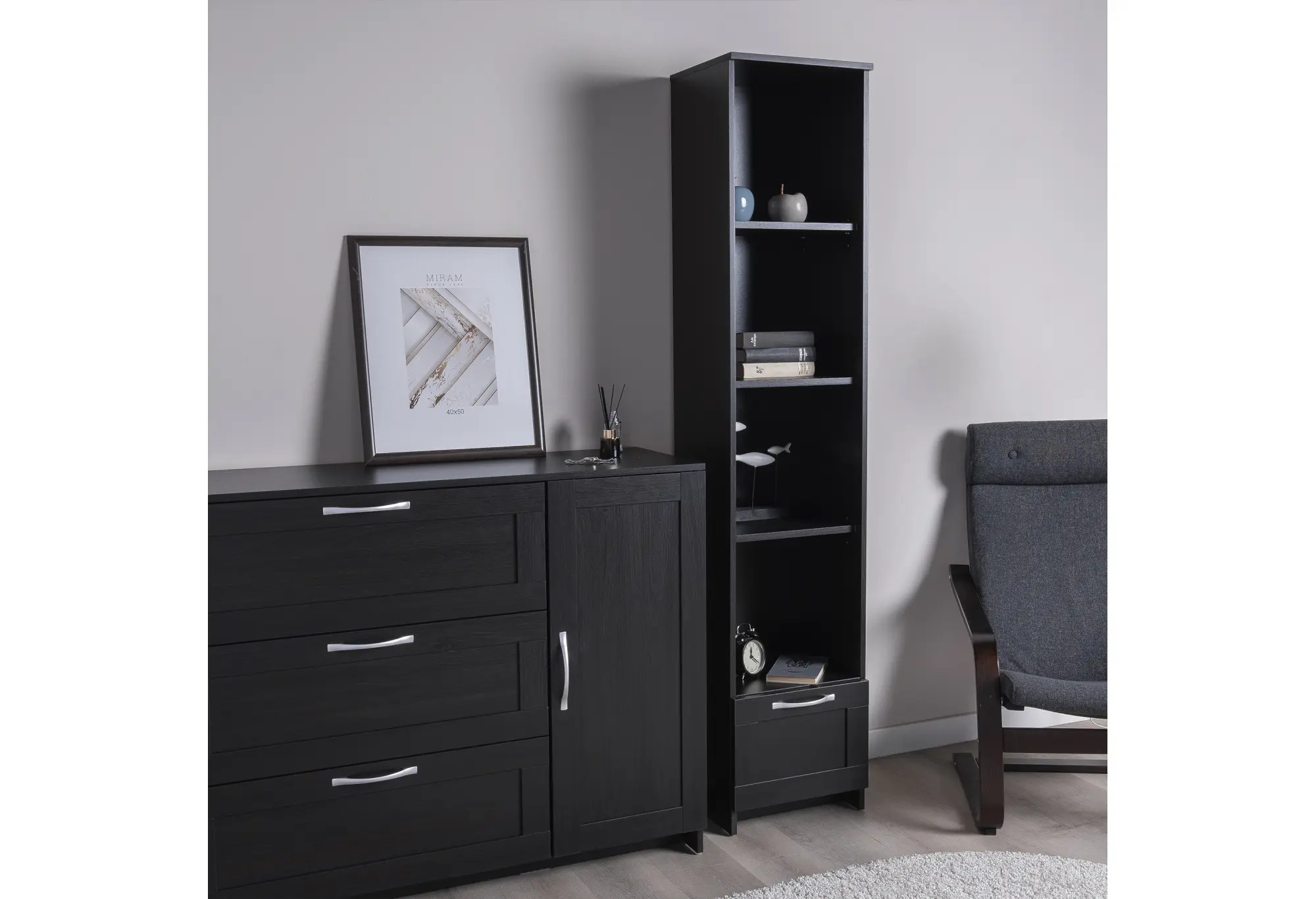Стеллаж СИРИУС узкий, с ящиком и четырьмя полками, цвет Дуб Венге