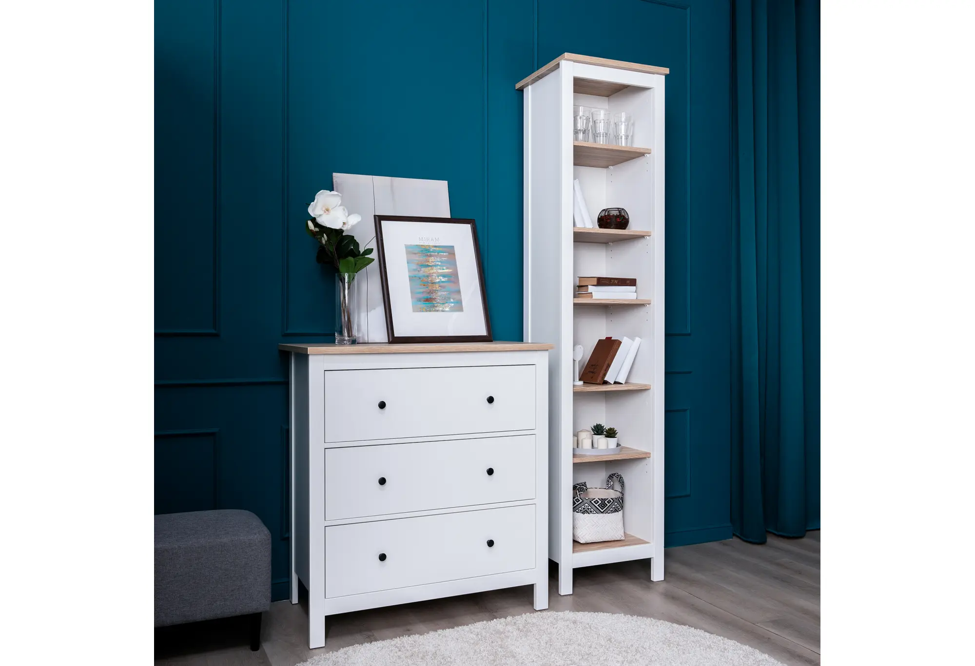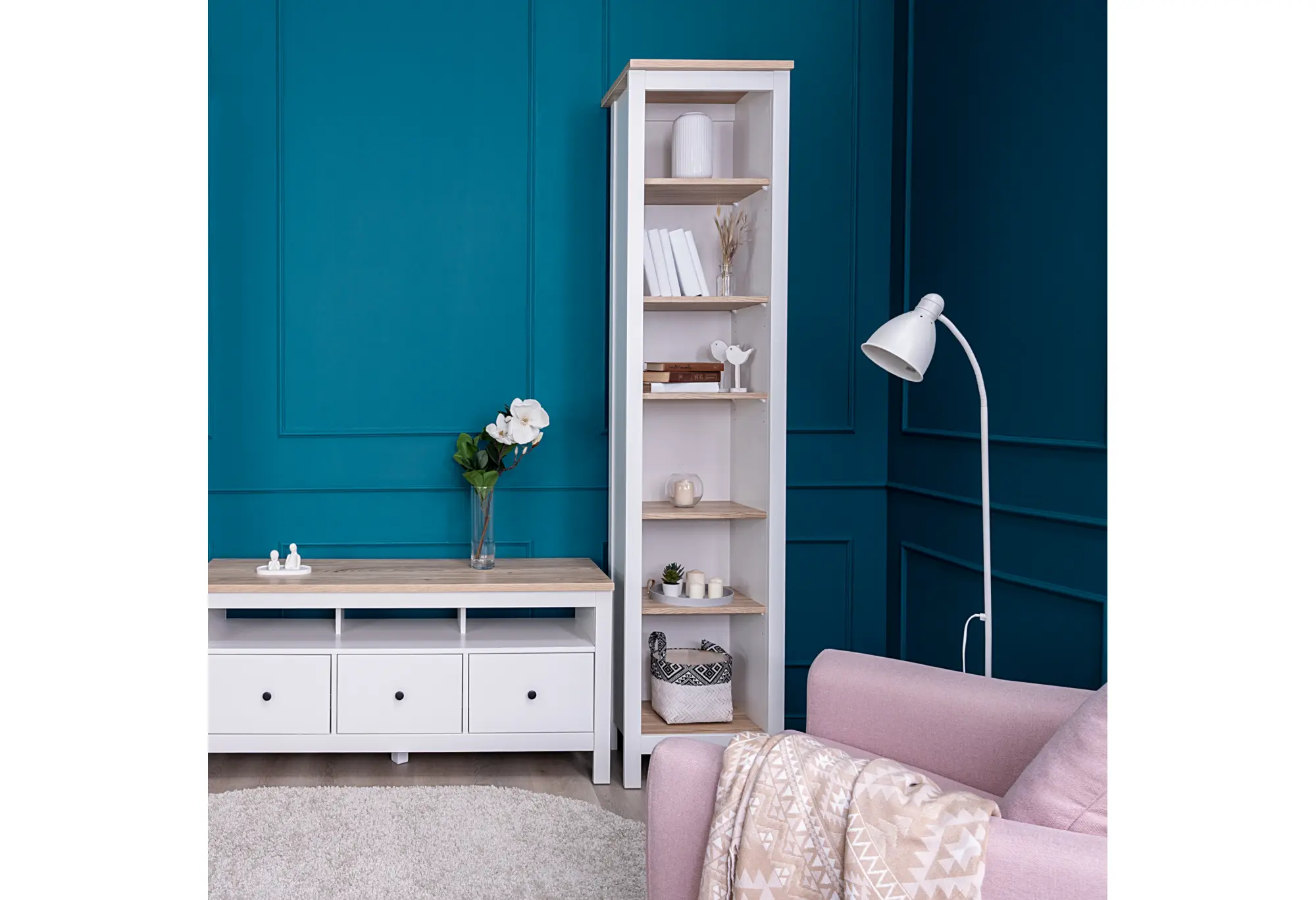 Благодаря компактной ширине стеллаж удобно ставить в узких нишах, между окнами или рядом с письменным столом. Открытая конструкция обеспечивает легкий доступ к содержимому и визуально не утяжеляет комнату, что особенно актуально для небольших помещений.