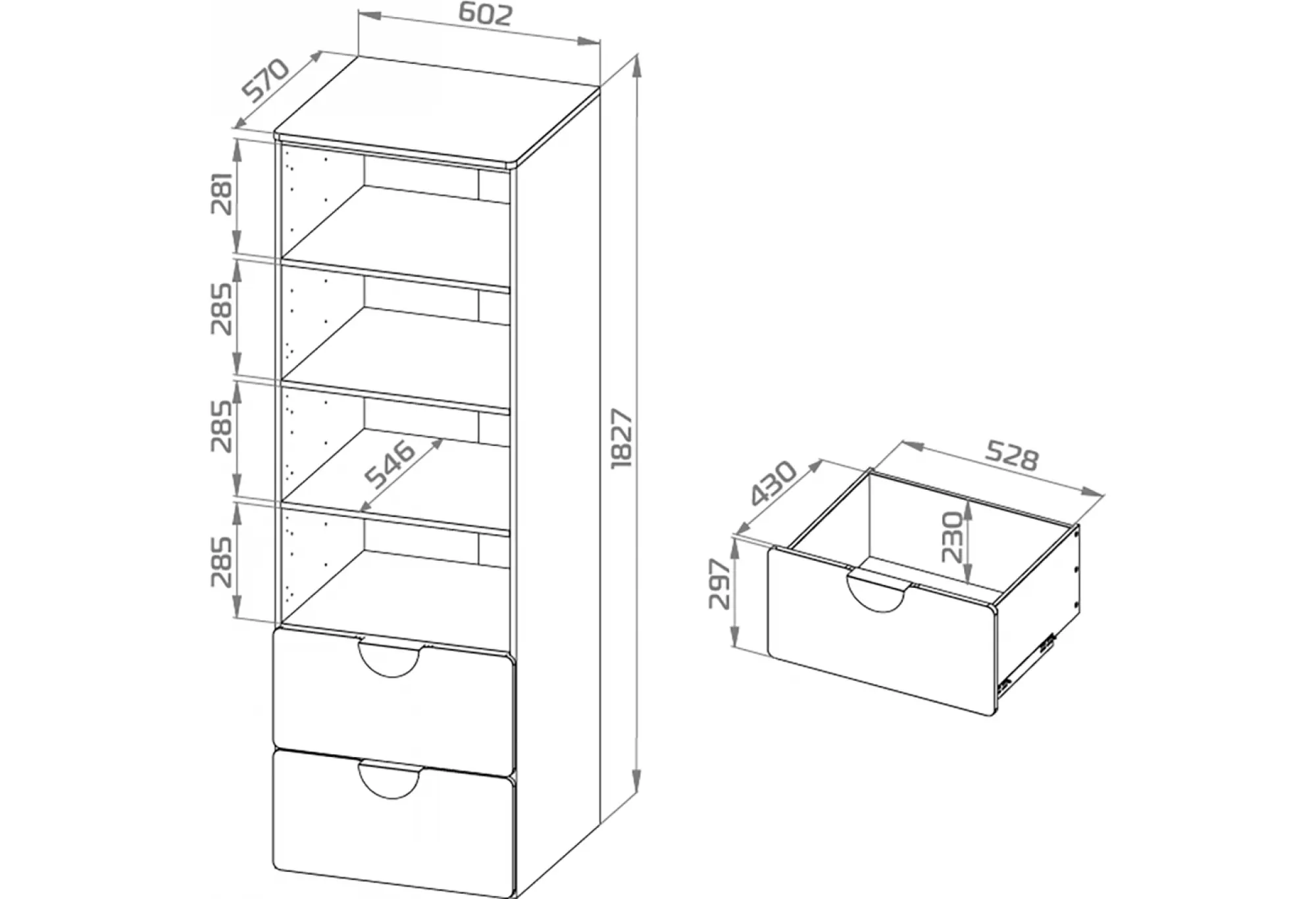S02542 ПИКСИ стеллаж с 2 ящиками 60x57x183, мечтательный пион