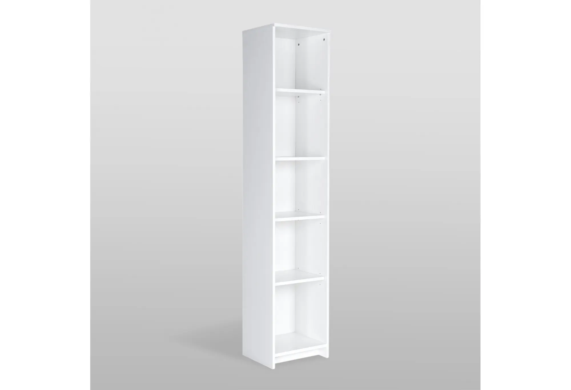 Компактный стеллаж с лаконичным дизайном и продуманной высотой 1900 мм поможет эффективно организовать хранение в любой комнате. Благодаря ширине всего 392 мм он легко помещается даже в узких зонах - в нишах, между мебелью, у стены или в небольшом коридоре. Пять открытых полок образуют удобное вертикальное хранение для книг, папок, коробок, декоративных элементов и полезных мелочей.