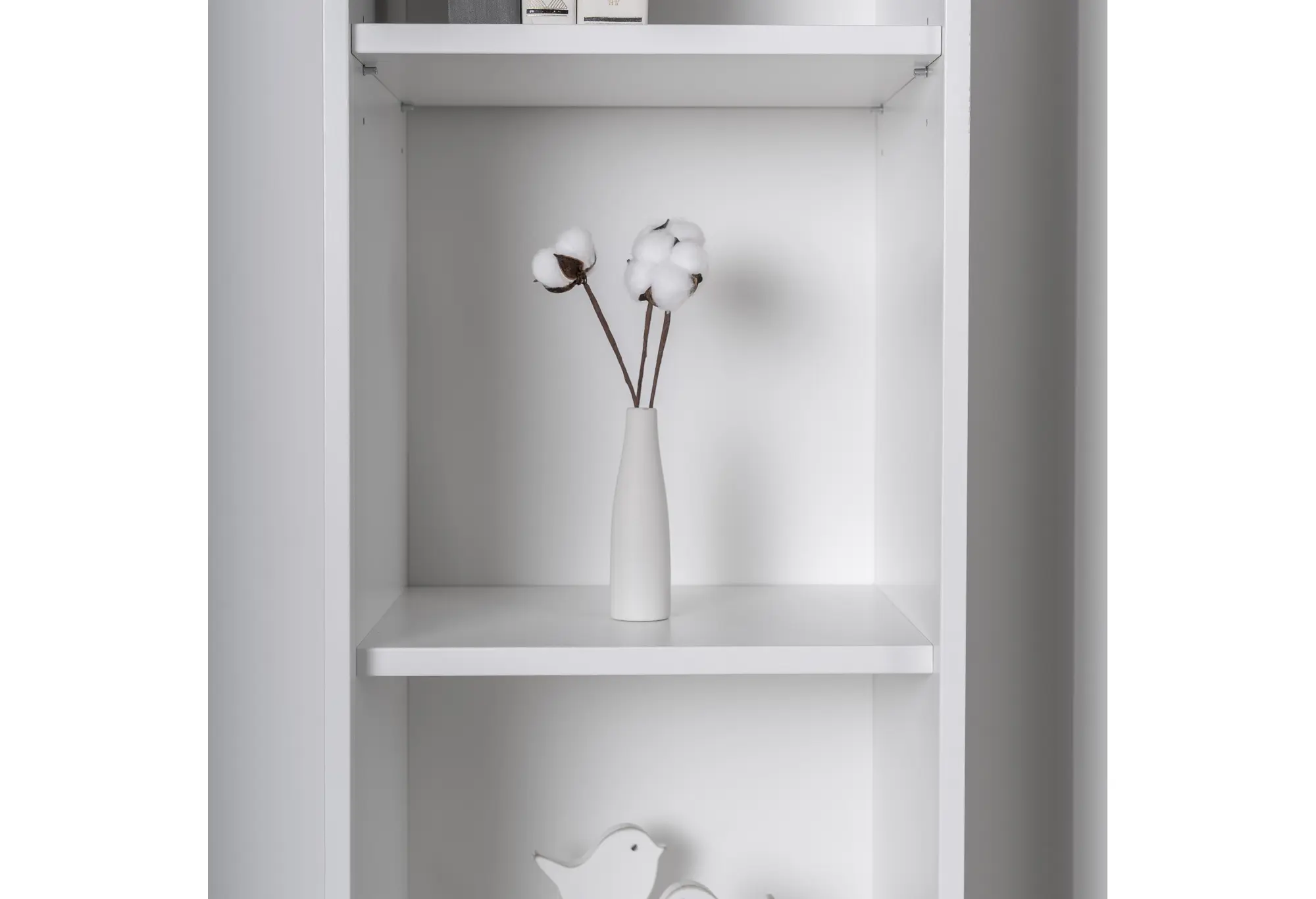 Корпус выполнен из КДСП, устойчивого к повседневным нагрузкам и простого в уходе. Допустимая нагрузка до 12 кг на каждую полку позволяет размещать достаточно тяжелые предметы без риска деформации. Открытая конструкция обеспечивает быстрый доступ к содержимому и визуально не перегружает пространство.