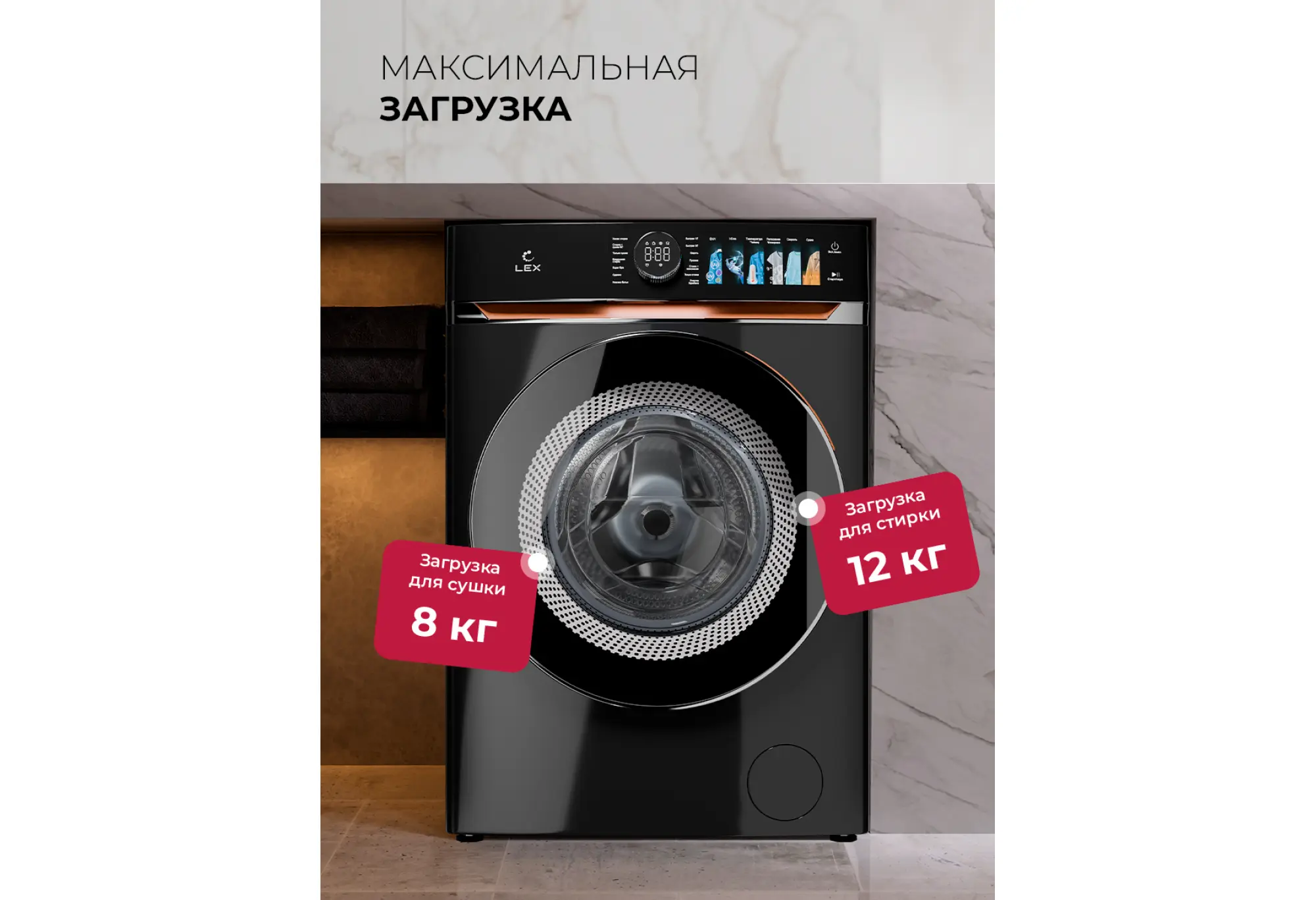 Модель LEX LWM12812 Lux — это отдельностоящая стирально-сушильная машина с сенсорным управлением и премиальным дизайном, доступная в черном и белом цветах. Важные преимущества:14+ программ стирки:А дополнительные функции (обработка ультрафиолетом, дополнительное полоскание и др.) помогут справиться с любым загрязнением и при этом сохранить ваше бельё на долгие годы.