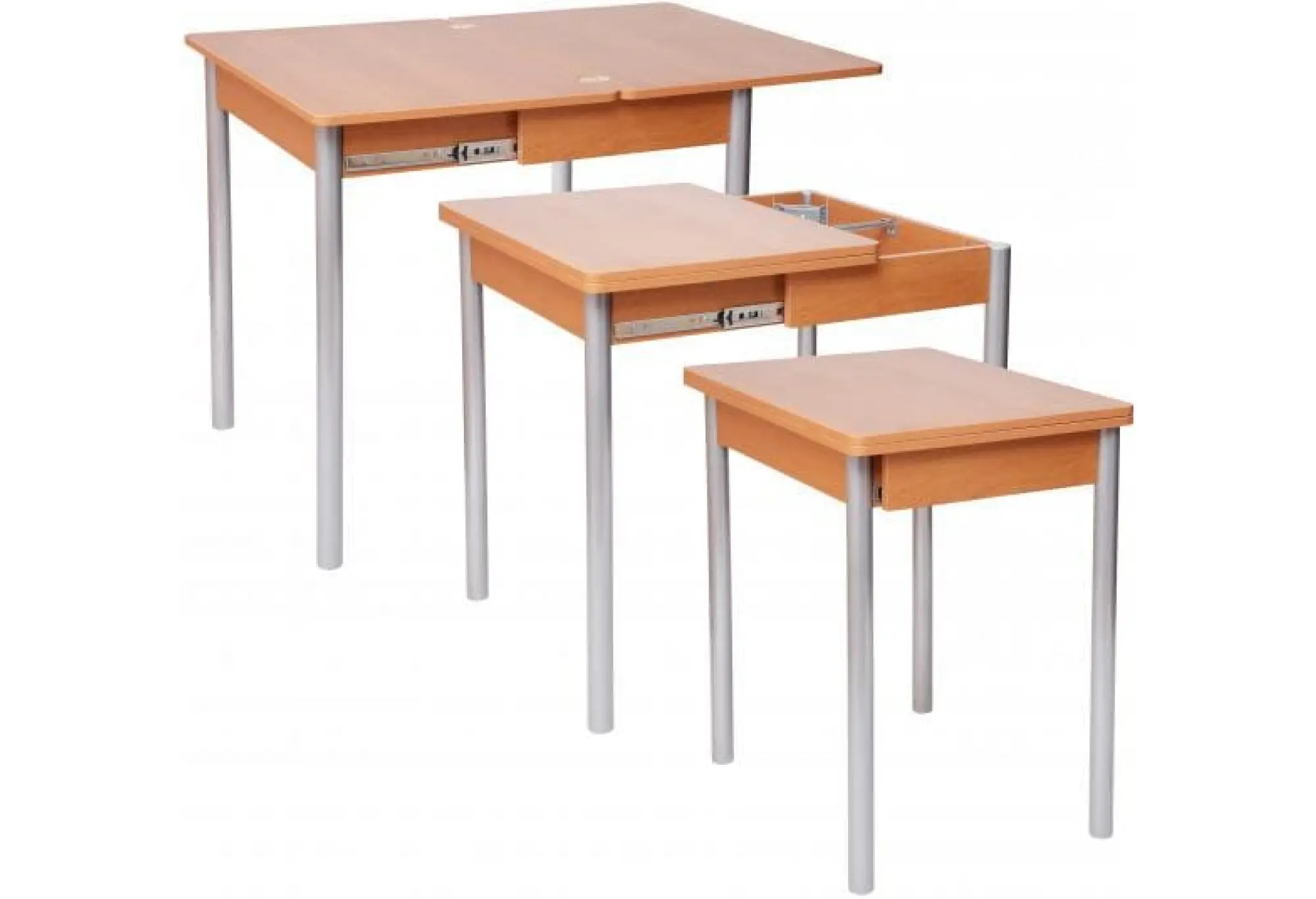 Стол с механизмом трансформации. Название этого стола говорит само за себя - компактный и современный, он создан для людей, ценящих своё жизненное пространство и функциональность: с помощью оригинального механизма трансформации его длина увеличивается в 2 раза. Раскладной стол – находка для маленькой кухни!
