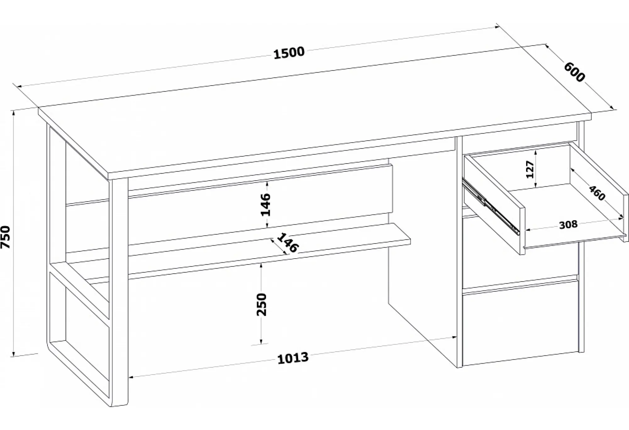 Дополнительные параметры: материал столешницы: ЛДСП 22 мм, ПВХ 2 мм, материал остальных деталей: ЛДСП 16 мм, кромка ПВХ 0,4 мм, направляющие шариковые полного выдвижения 450 мм, универсальная сборка: тумба располагается слева или справа