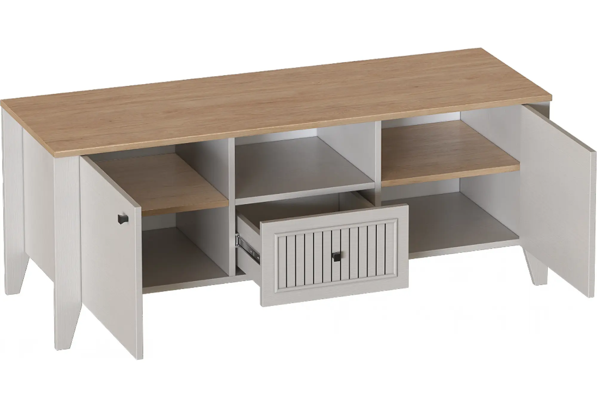 Тумба ТВ "Валенсия" выполнена в комбинации Дуб натуральный светлый / Персидский жемчуг и оснащена одним ящиком на шариковых направляющих (без амортизаторов). . Она выполнен из безопасных, качественных материалов, что гарантирует долговечность и сохранение первоначального вида на протяжении долгого времени.