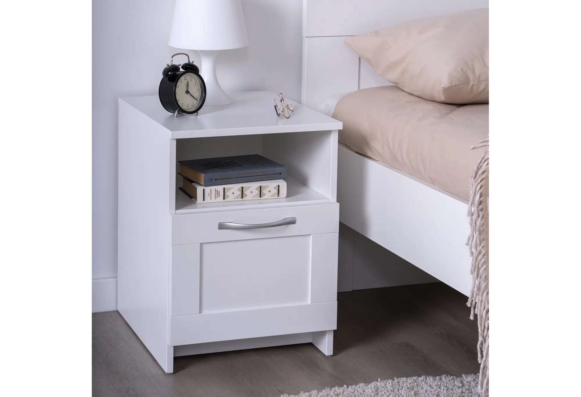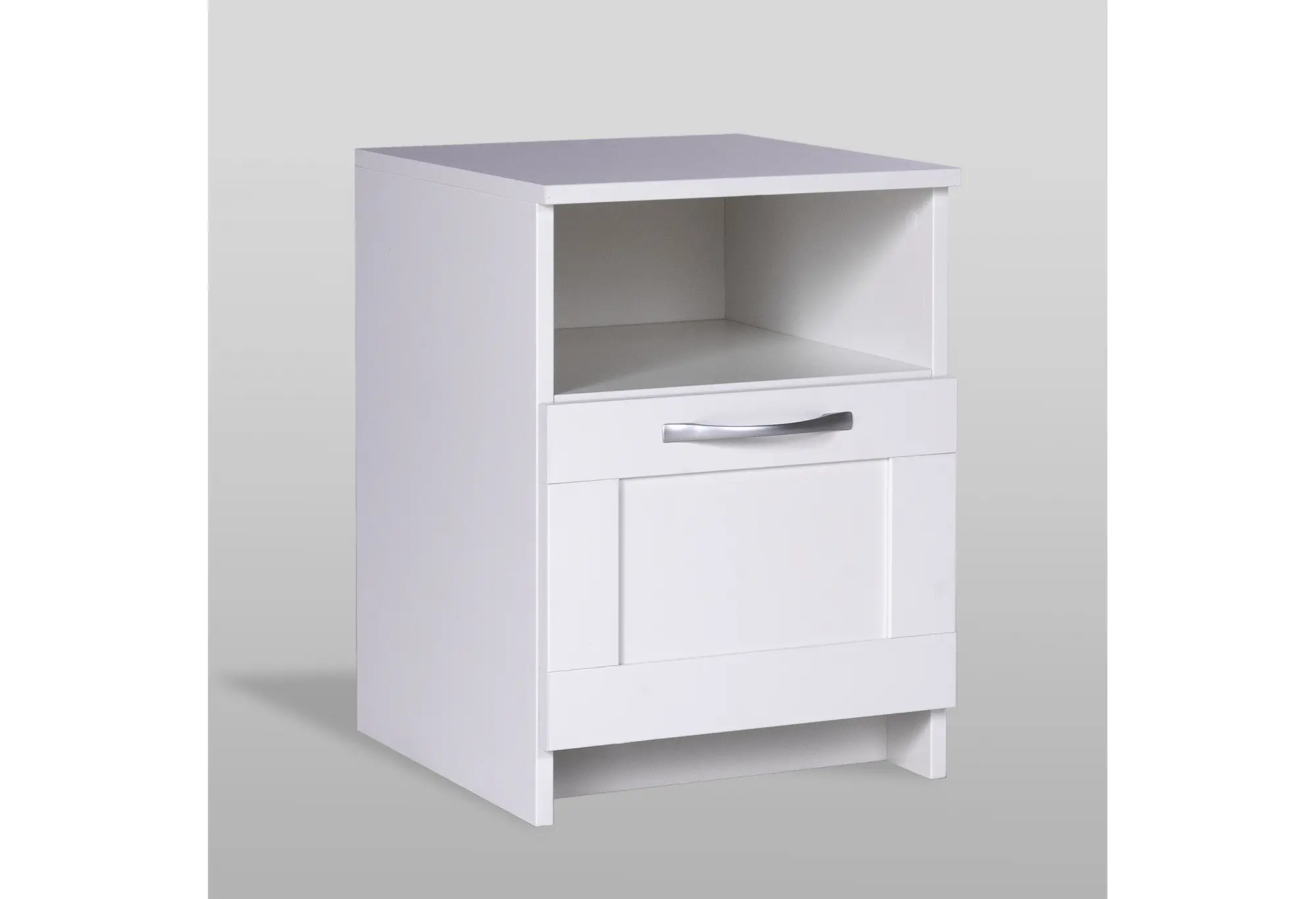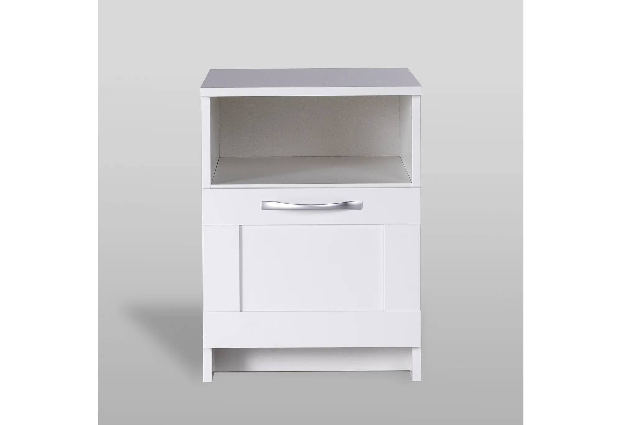 Тумба включает открытую нишу и выдвижной ящик. В нише удобно хранить книги, гаджеты, зарядные устройства или предметы, к которым нужен быстрый доступ. Ящик рассчитан на нагрузку до 8 кг — этого достаточно для белья, документов, аксессуаров и других бытовых мелочей. Шариковые направляющие обеспечивают плавное и тихое выдвижение, облегчая ежедневное использование.