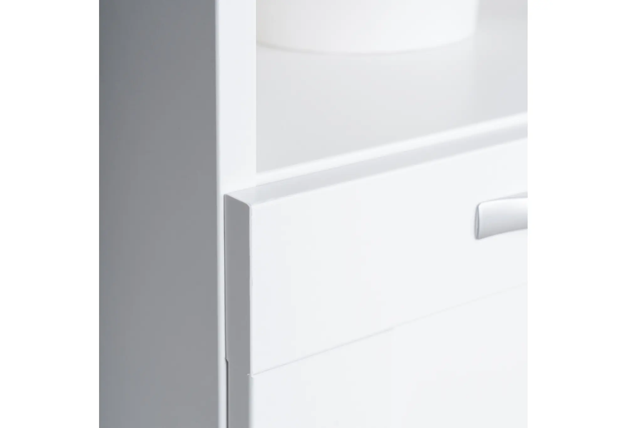Корпус выполнен из КДСП, устойчивой к повседневным нагрузкам и несложной в уходе. Поверхность легко протереть влажной салфеткой. Универсальный белый цвет визуально облегчает интерьер и хорошо сочетается с современной, скандинавской и минималистичной обстановкой.
