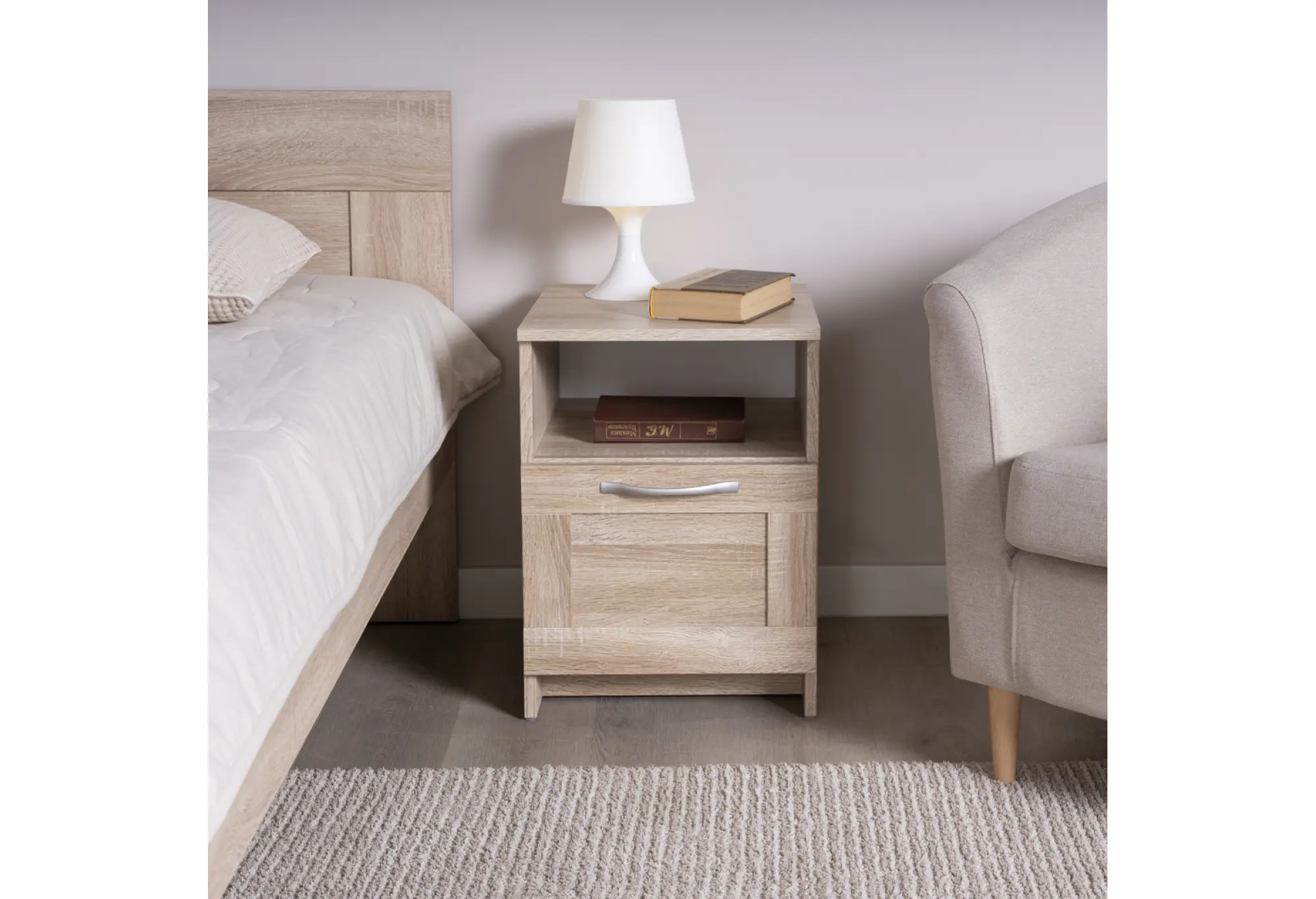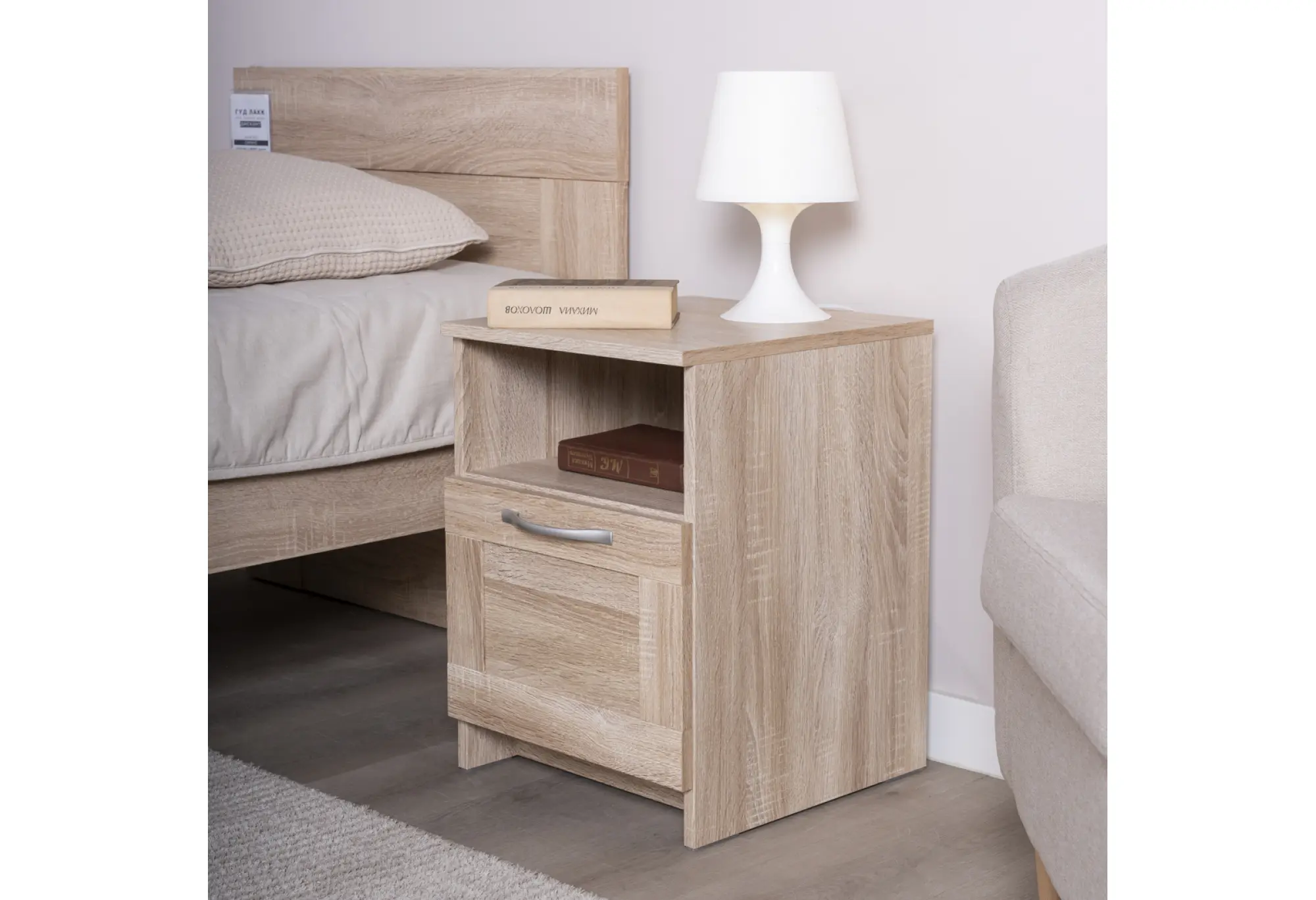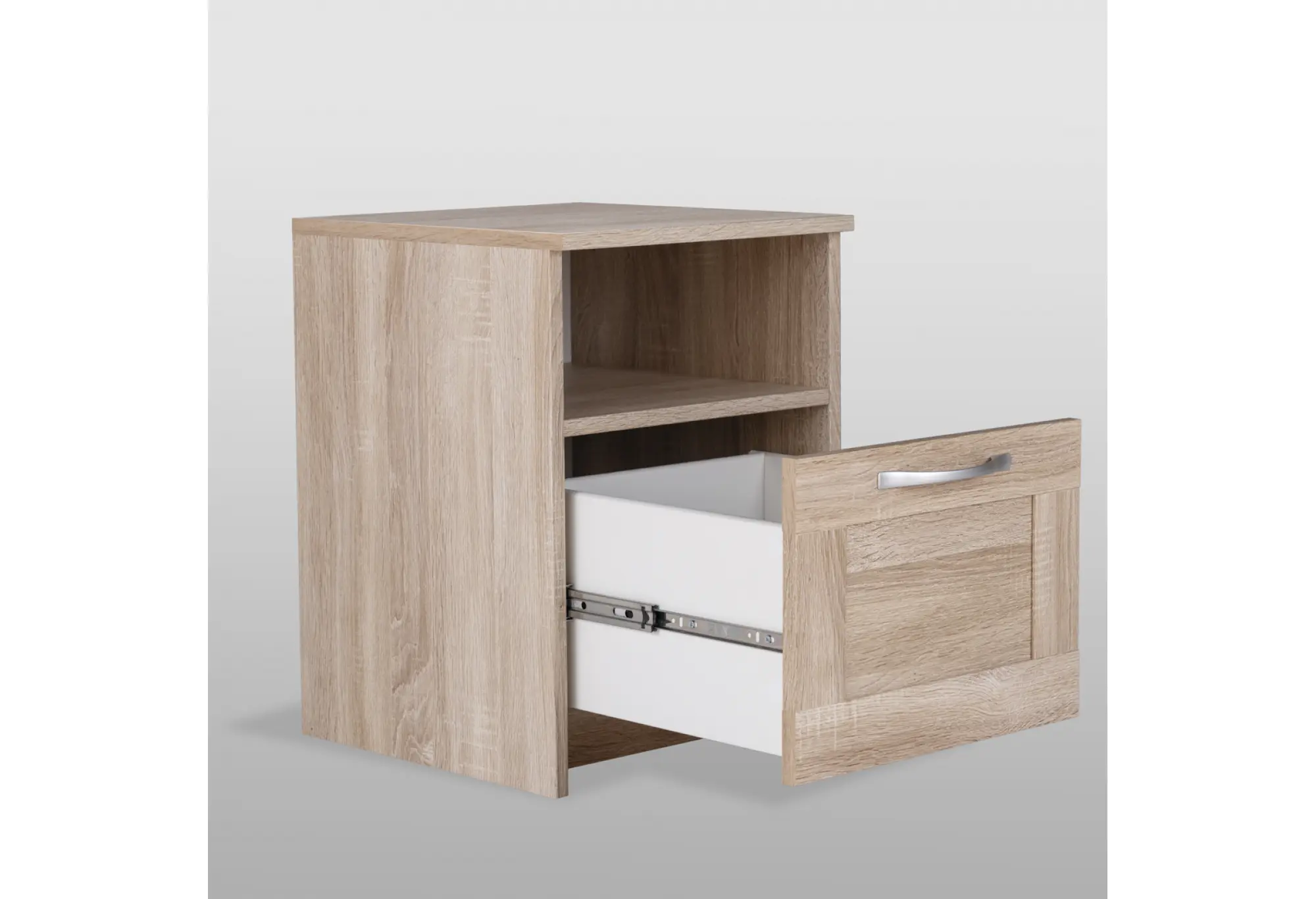 Компактная тумба «Сириус» в цвете дуб сонома станет практичным дополнением к спальне, гостиной или домашнему кабинету. Нейтральный древесный оттенок легко сочетается с современной и классической мебелью, не перегружая пространство и создавая аккуратный, собранный интерьер.