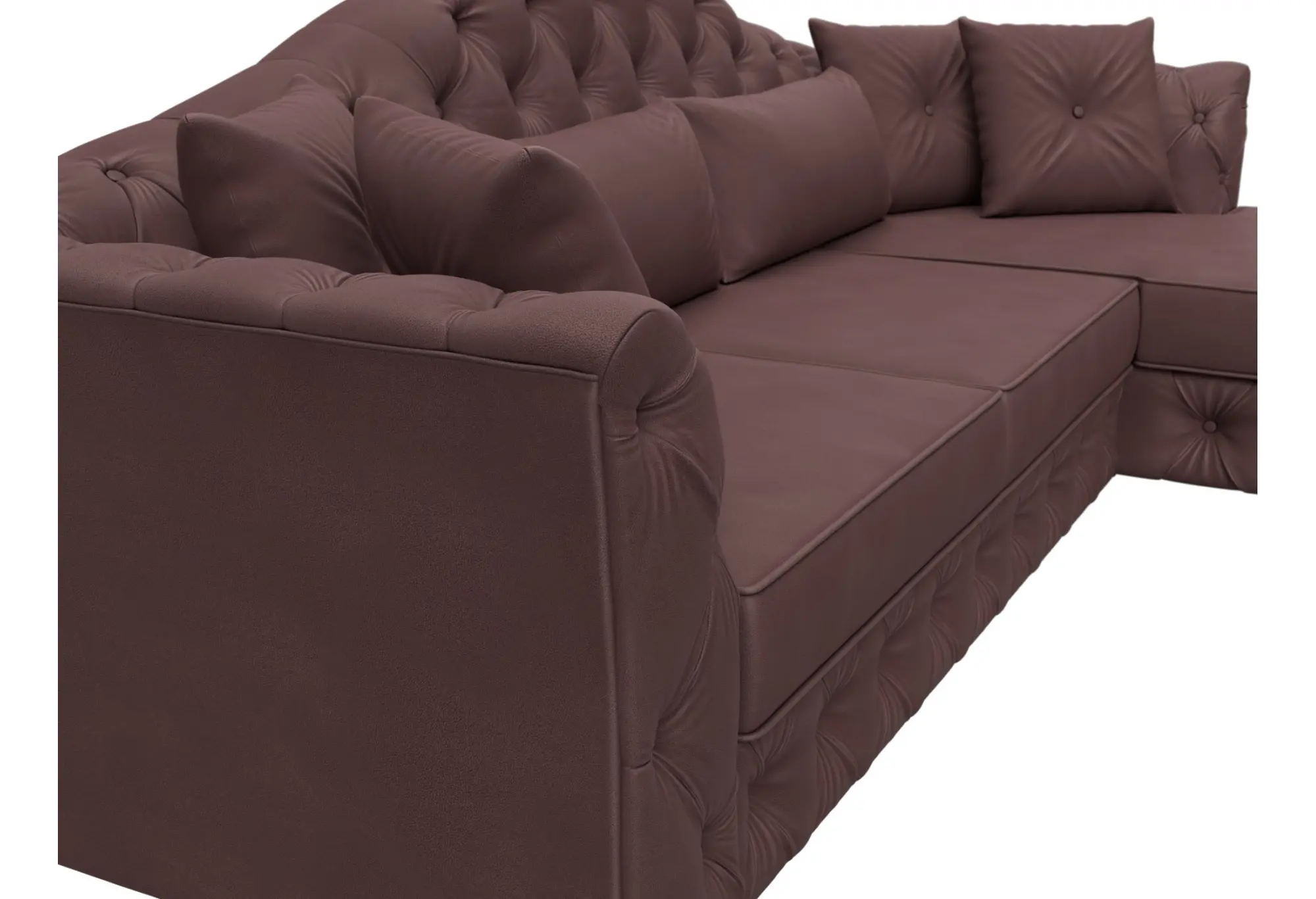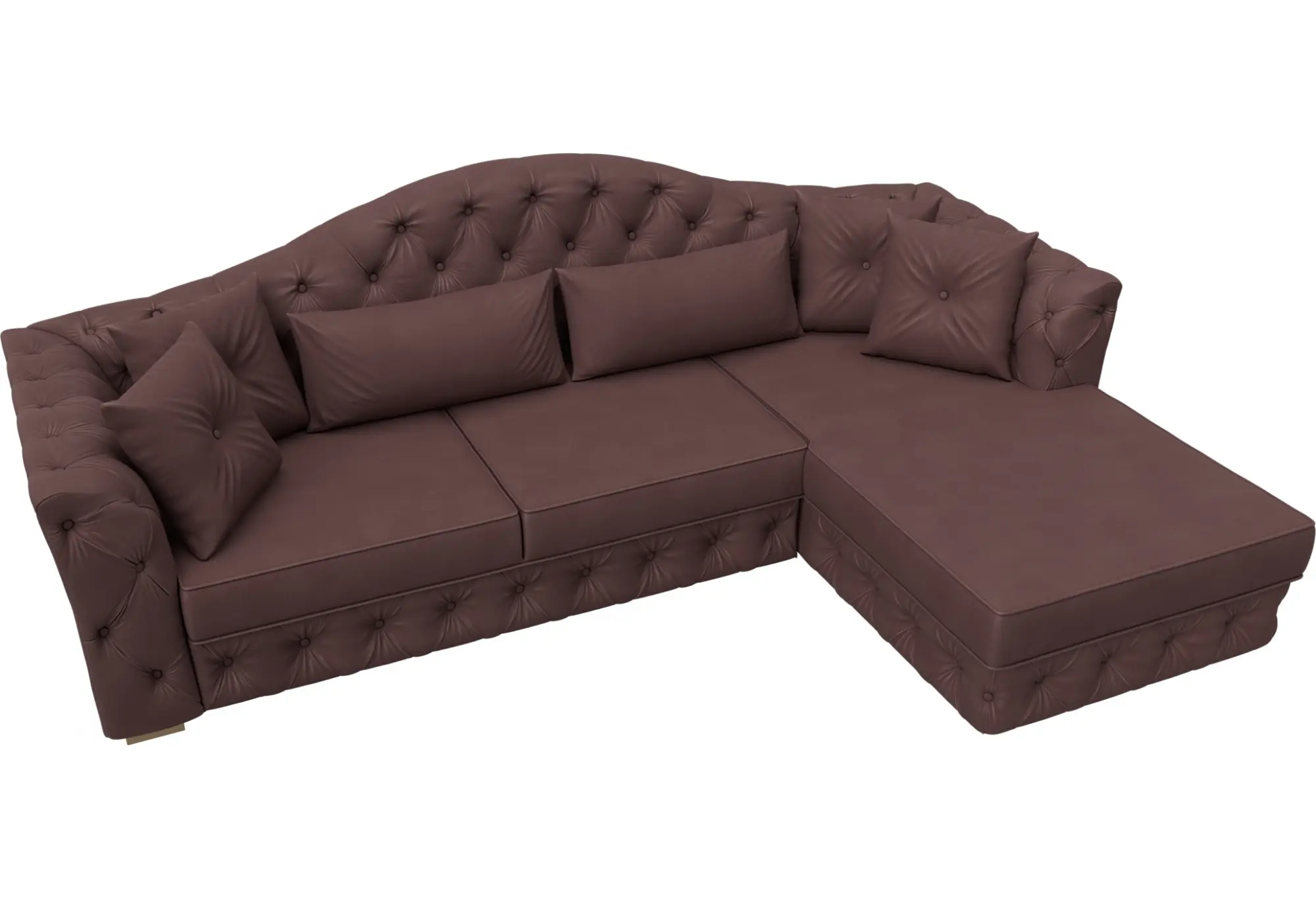 Изысканный угловой диван Артис с правым углом в цвете JOLY 09 – это стильное и функциональное дополнение для вашей гостиной. Обитый мягкой замшей бордового оттенка, он привлекает внимание элегантной каретной стяжкой на спинке и декоративными подушками в комплекте.