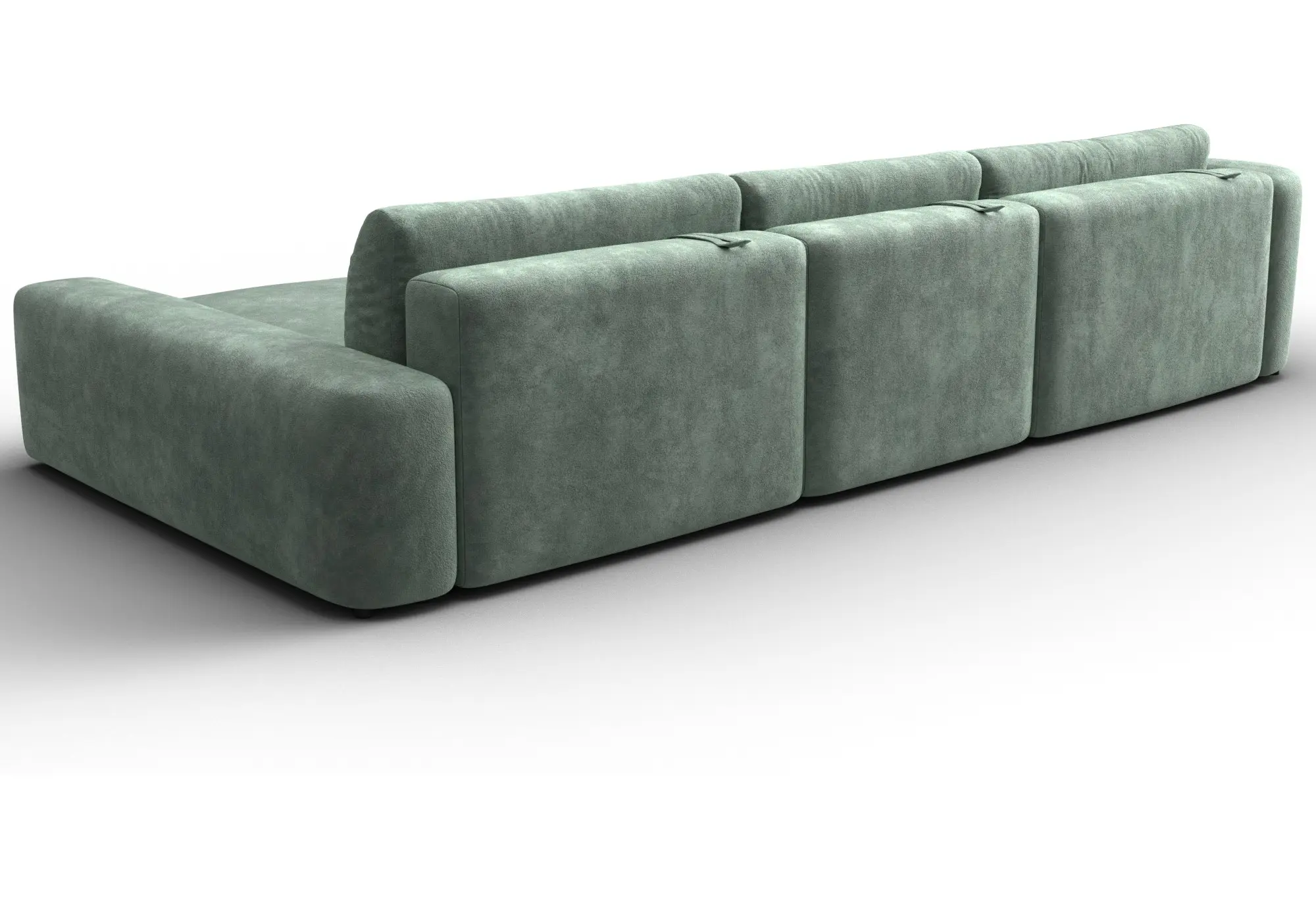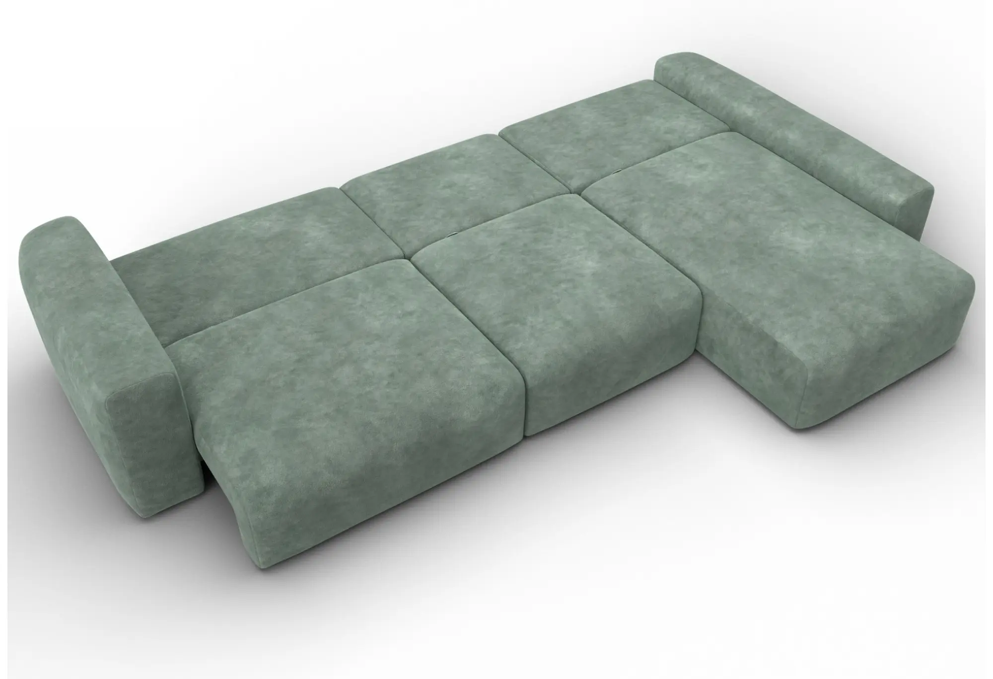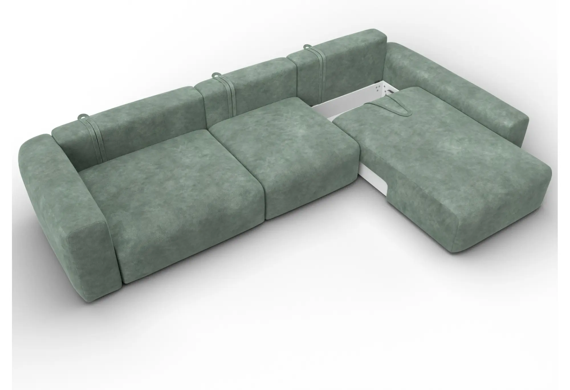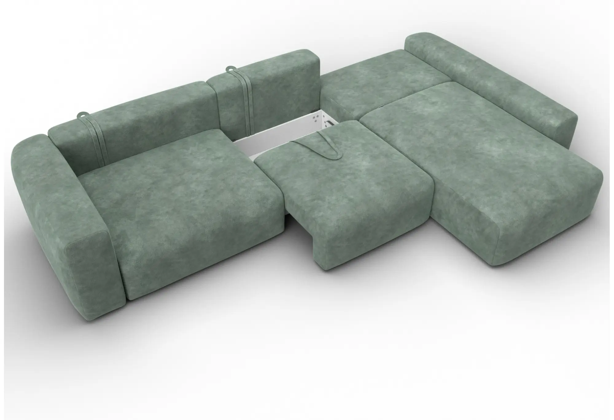 Угловой диван Лига-066 Лонг — это сочетание современного стиля и высокой функциональности. Его лаконичный дизайн в зеленом велюре легко впишется в любой интерьер, добавляя уют и атмосферу элегантности. Встроенный механизм "Еврокнижка" позволяет быстро трансформировать его в просторную кровать размером 2220x1600 мм, обеспечивая комфортный отдых для двоих.