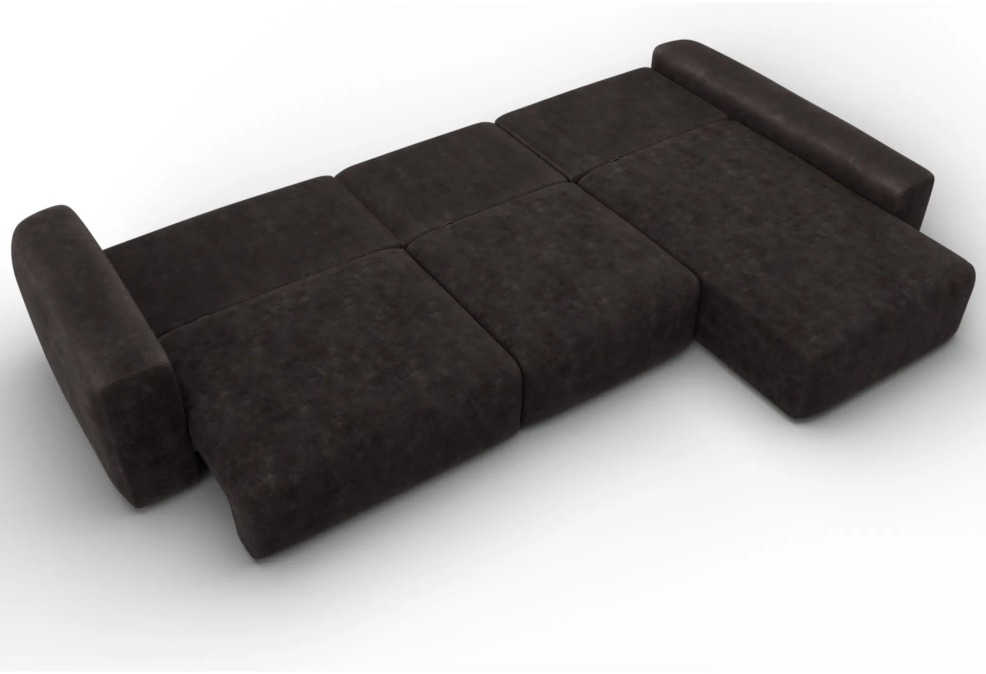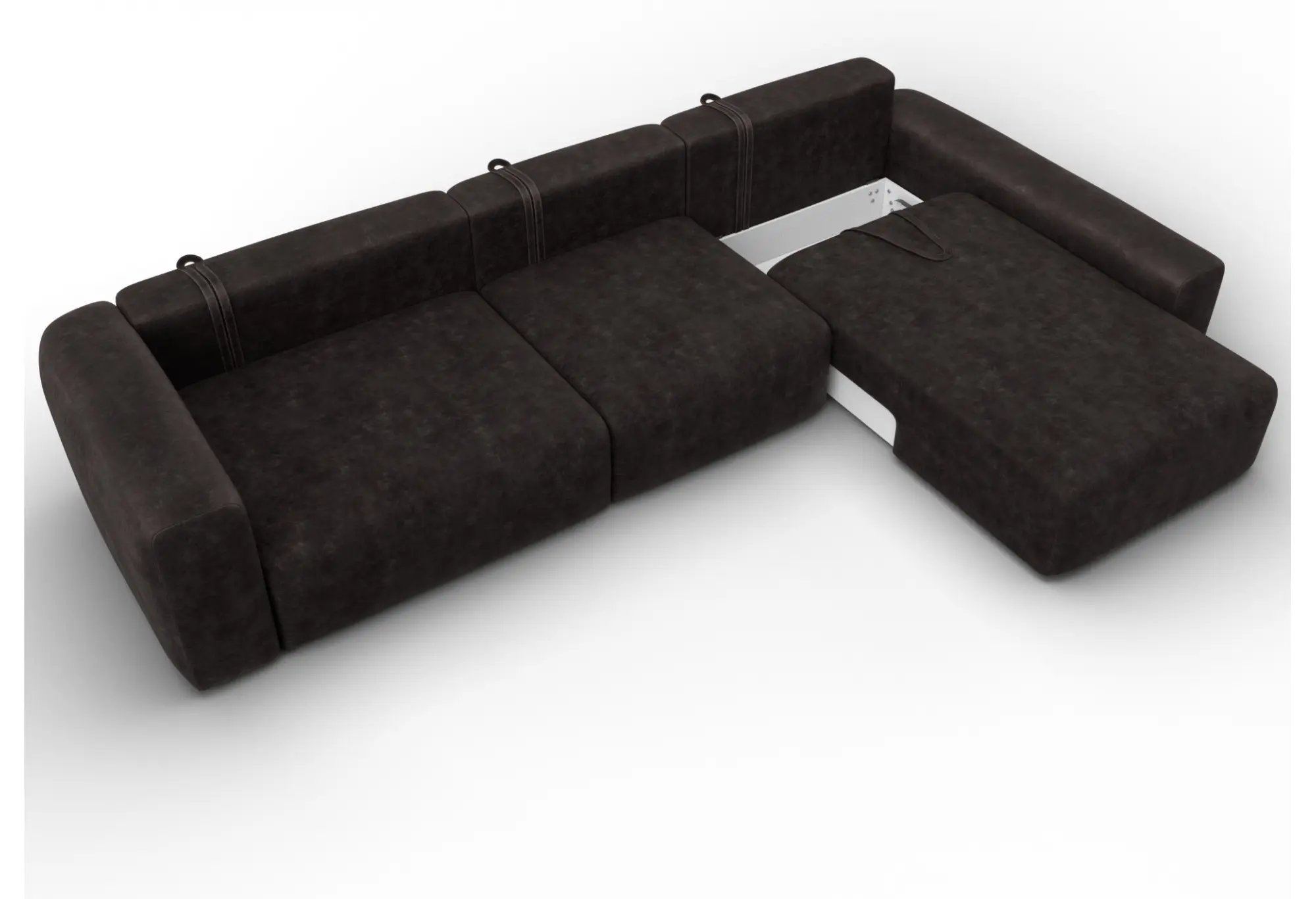 Угловой диван Лига-066 Лонг – гармоничное сочетание современного стиля и практичности. Модель с правым углом выполнена в изысканном коричневом велюре и моментально преобразует любой интерьер гостиной. Великолепный механизм трансформации "Еврокнижка" позволяет без усилий превратить диван в просторное спальное место размером 2220x1600 мм.