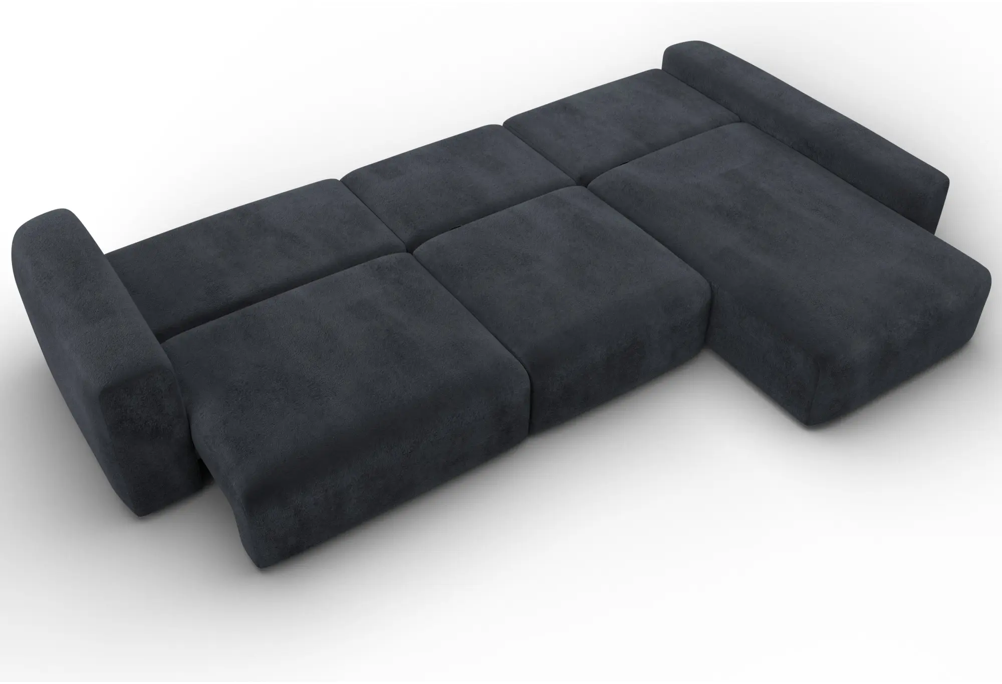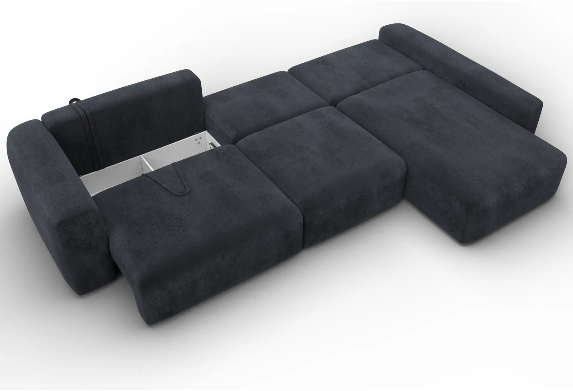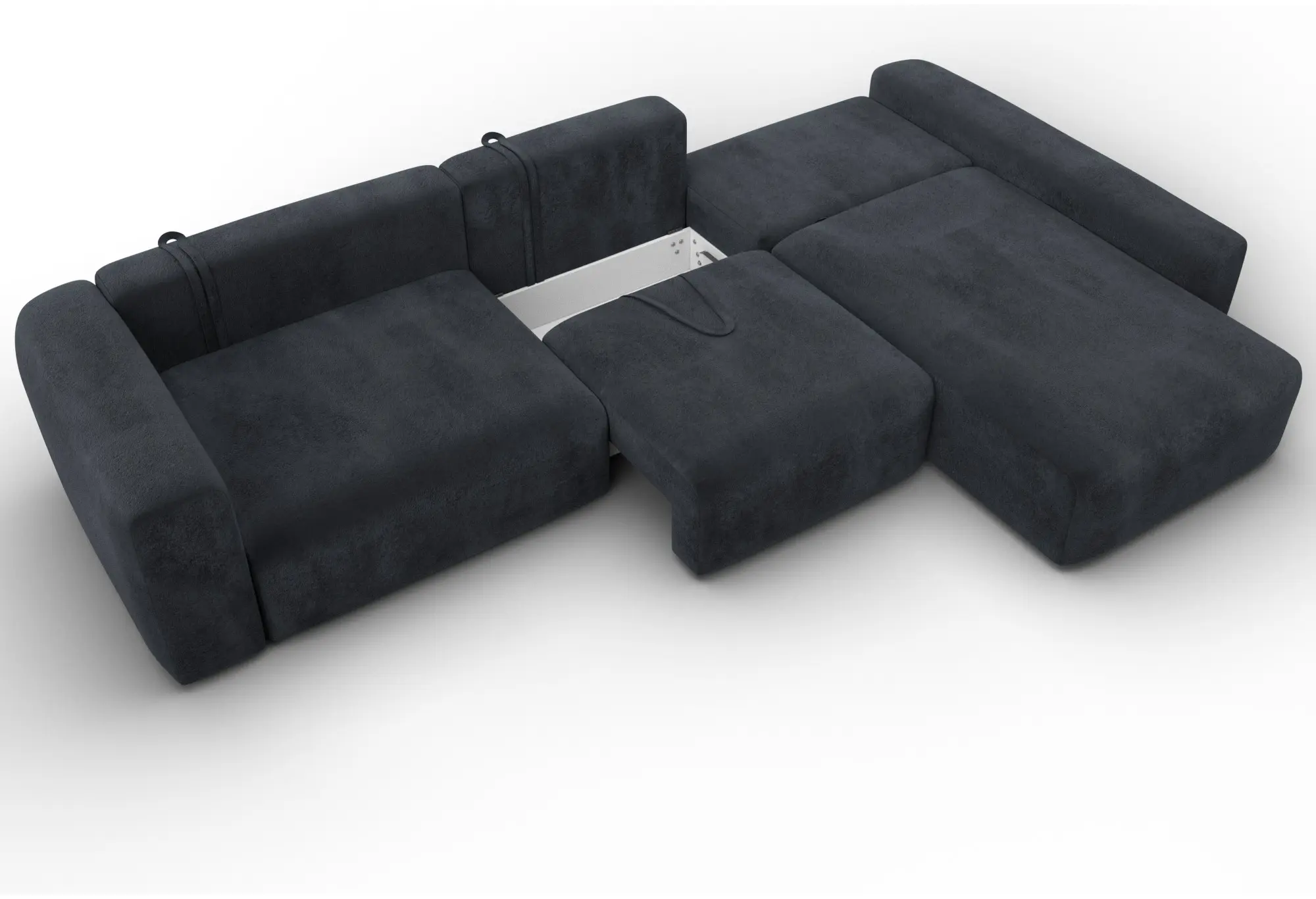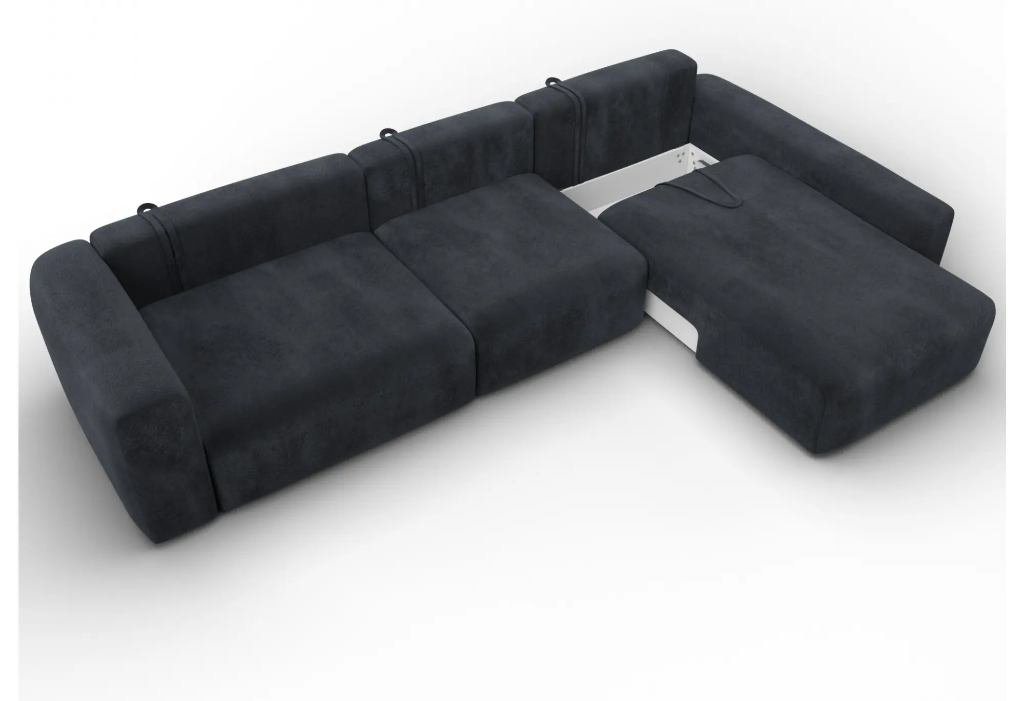 Угловой диван Лига-066 Лонг предлагает изысканную комбинацию современного дизайна и практичности. Его стильный вид в темно-сером велюре идеально вписывается в любой интерьер, добавляя уют и элегантность. Способность трансформироваться в просторное спальное место размером 2220x1600 мм делает его отличным решением для гостей или повседневного использования.