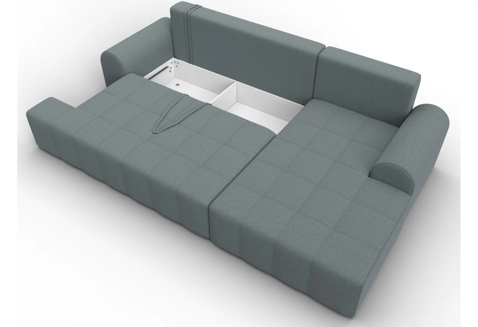 Еврокнижковый механизм раскладки позволяет быстро превратить диван в удобное спальное место размером 1460х2100 мм. Утолщенные подлокотники добавляют комфорта, а съемные подушки позволяют адаптировать пространство по вашему вкусу. Просторные ящики под сиденьями предоставляют дополнительное место для хранения постельных принадлежностей.