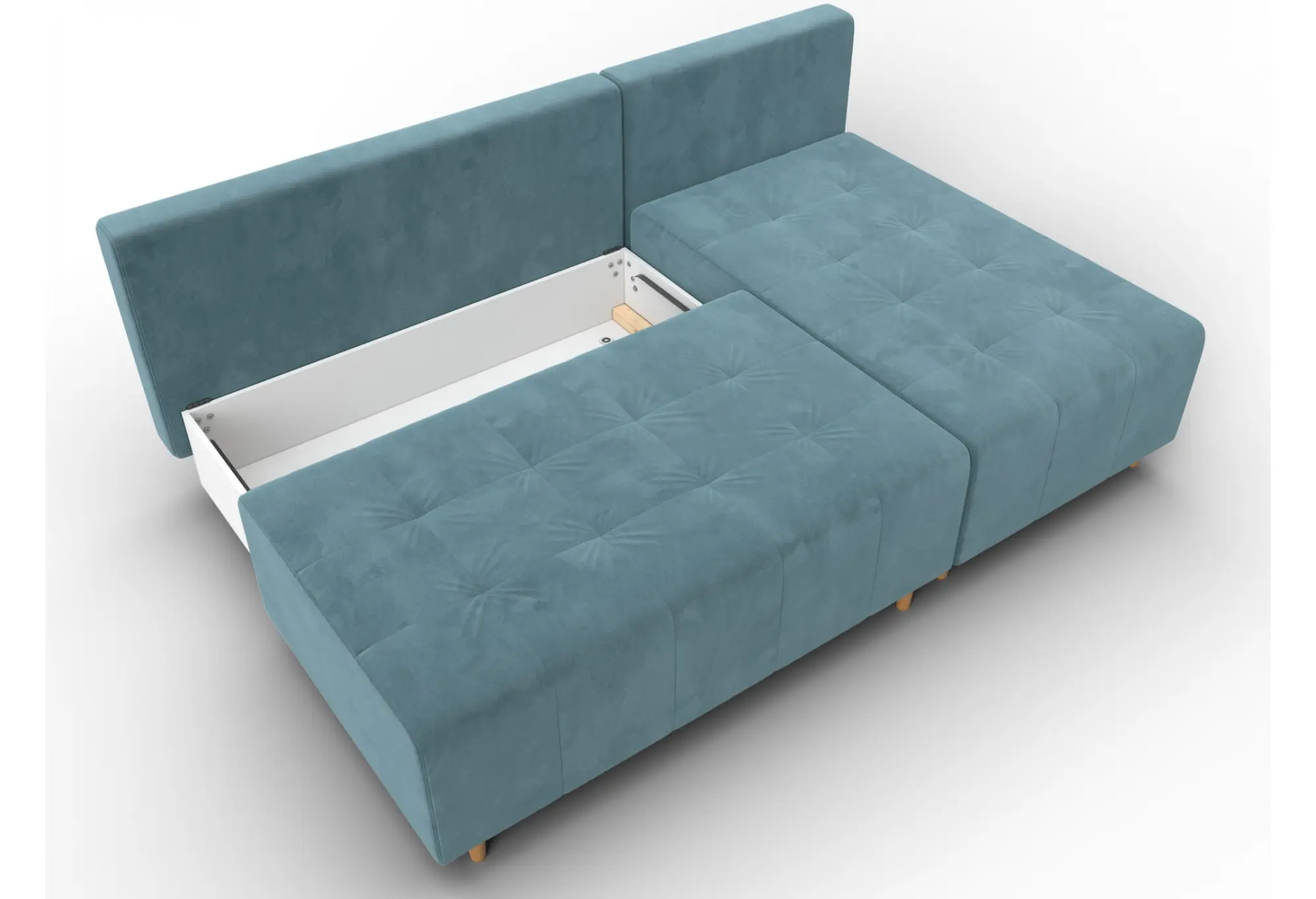 Просторный ящик для хранения белья экономит пространство и помогает поддерживать порядок. Универсальный дизайн позволяет собрать диван с углом как справа, так и слева, что делает его подходящим для любого интерьера.