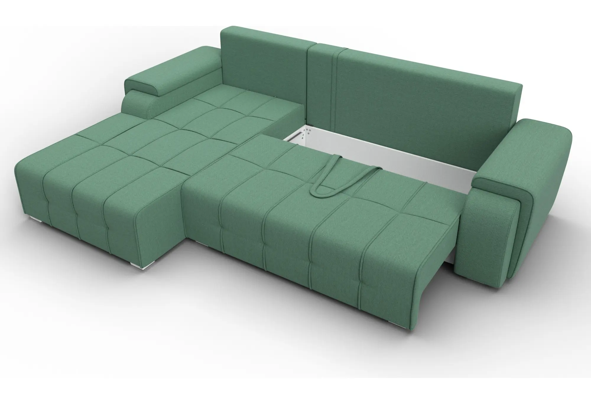 Диван угловой Лига-121 левый угол Амур 11 зеленый (Рогожка)