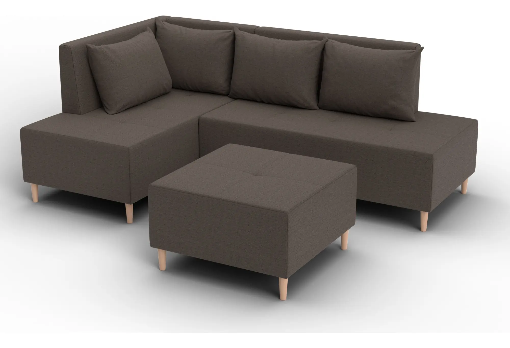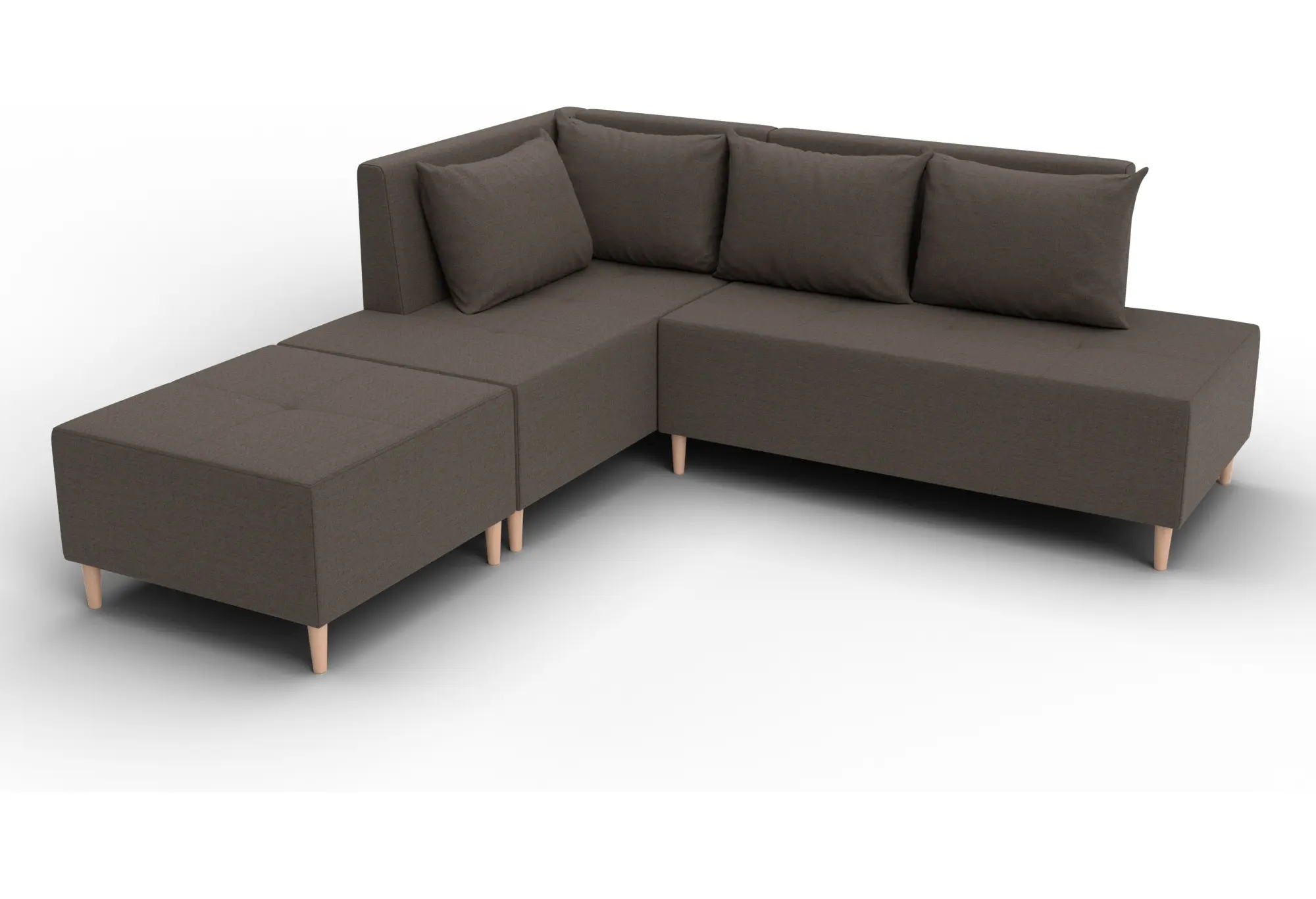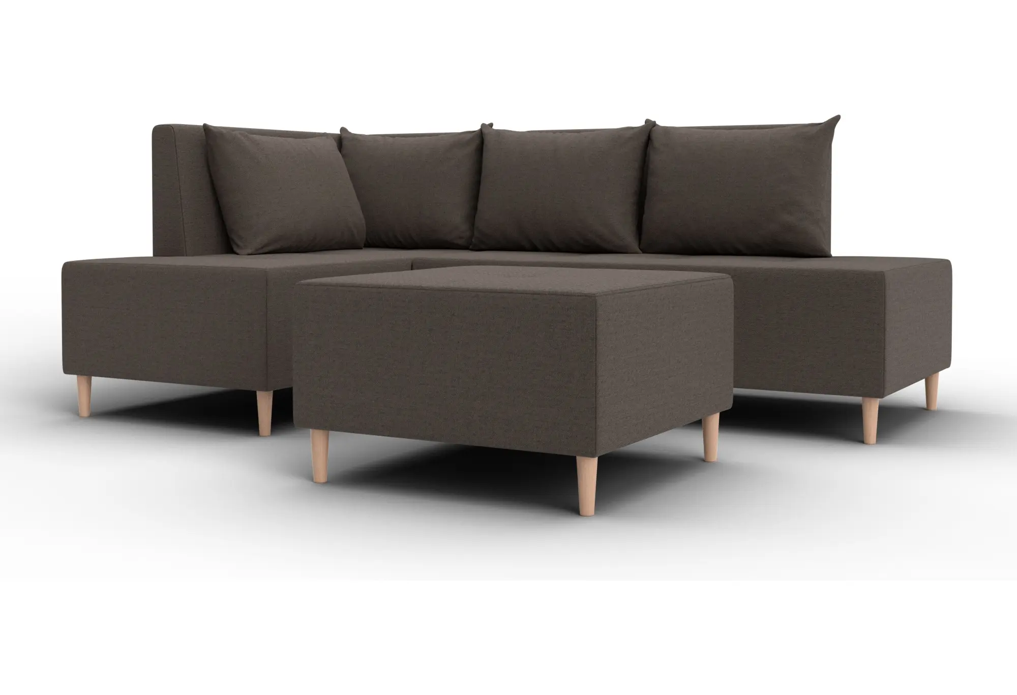 Диван угловой модульный с пуфом Лига-126 угол левый Амур 05 коричневый (Рогожка)