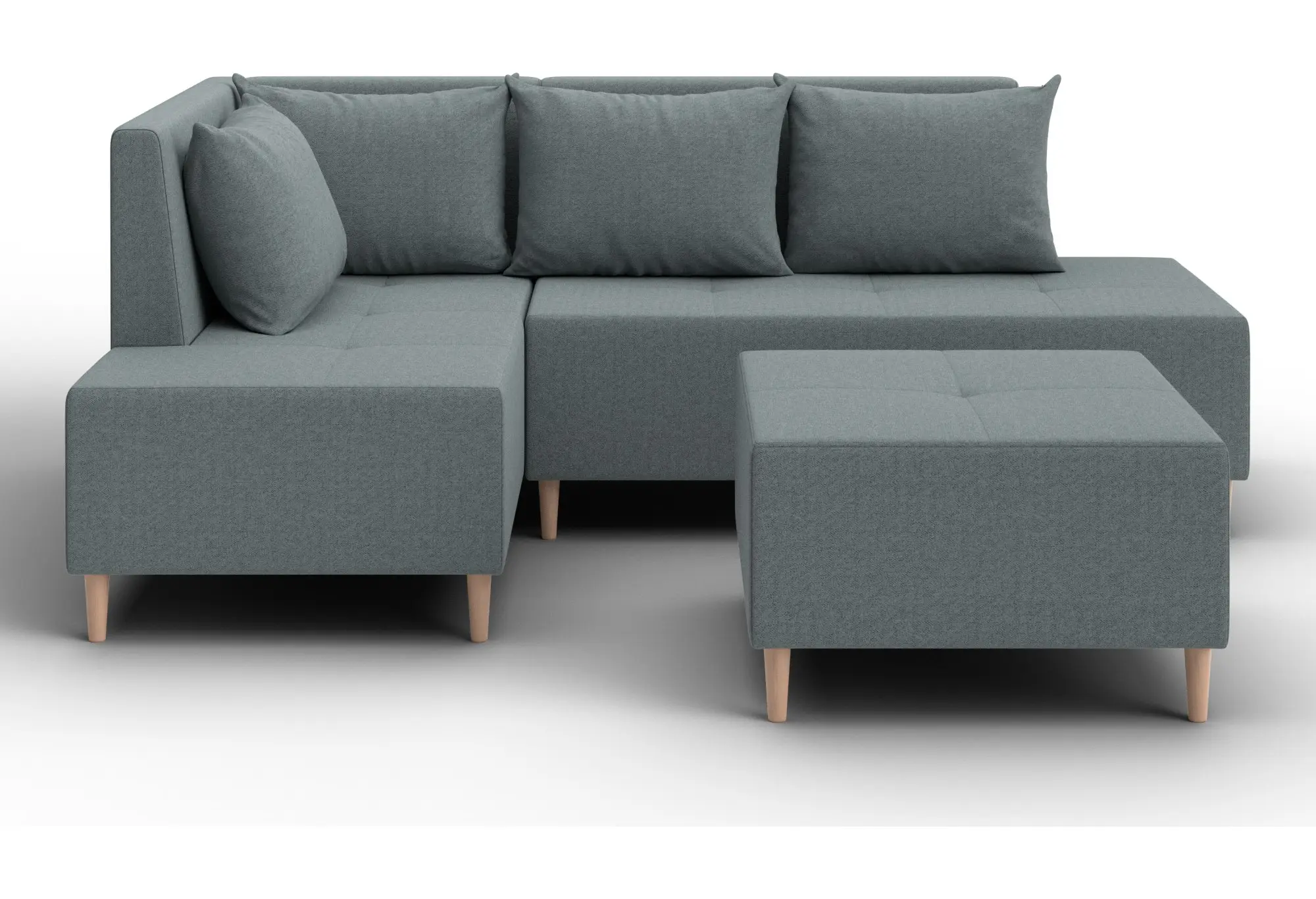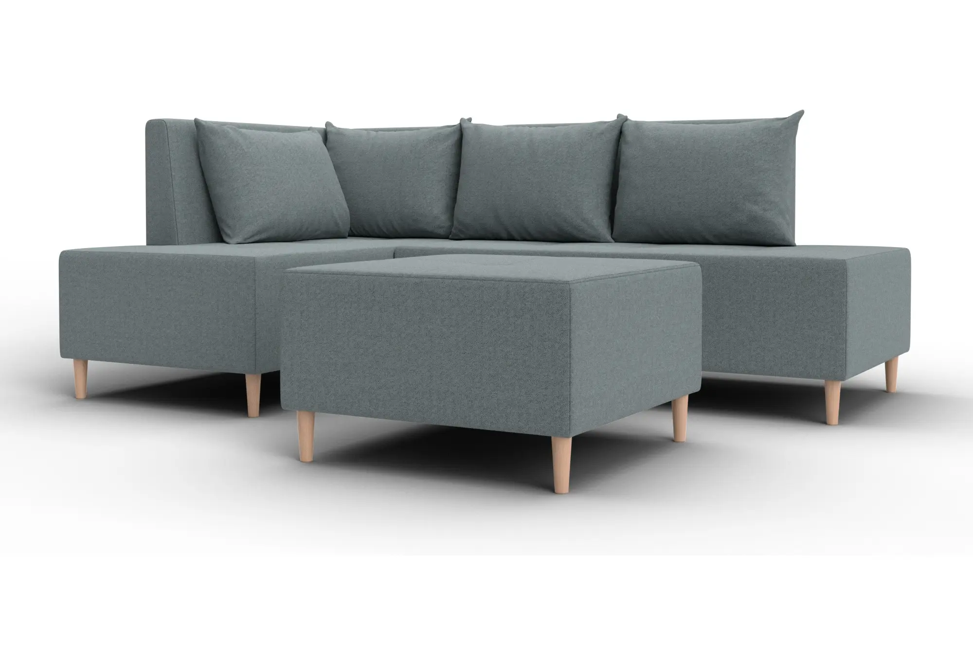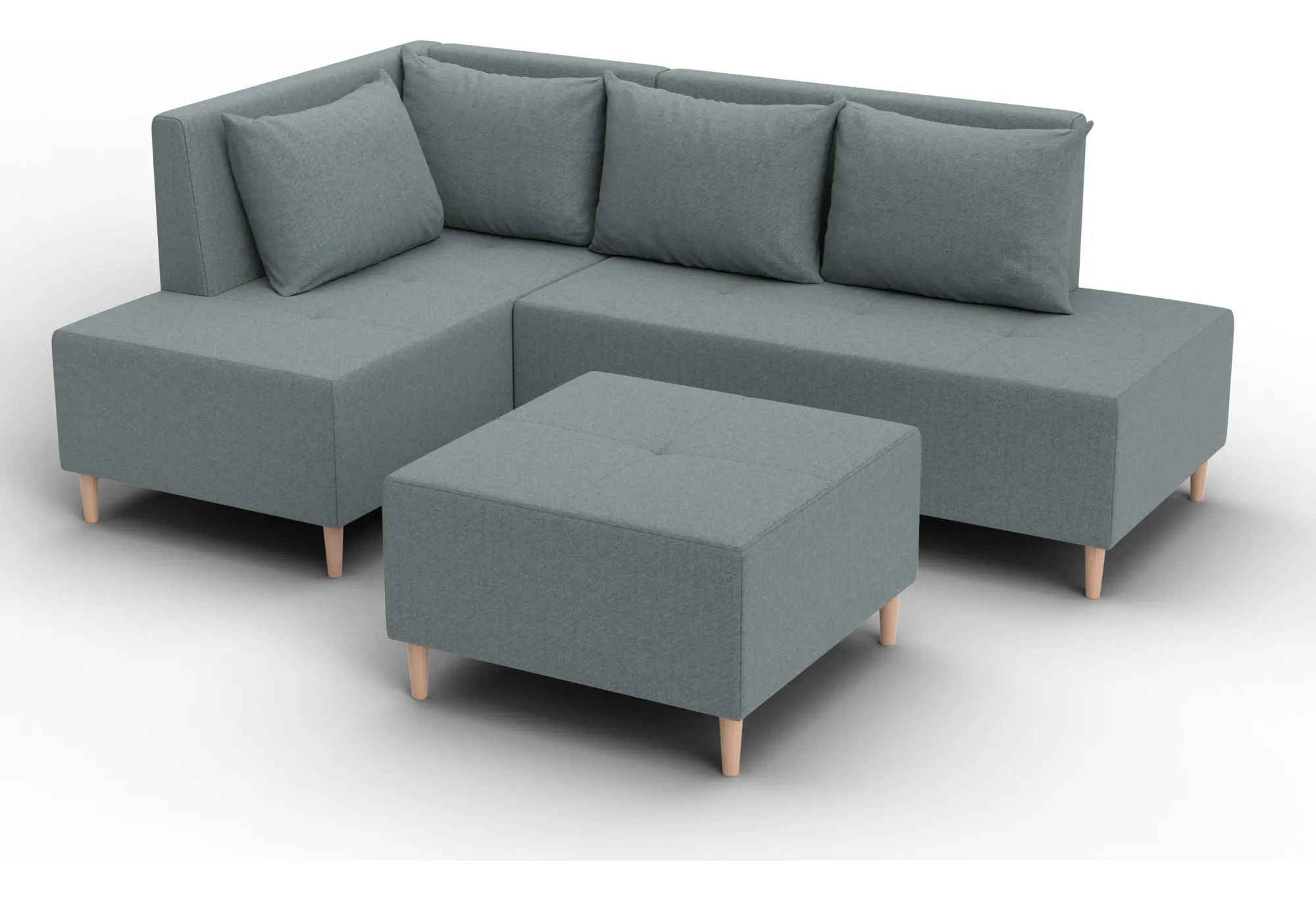 Модульный диван с пуфом Лига-126 – это современное решение для тех, кто ценит гибкость и функциональность. Модель состоит из двух основных модулей и отдельного пуфа. Вы можете собрать угловой диван, удобную зону отдыха или приставить пуф к дивану, чтобы удлинить спальное место. Прочный каркас из ДСП, ЛДСП, фанеры и бруса гарантирует надёжность и долгий срок службы. Мягкие съёмные подушки обеспечивают комфорт, а пуф (75×75×42 см) можно использовать как дополнительное сиденье, подставку для ног или небольшой столик. Высокие деревянные ножки придают дивану элегантный вид и облегчают уборку. Спальное место – 60×197 см. Широкий выбор расцветок.