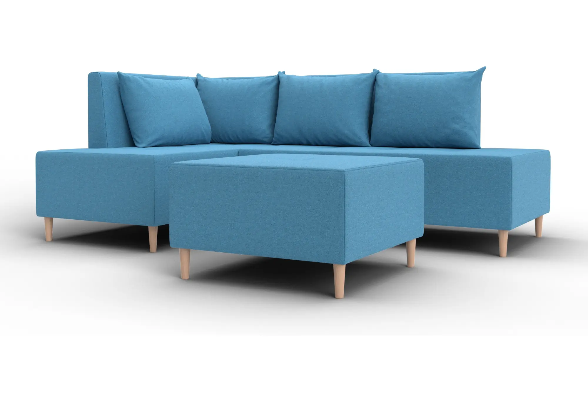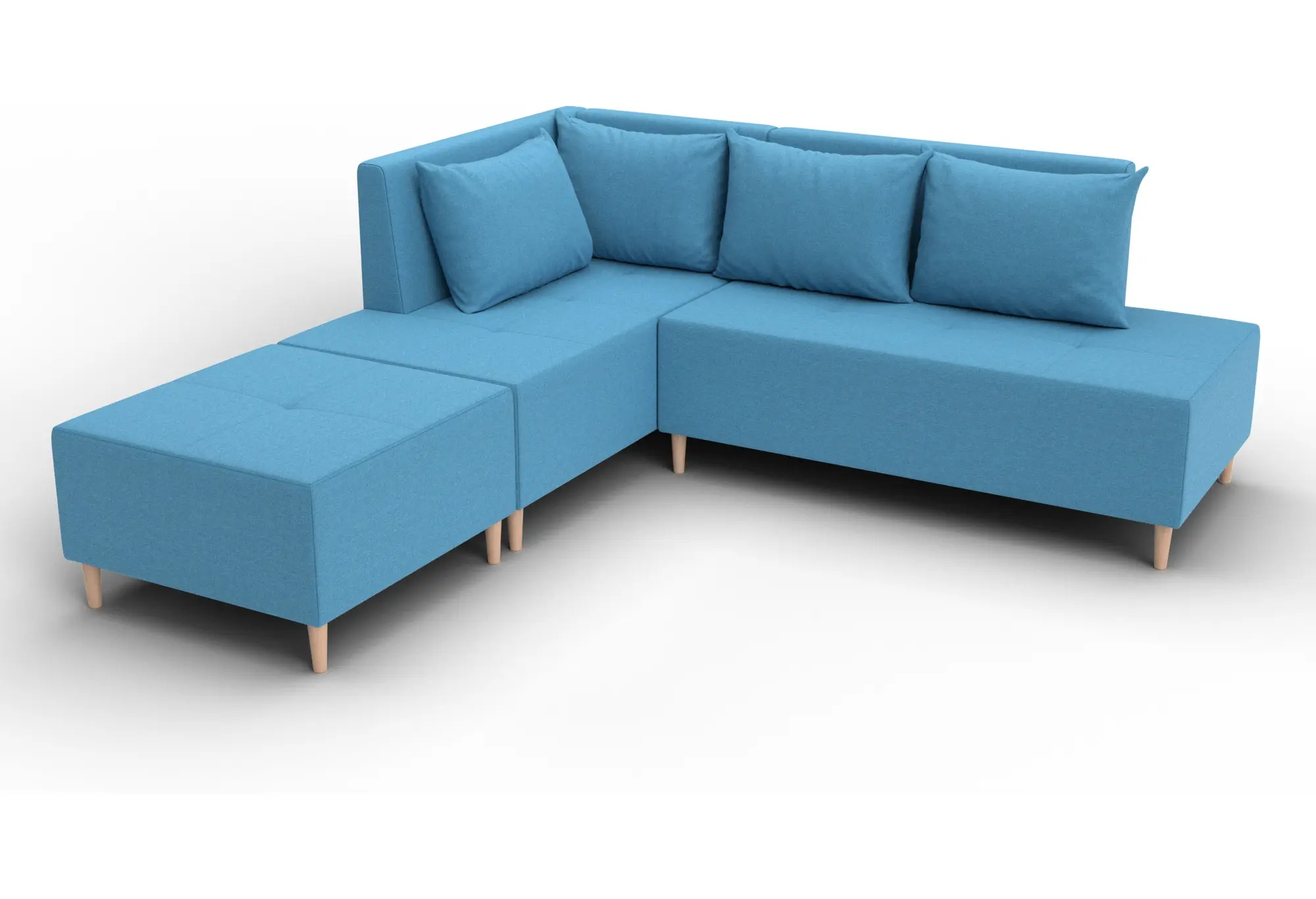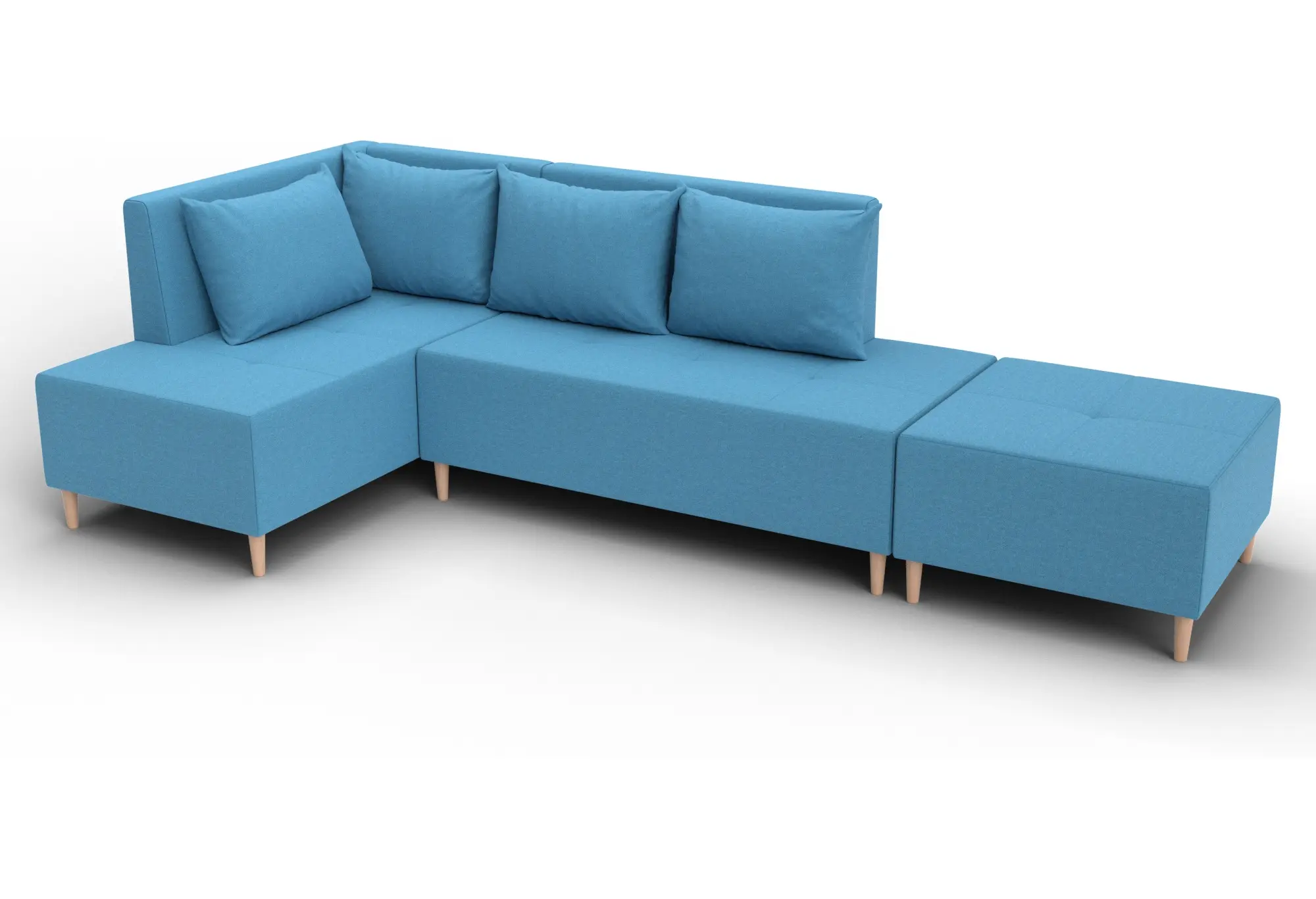 Диван угловой модульный с пуфом Лига-126 угол левый Амур 10 голубой (Рогожка)
