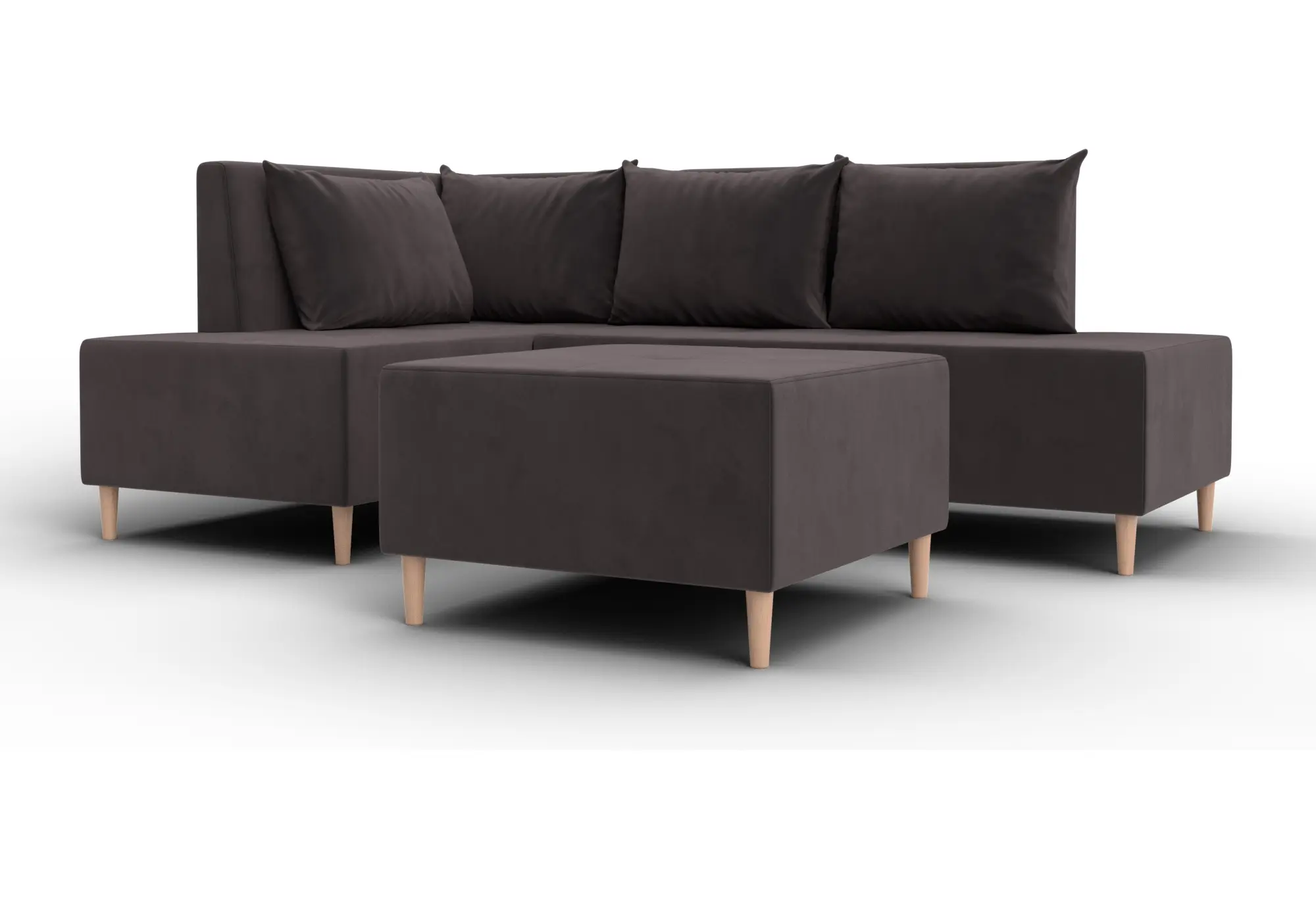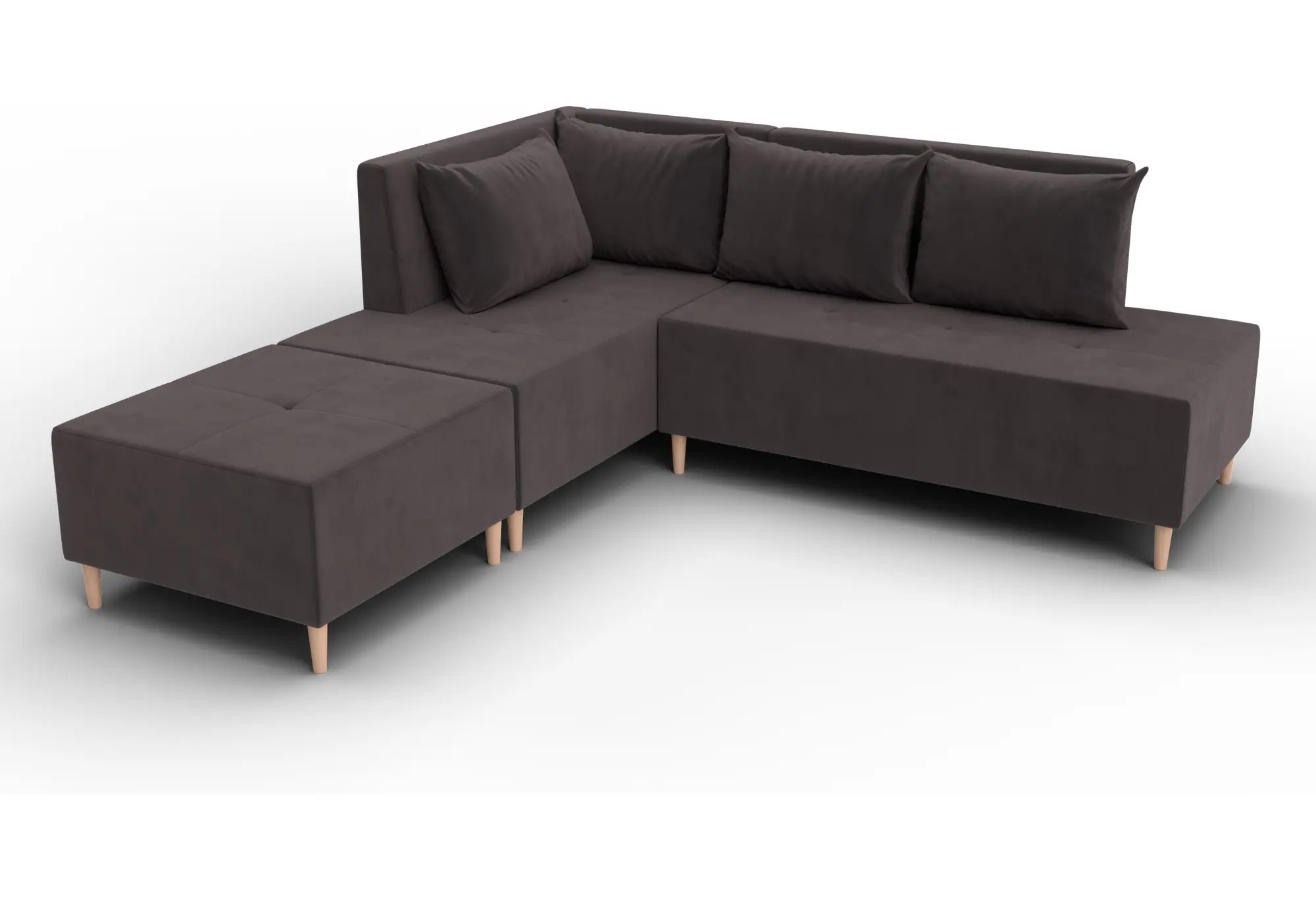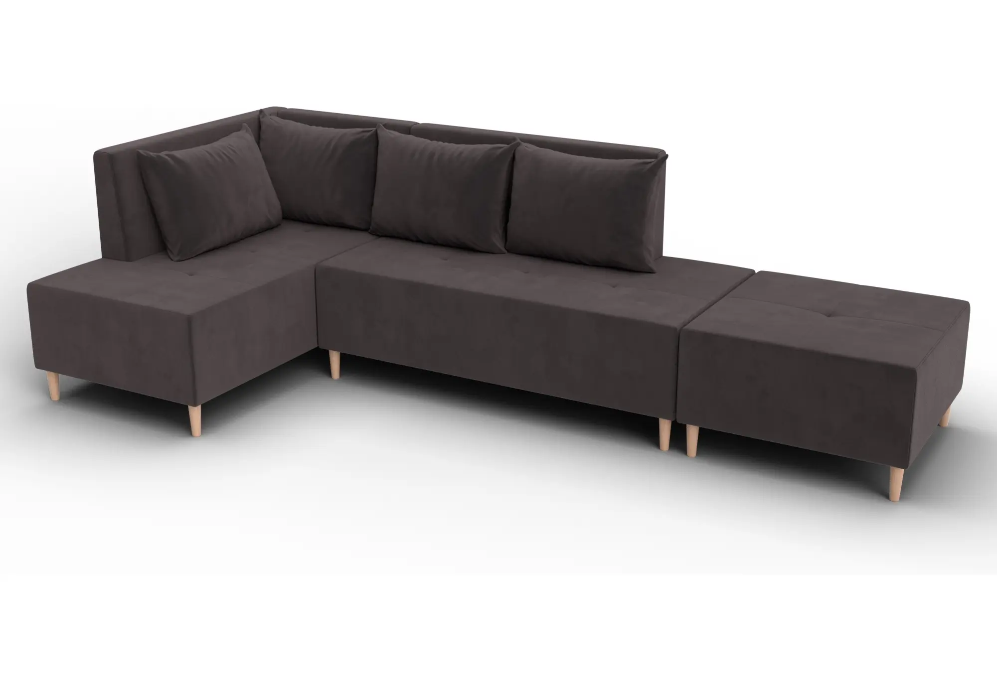Диван угловой модульный с пуфом Лига-126 угол левый SEVEN 727 коричневый (Велюр)
