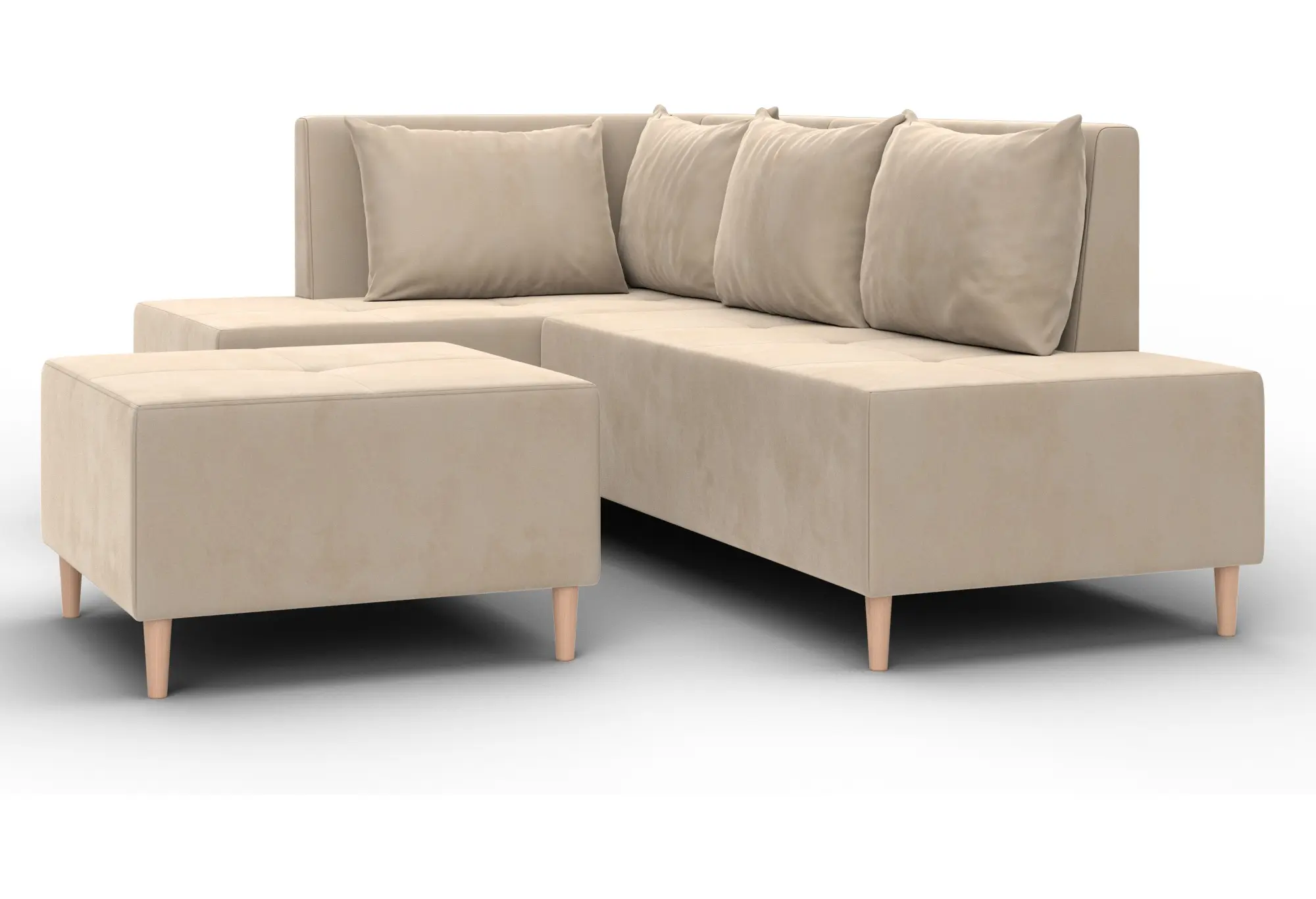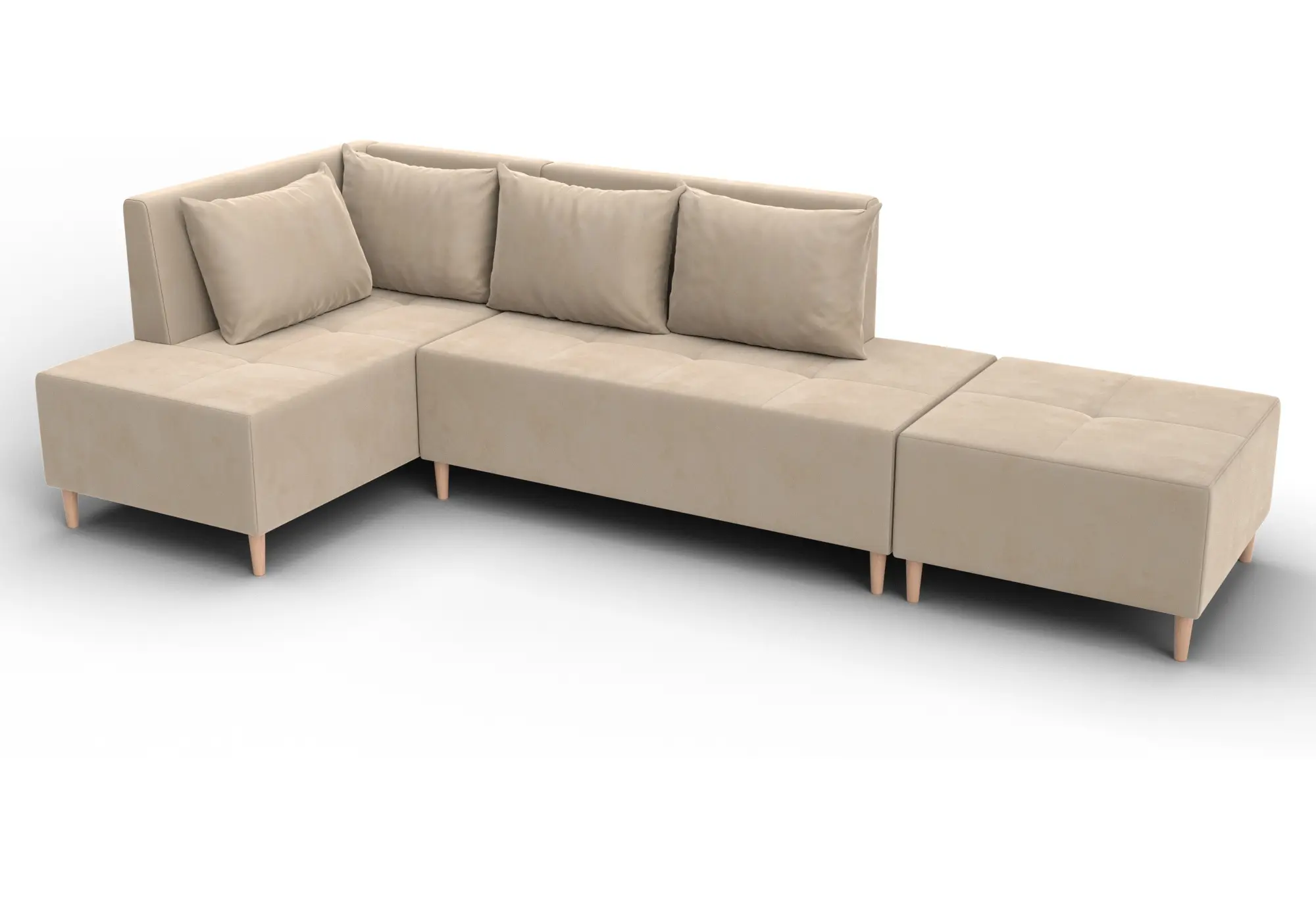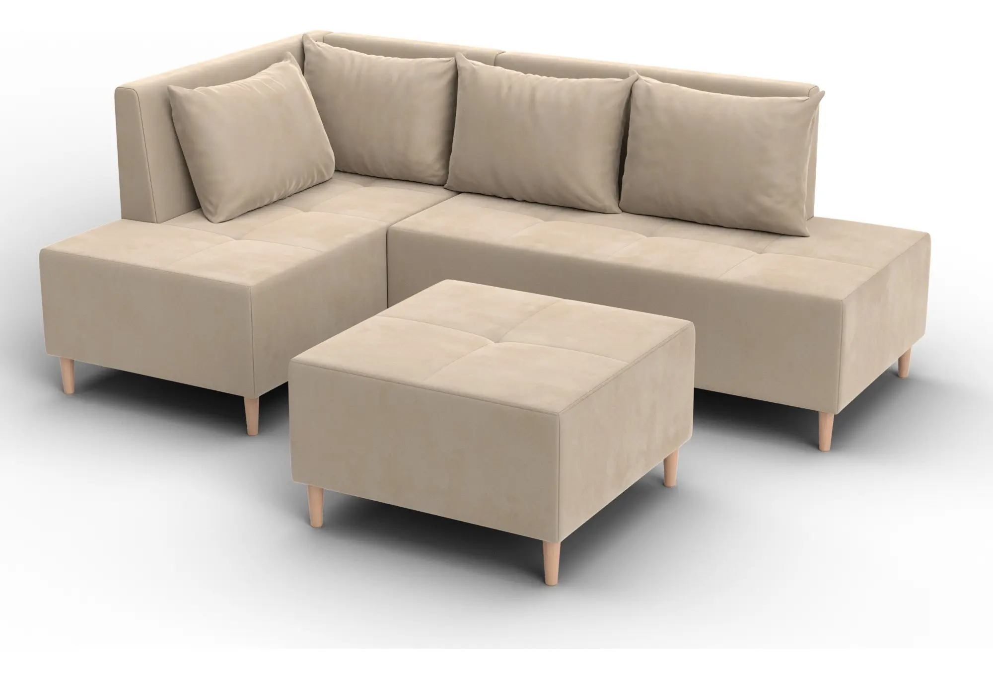 Диван угловой модульный с пуфом Лига-126 угол левый SEVEN 729 бежевый (Велюр)