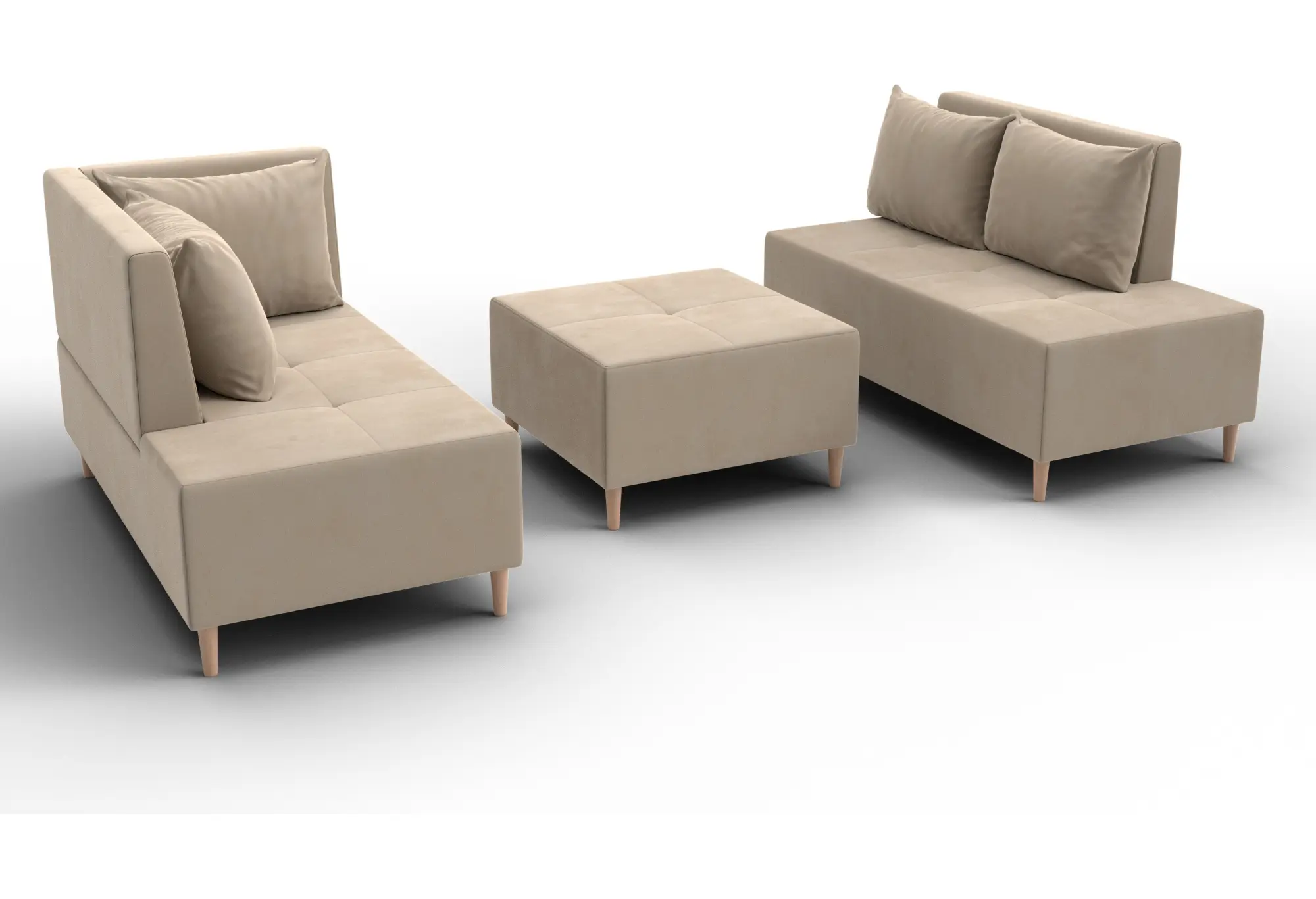 - Два основных модуля + пуф – можно собирать в разных вариациях.