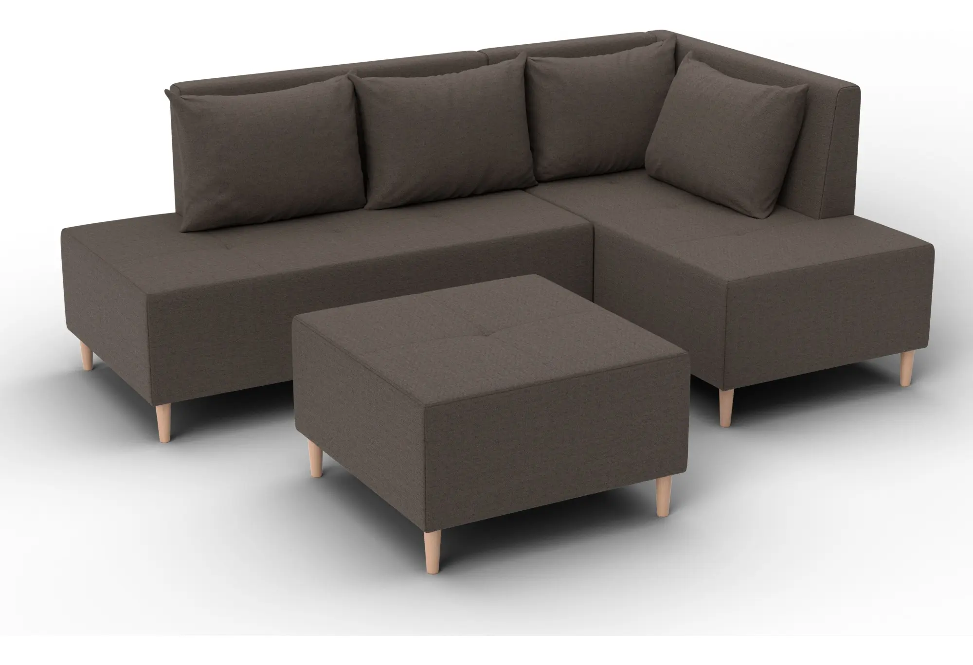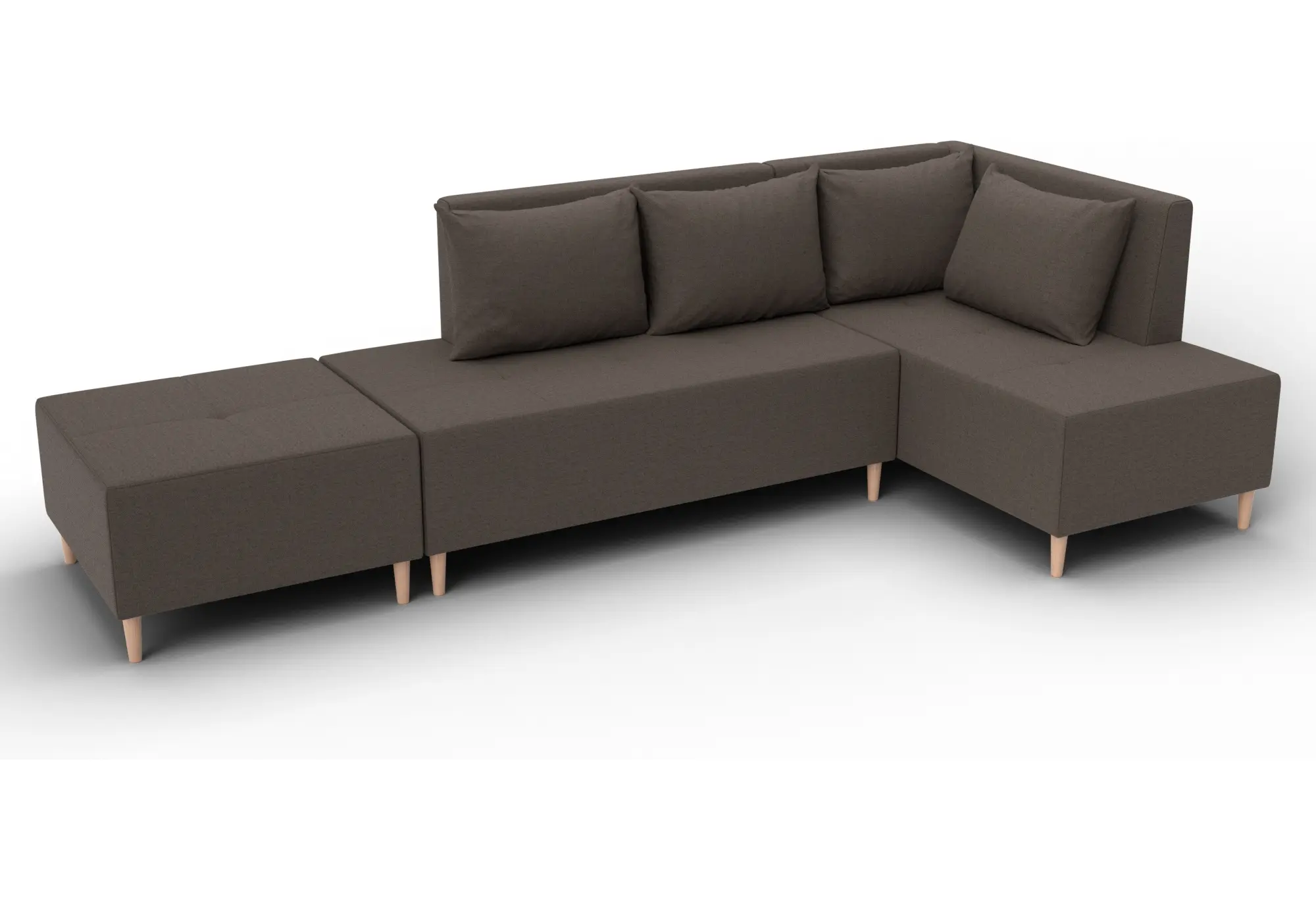 Диван угловой модульный с пуфом Лига-126 угол правый Амур 05 коричневый (Рогожка)