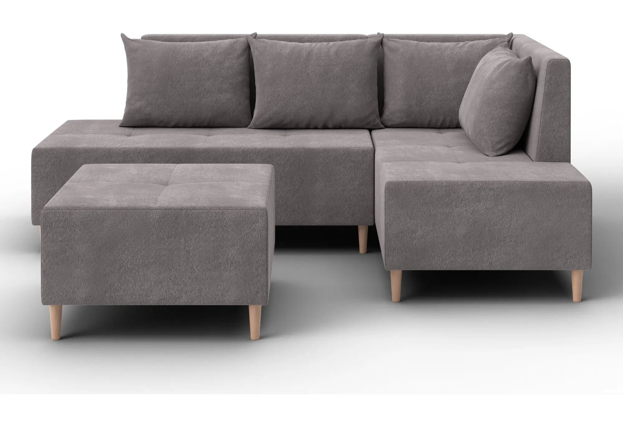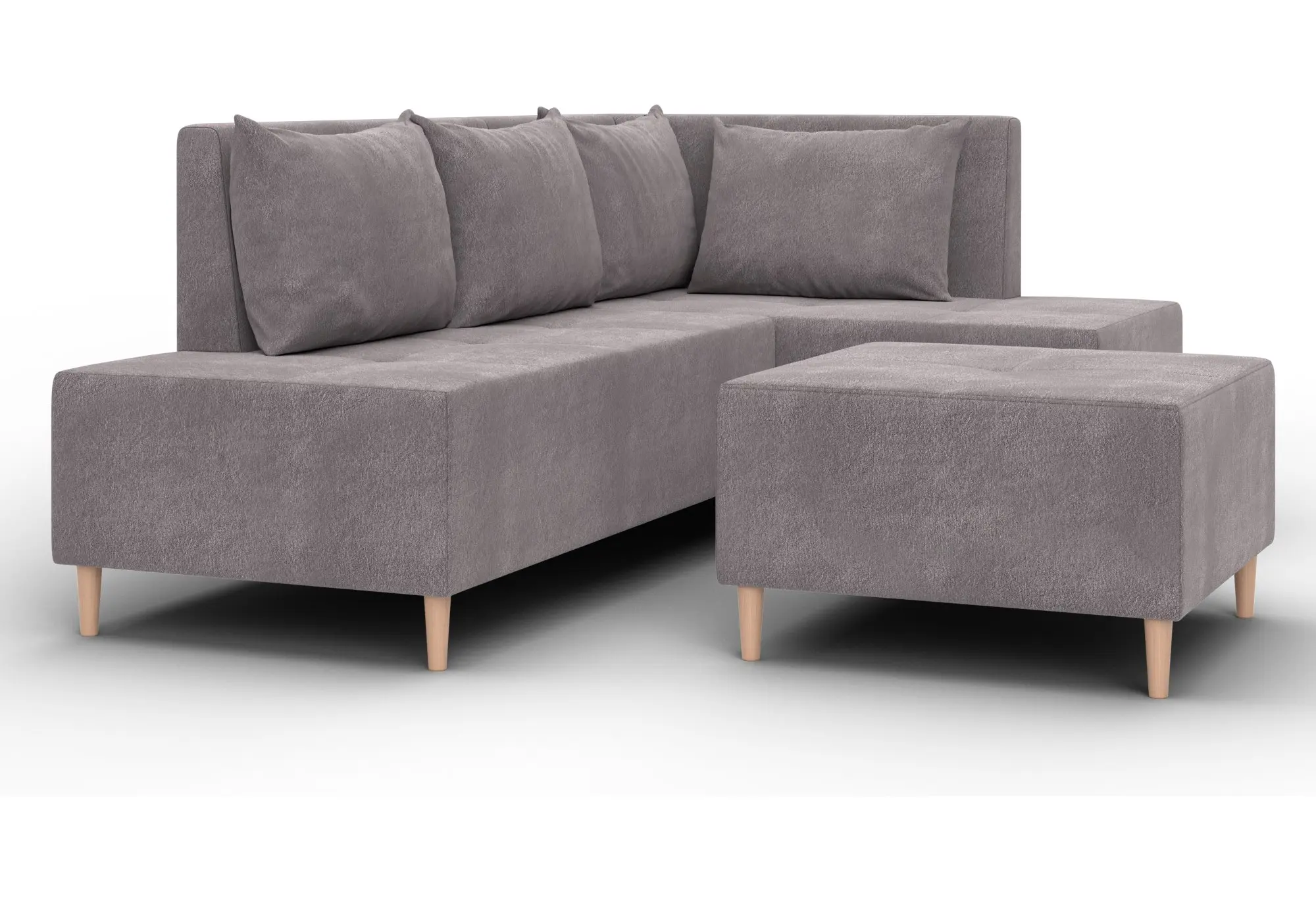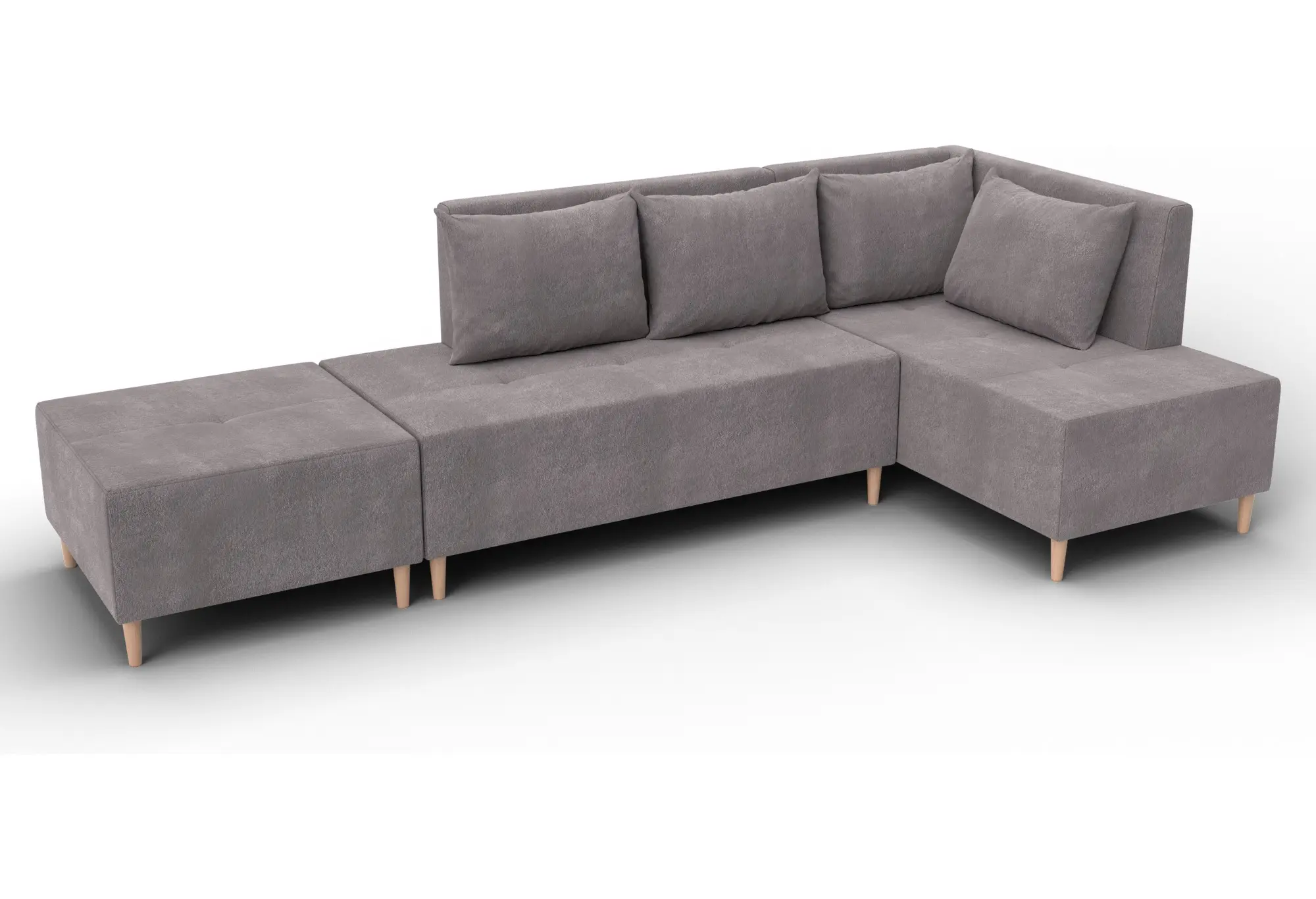 Модульный диван с пуфом Лига-126 – это современное решение для тех, кто ценит гибкость и функциональность. Модель состоит из двух основных модулей и отдельного пуфа. Вы можете собрать угловой диван, удобную зону отдыха или приставить пуф к дивану, чтобы удлинить спальное место. Прочный каркас из ДСП, ЛДСП, фанеры и бруса гарантирует надёжность и долгий срок службы. Мягкие съёмные подушки обеспечивают комфорт, а пуф (75×75×42 см) можно использовать как дополнительное сиденье, подставку для ног или небольшой столик. Высокие деревянные ножки придают дивану элегантный вид и облегчают уборку. Спальное место – 60×197 см. Широкий выбор расцветок.
