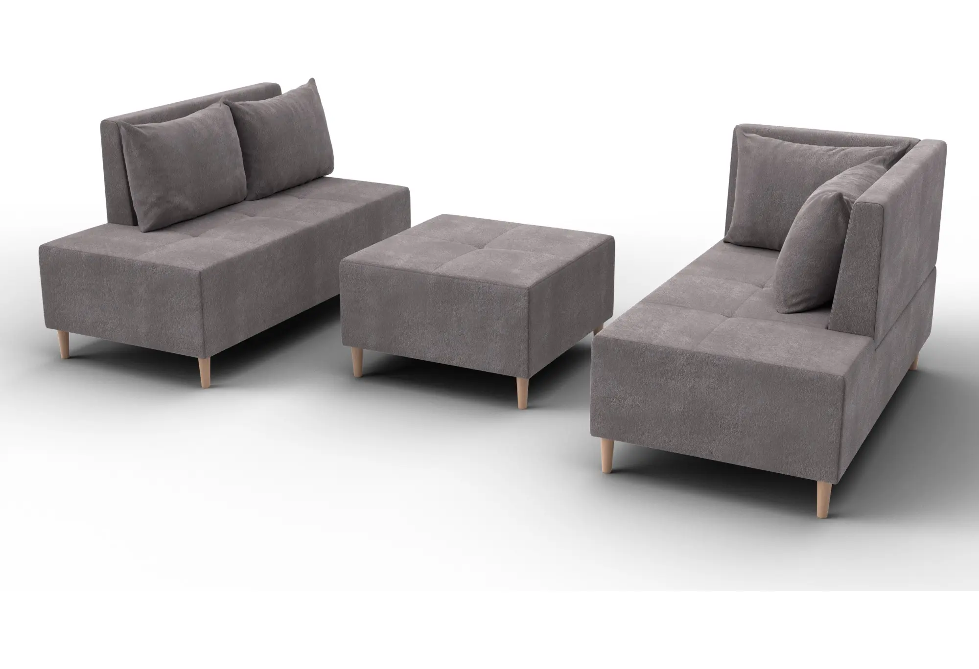 - Два основных модуля + пуф – можно собирать в разных вариациях.