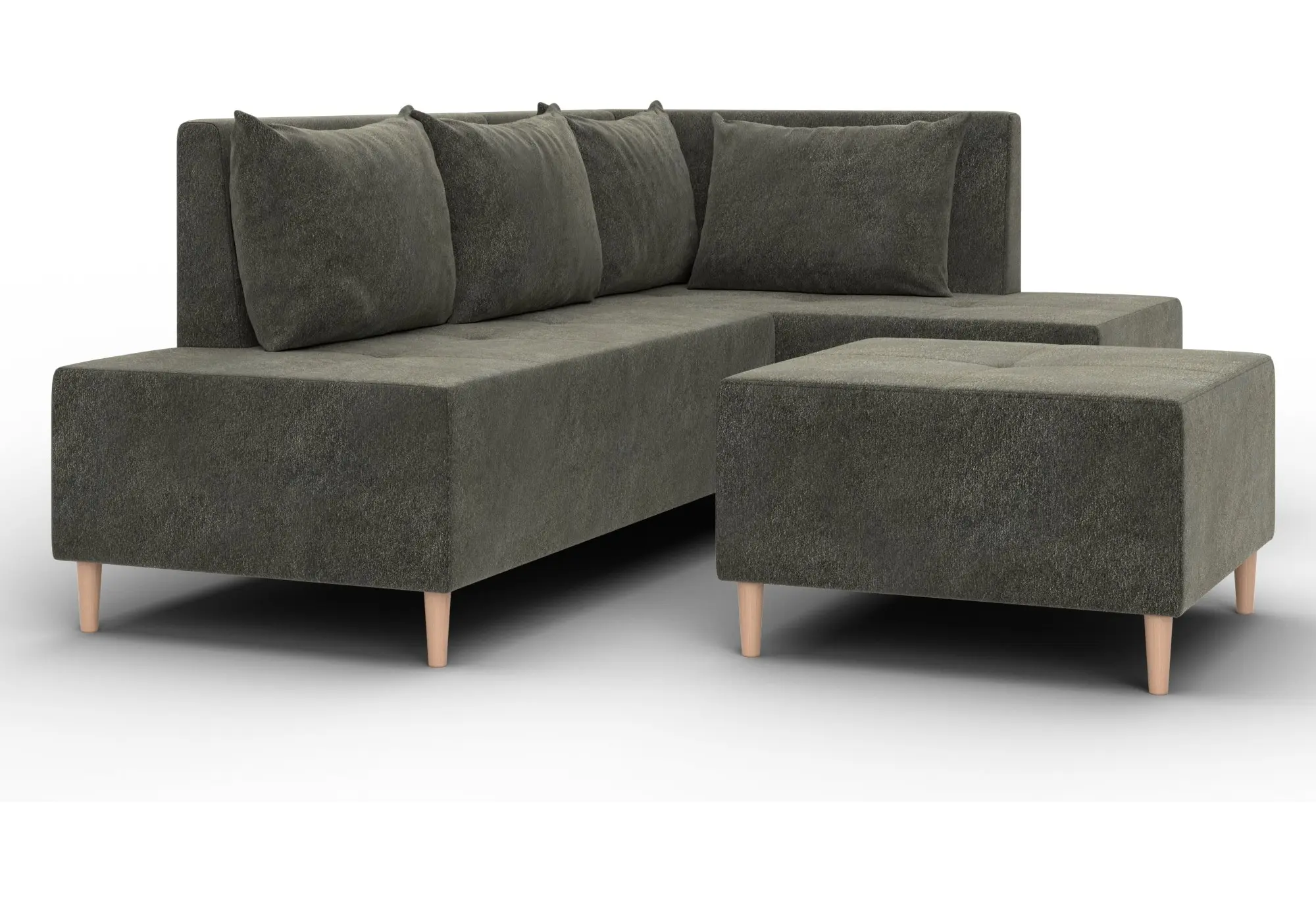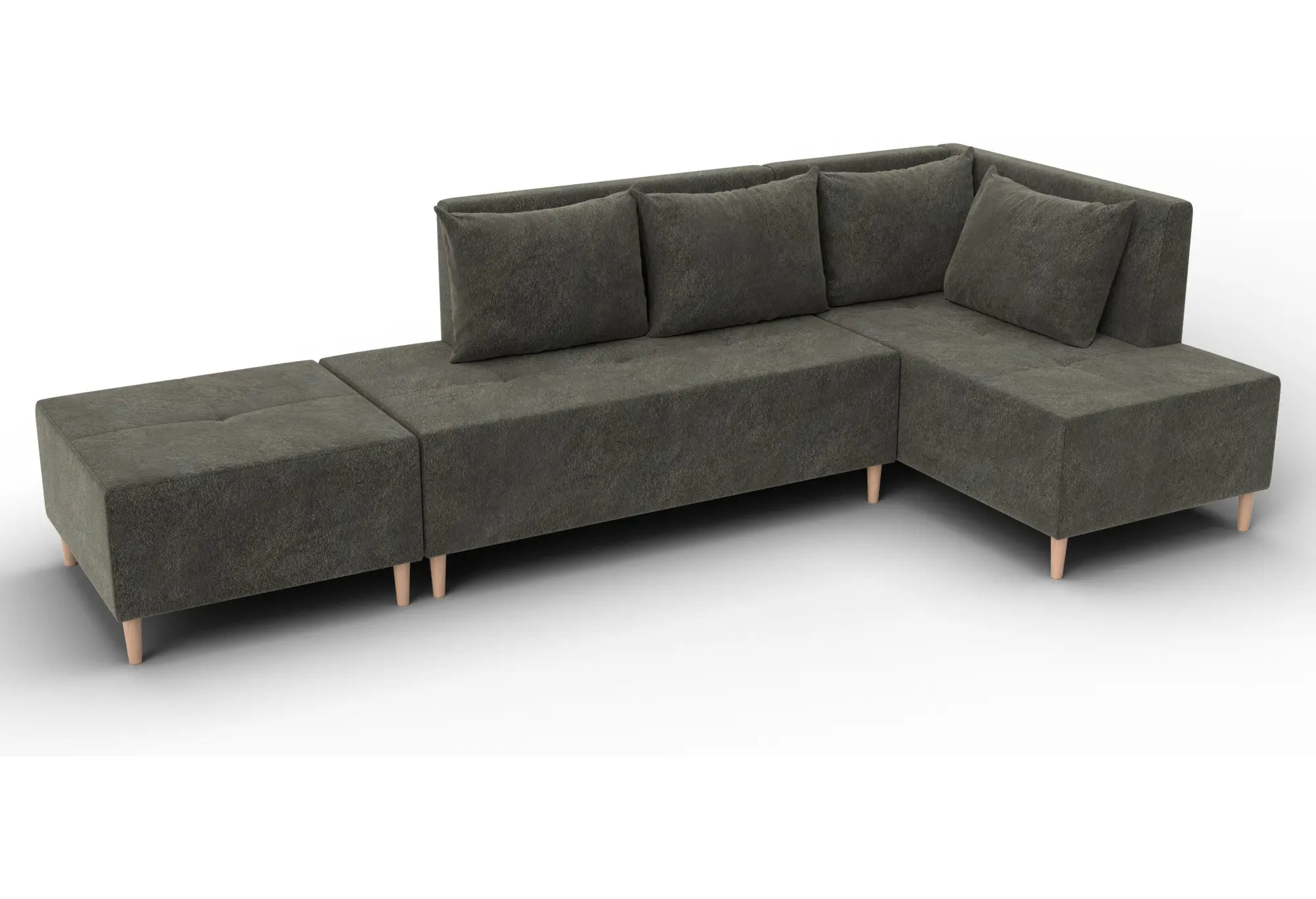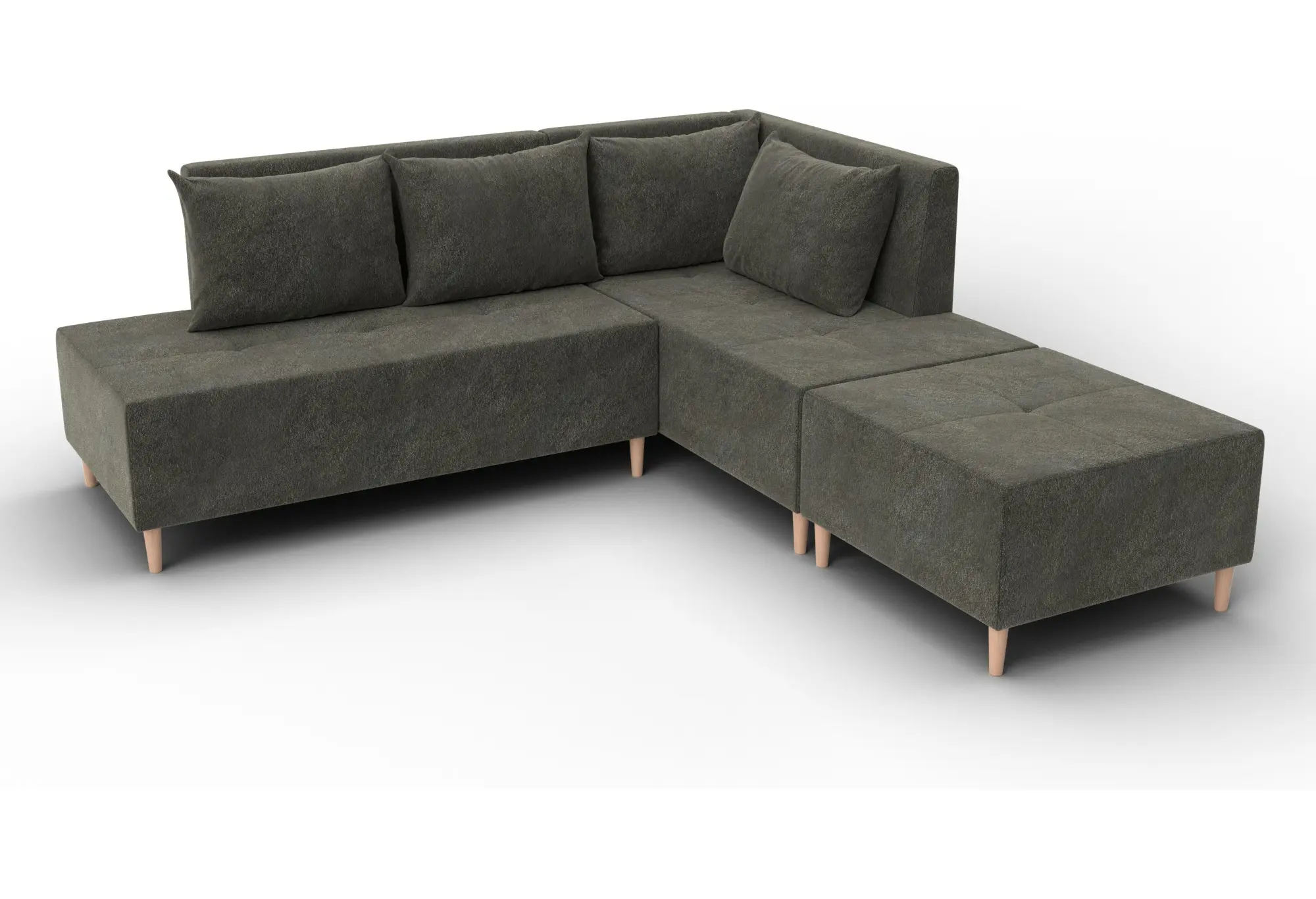 Модульный диван с пуфом Лига-126 – это современное решение для тех, кто ценит гибкость и функциональность. Модель состоит из двух основных модулей и отдельного пуфа. Вы можете собрать угловой диван, удобную зону отдыха или приставить пуф к дивану, чтобы удлинить спальное место. Прочный каркас из ДСП, ЛДСП, фанеры и бруса гарантирует надёжность и долгий срок службы. Мягкие съёмные подушки обеспечивают комфорт, а пуф (75×75×42 см) можно использовать как дополнительное сиденье, подставку для ног или небольшой столик. Высокие деревянные ножки придают дивану элегантный вид и облегчают уборку. Спальное место – 60×197 см. Широкий выбор расцветок.