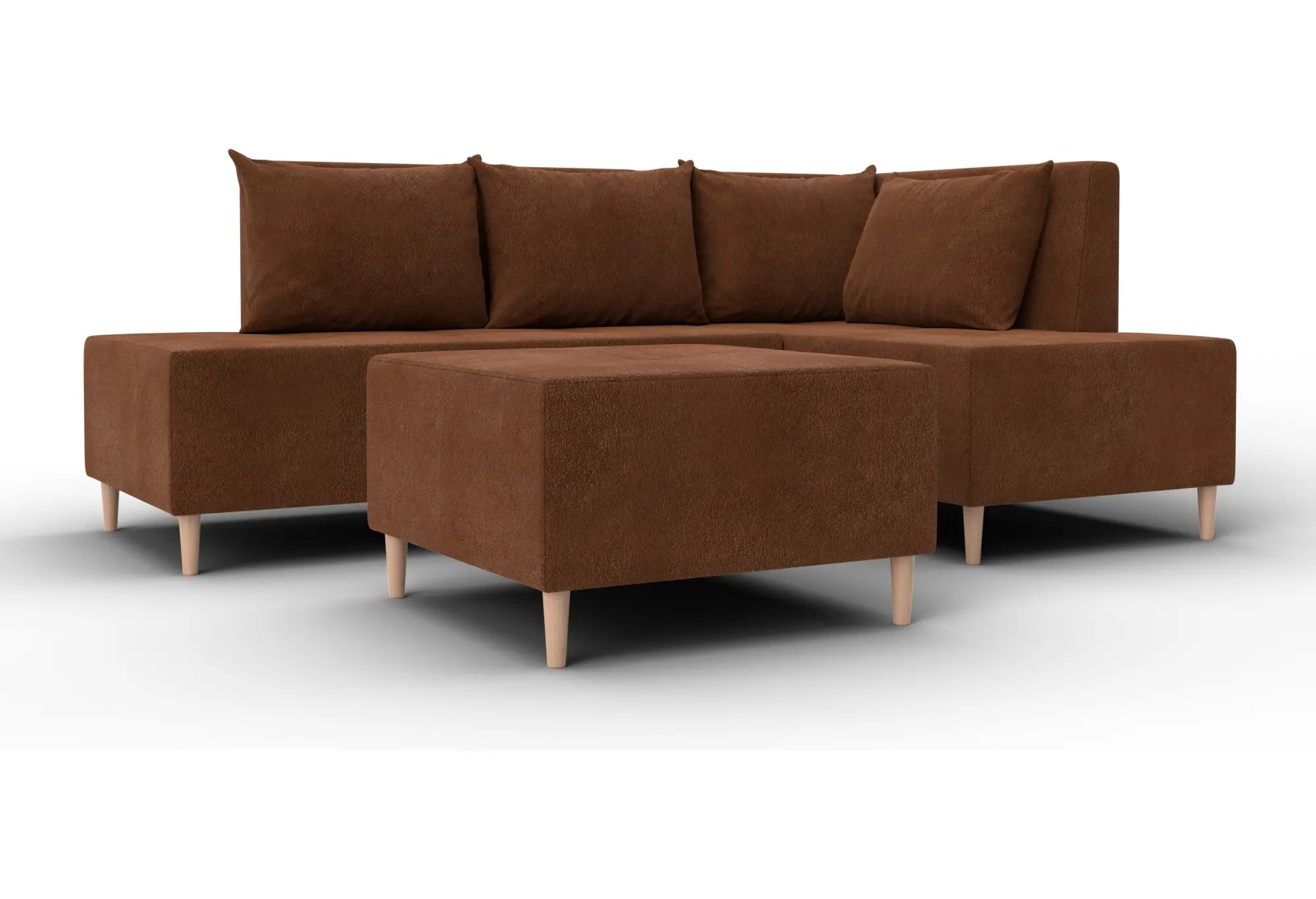 Диван угловой модульный с пуфом Лига-126 угол правый LAIM 14 терракотовый (Велюр)
